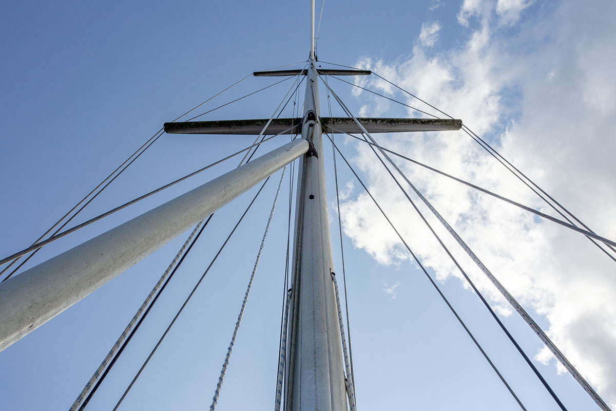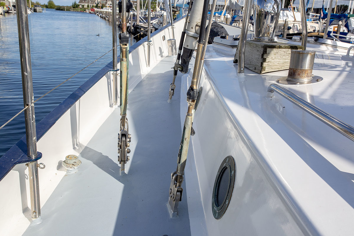 Zeilen zijn Egyptisch linnen kleur en in zeer goede staat, weinig gebruikt; nieuwe schoten; 2 zware electrische brons verchroomde 2 snelheidslieren