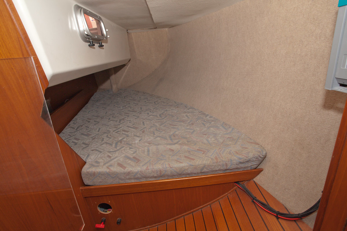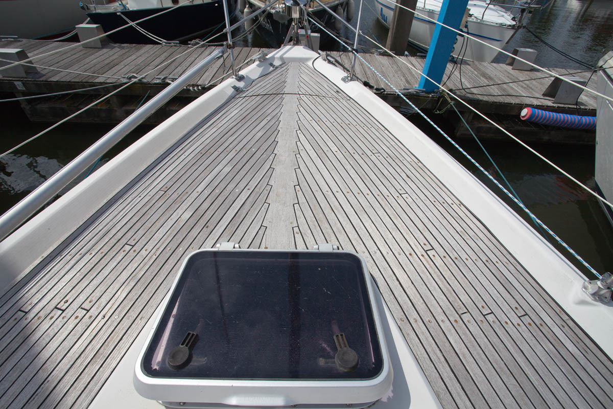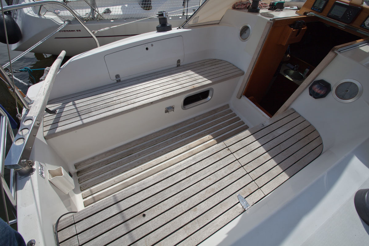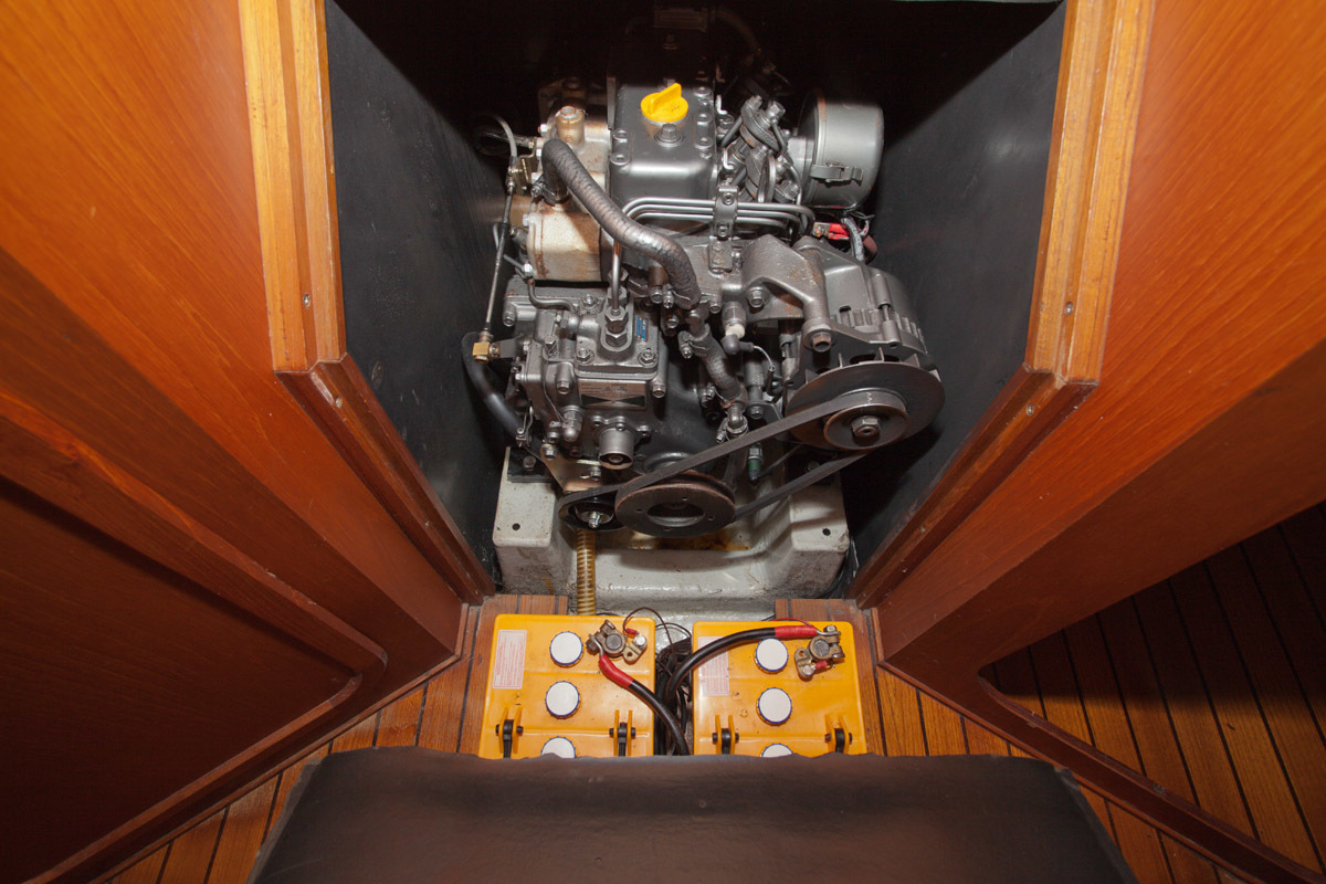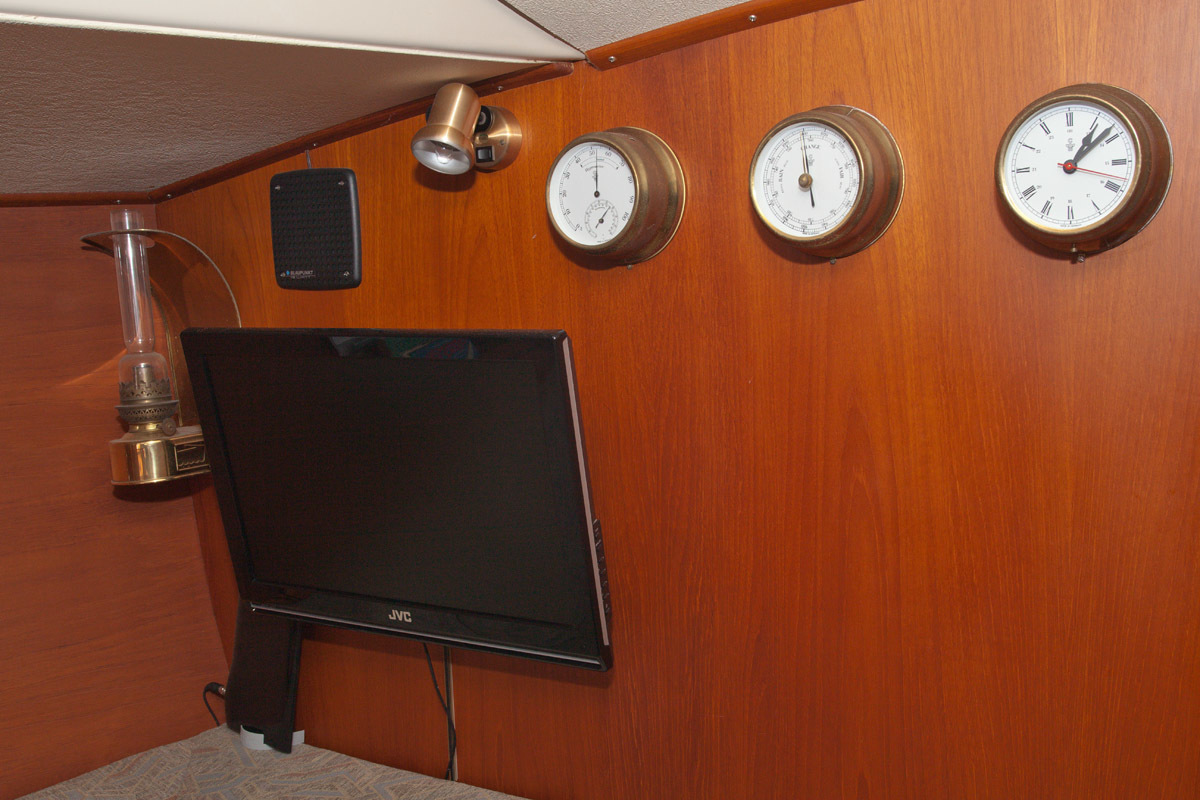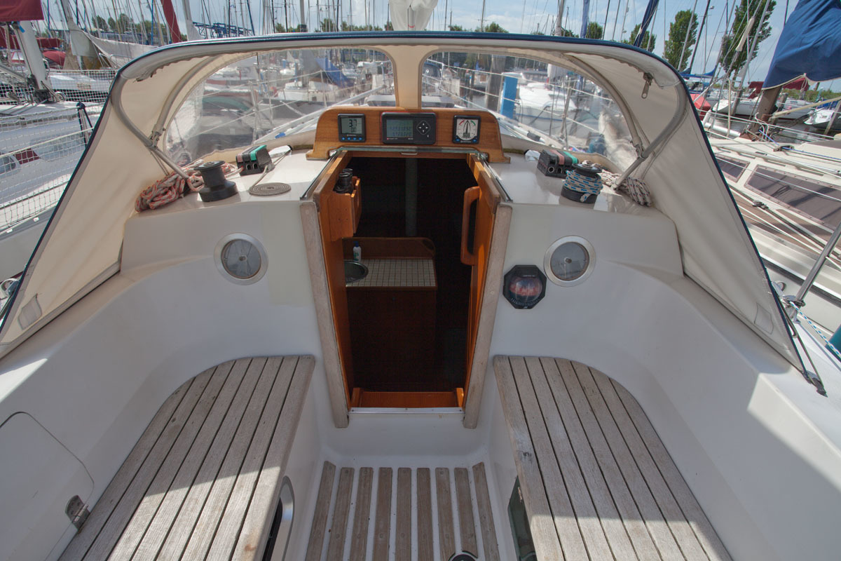 De salon is ruim van opzet met U-vormige bank links en langs bank rechts. Aan bakboord is de kombuis en de gesloten achterhut. Aan stuurboord is de navigatie hoek en het toilet met hangkast voor zeilkleding. In de boeg is de tweede hut met een groot dubbel bed.
