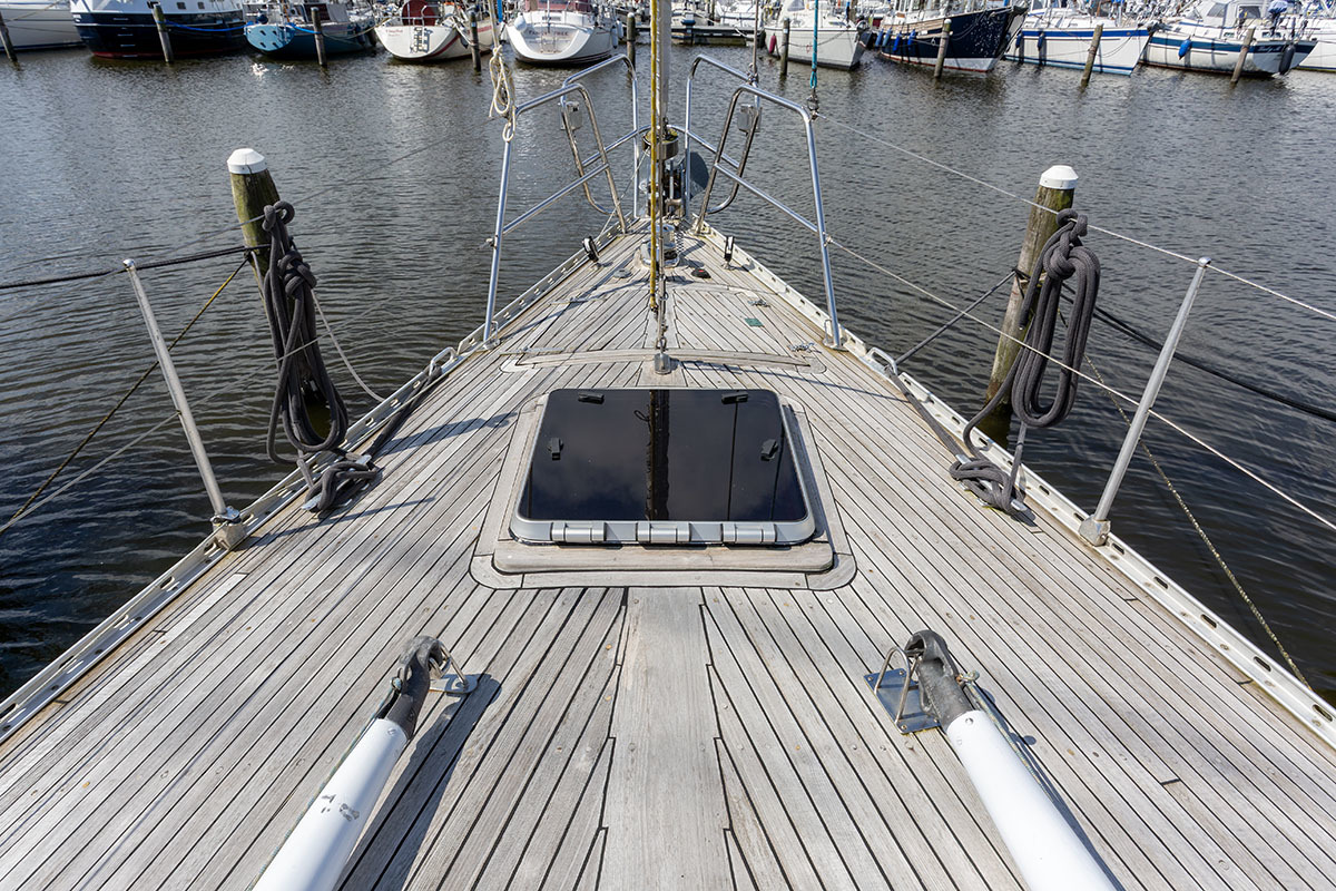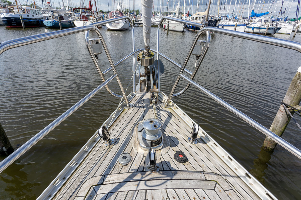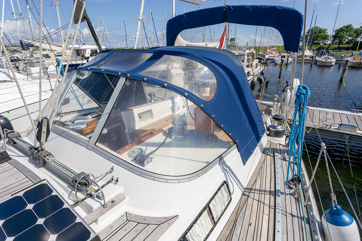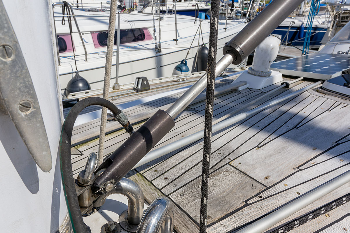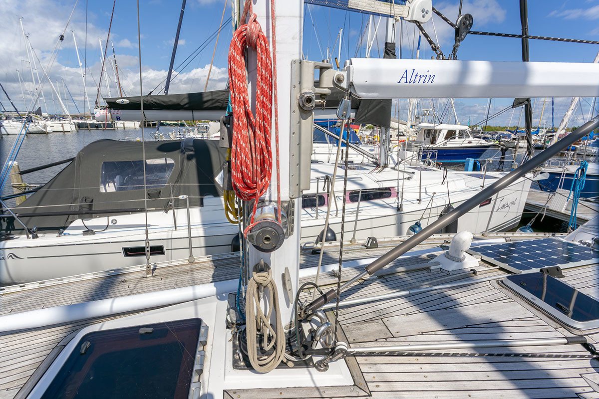 Grootzeil en Genua zijn in redelijke staat, maar aan vervanging toe, hydraulische neerhaler en achterstag spanner. Lieren 2x elektrisch 4x manual.