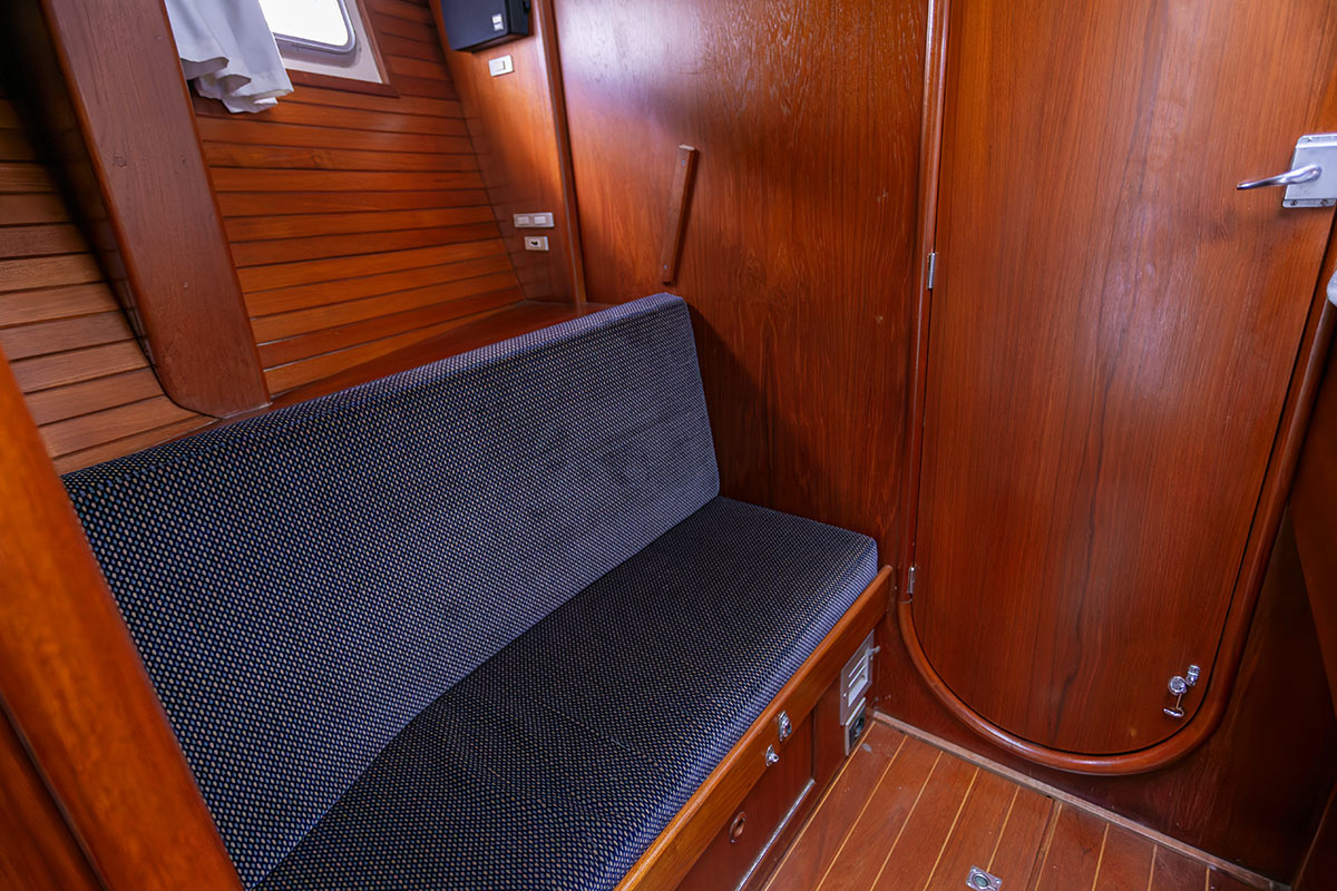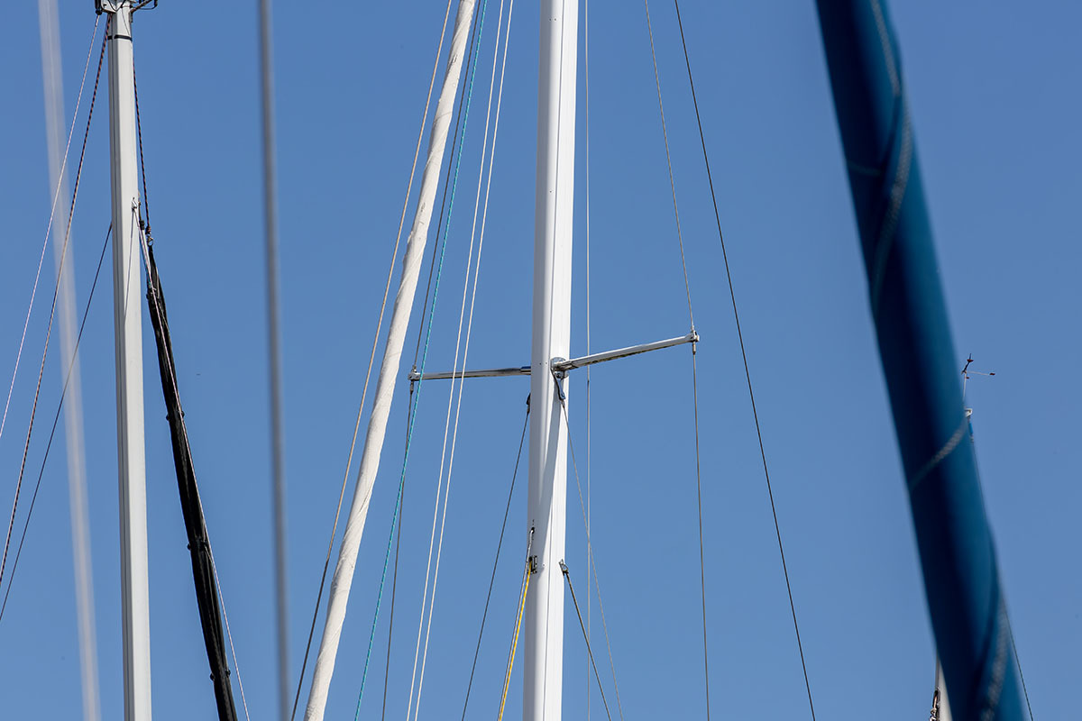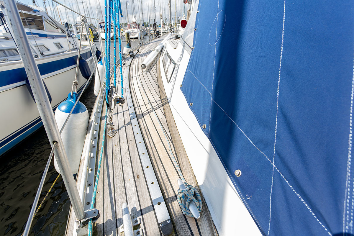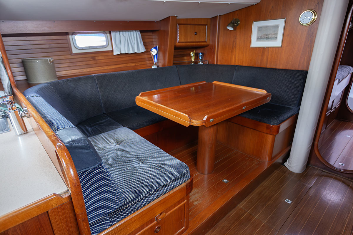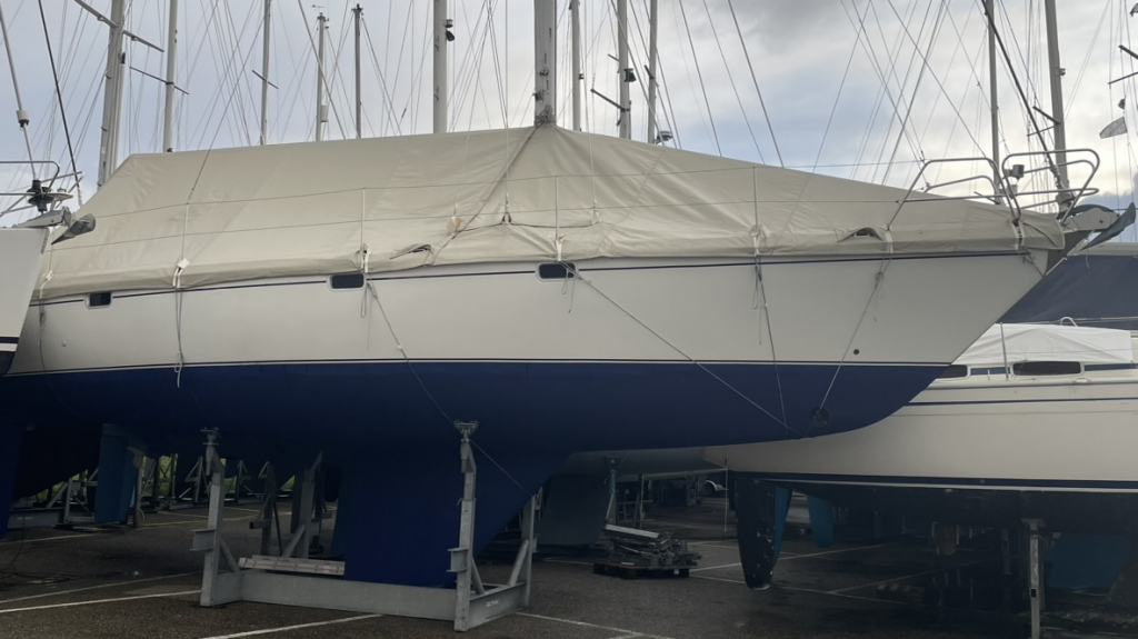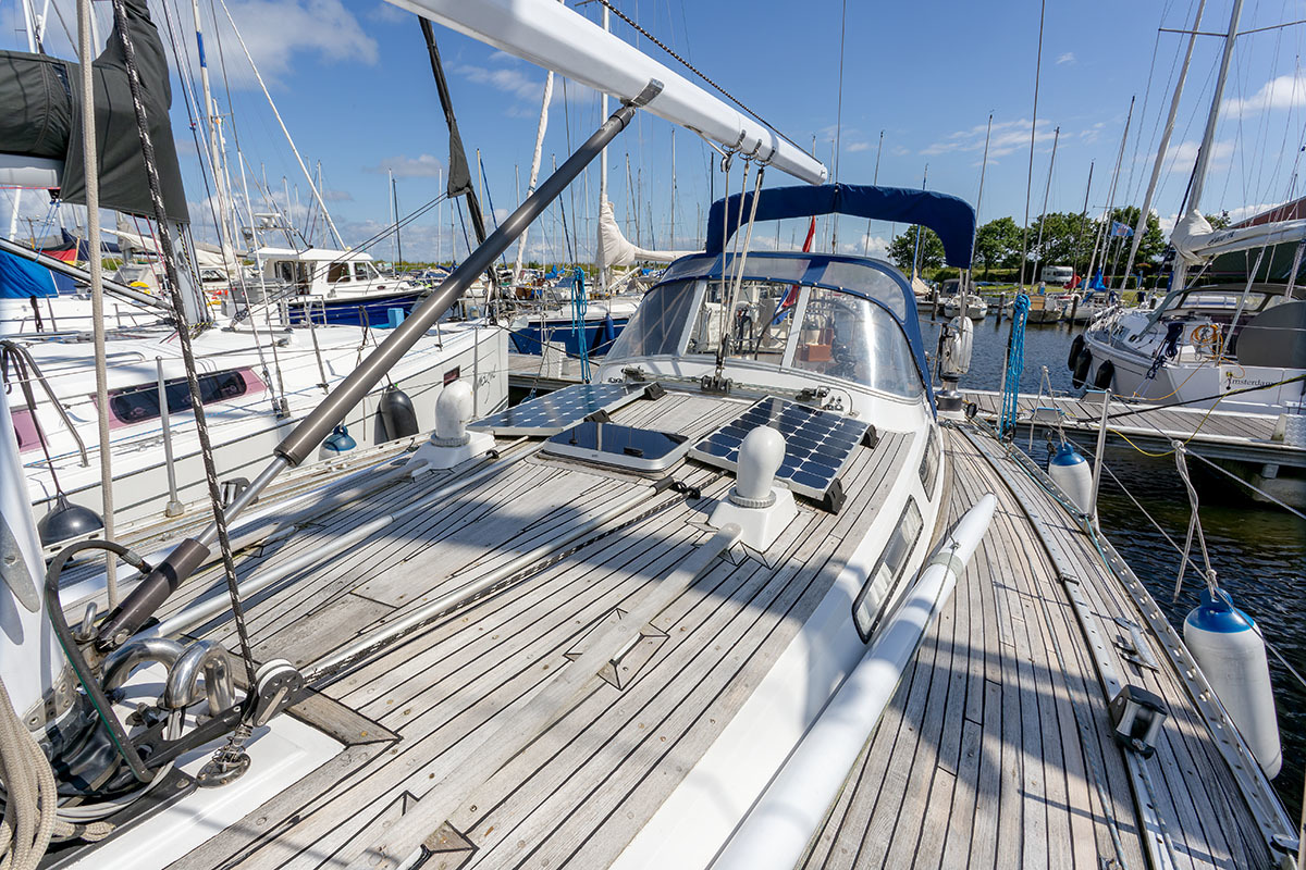 Grootzeil en Genua zijn in redelijke staat, maar aan vervanging toe, hydraulische neerhaler en achterstag spanner. Lieren 2x elektrisch 4x manual.
