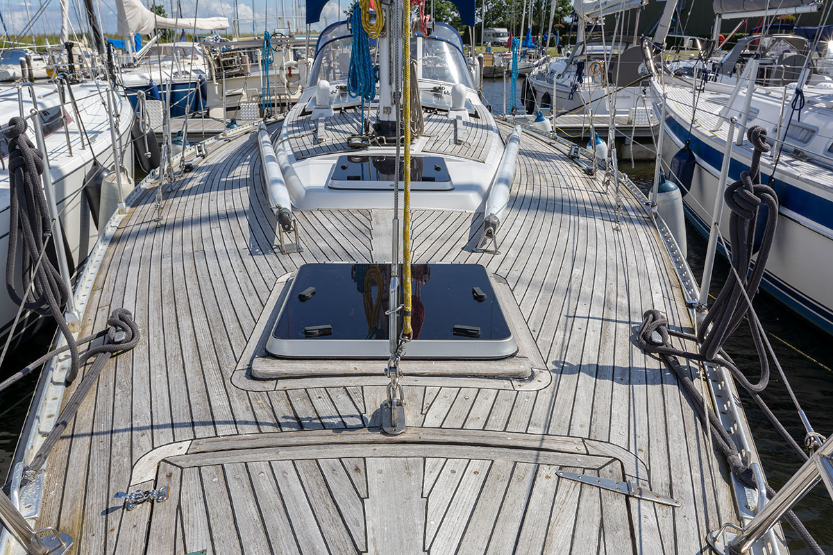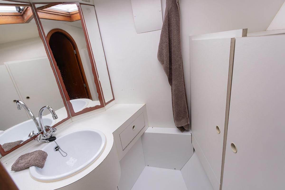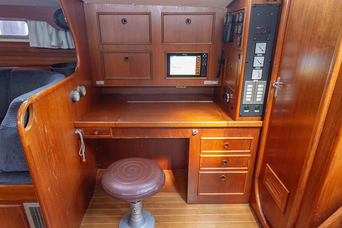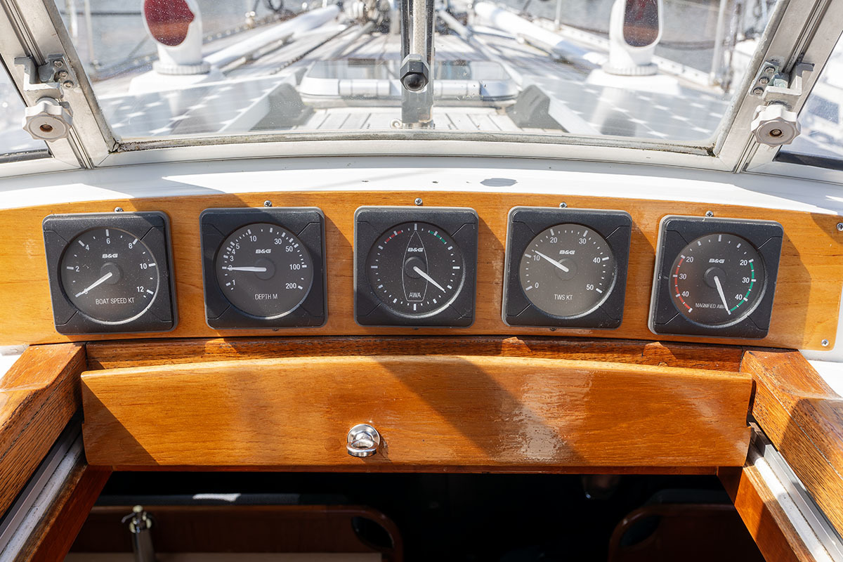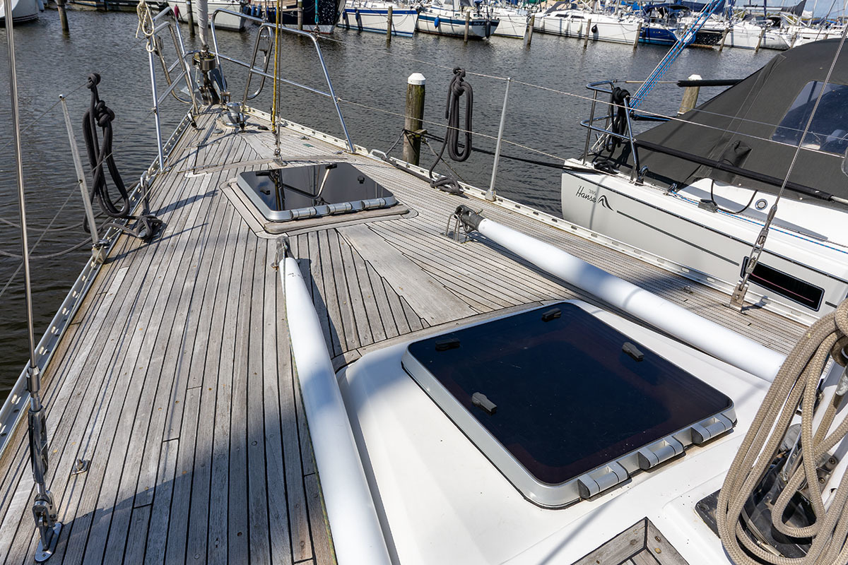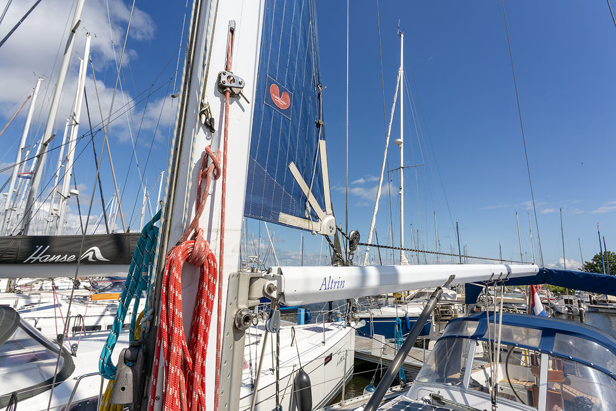 Grootzeil en Genua zijn in redelijke staat, maar aan vervanging toe, hydraulische neerhaler en achterstag spanner. Lieren 2x elektrisch 4x manual.