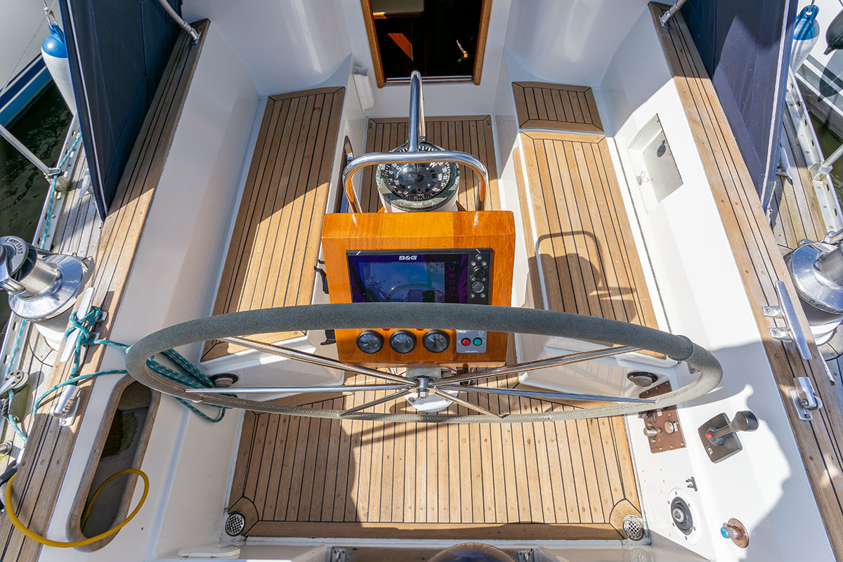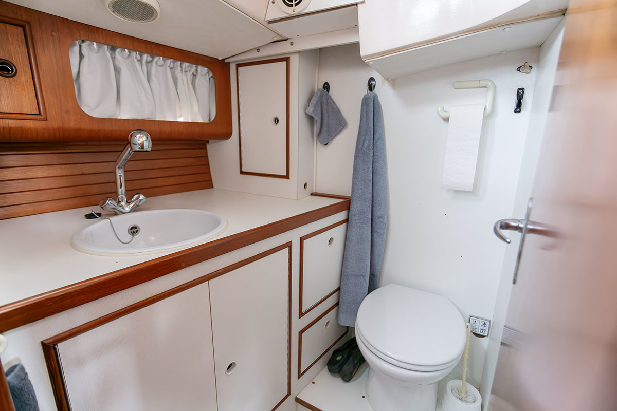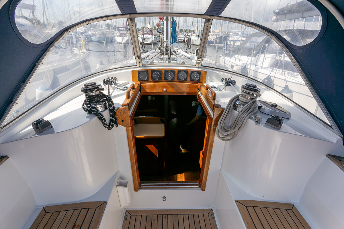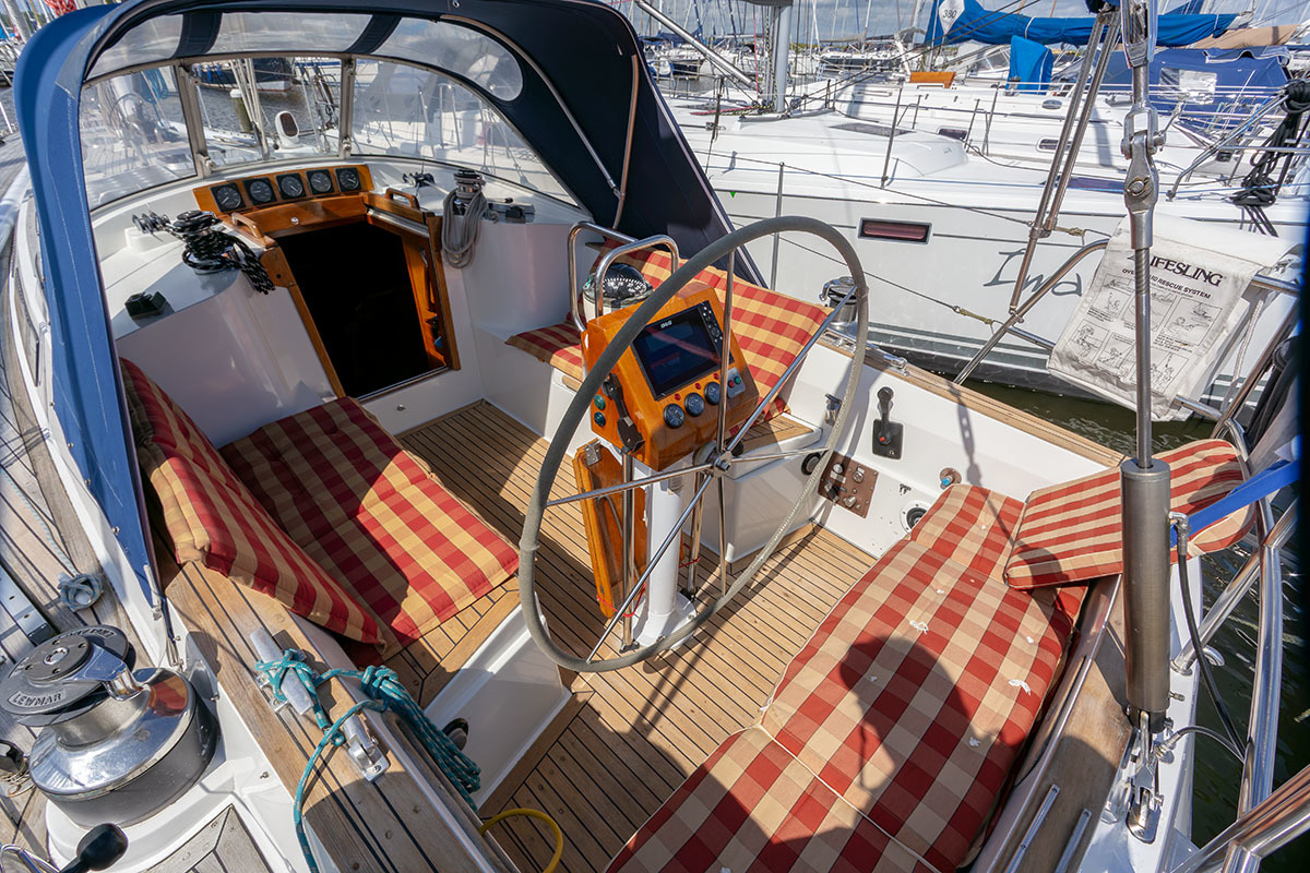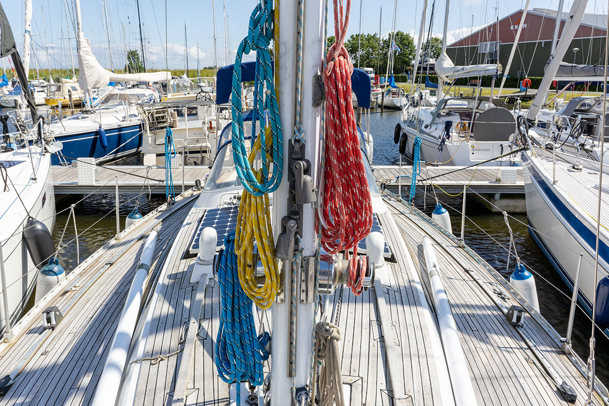 Grootzeil en Genua zijn in redelijke staat, maar aan vervanging toe, hydraulische neerhaler en achterstag spanner. Lieren 2x elektrisch 4x manual.