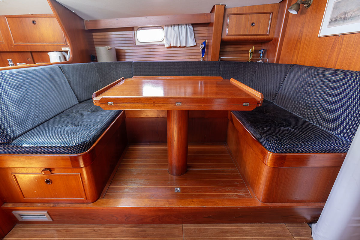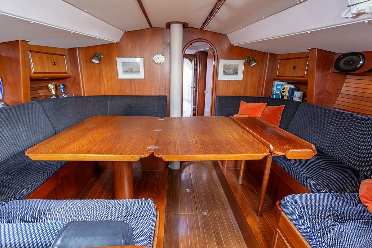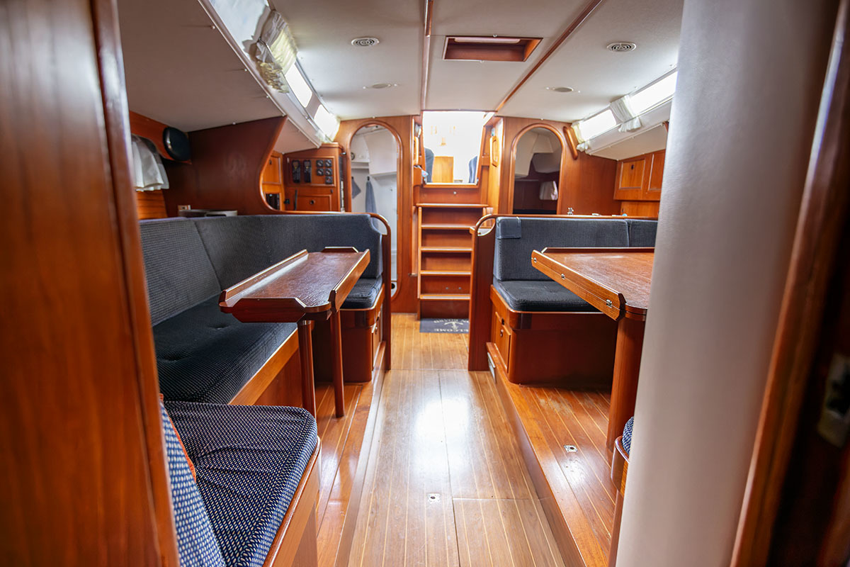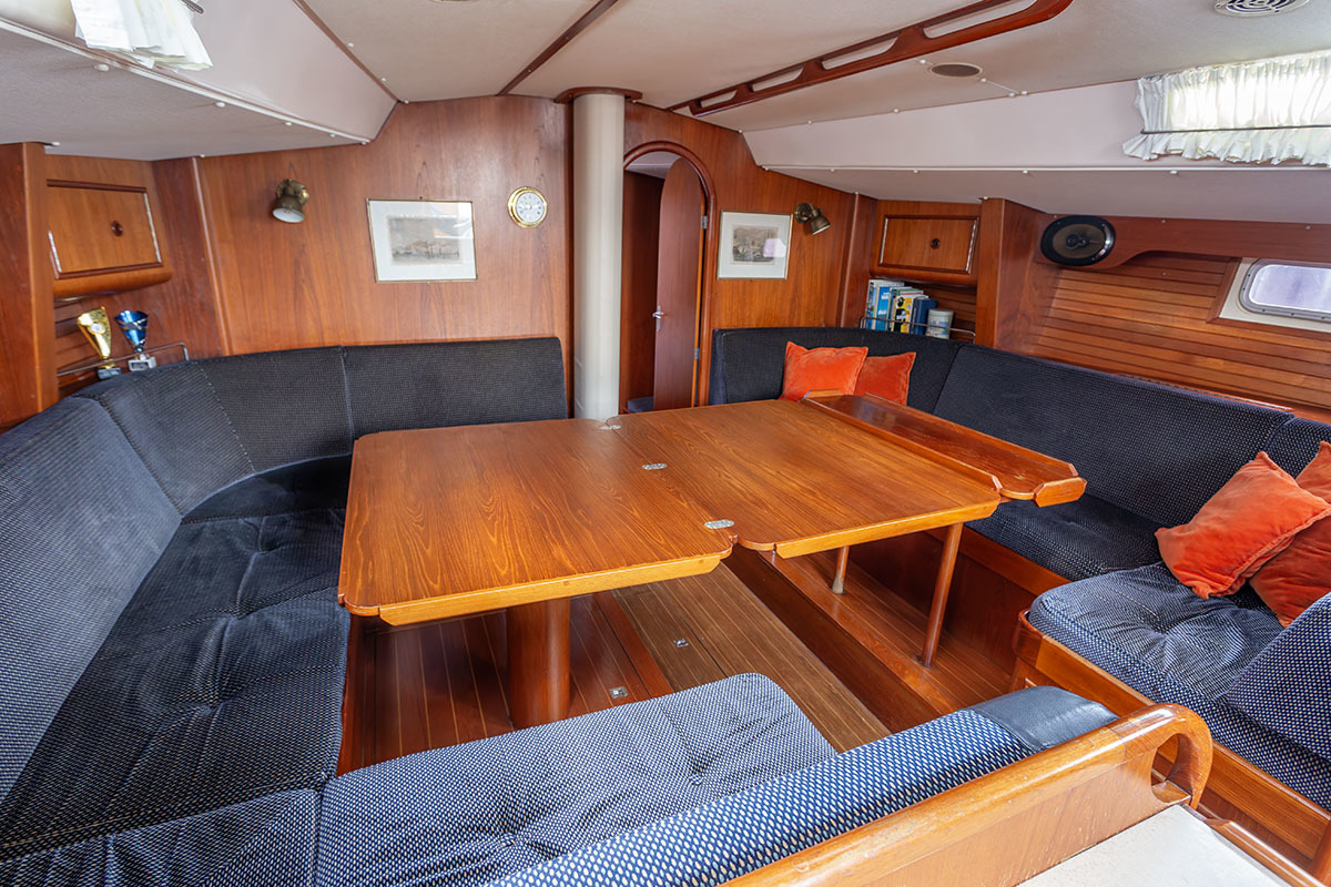 Het interieur is ruim en praktisch van opzet. Bij binnenkomst is aan bakboord de kombuis, en aan stuurboord de navigatiehoek. Midscheeps is een ruime salon. De tafel kan in een handomdraai worden vergroot. In de boeg is de eigenaarshut, en in het vooronder en-suite badkamer met toilet. Bakboord achter is een tweede hut, en aan stuurboord een natte cel.