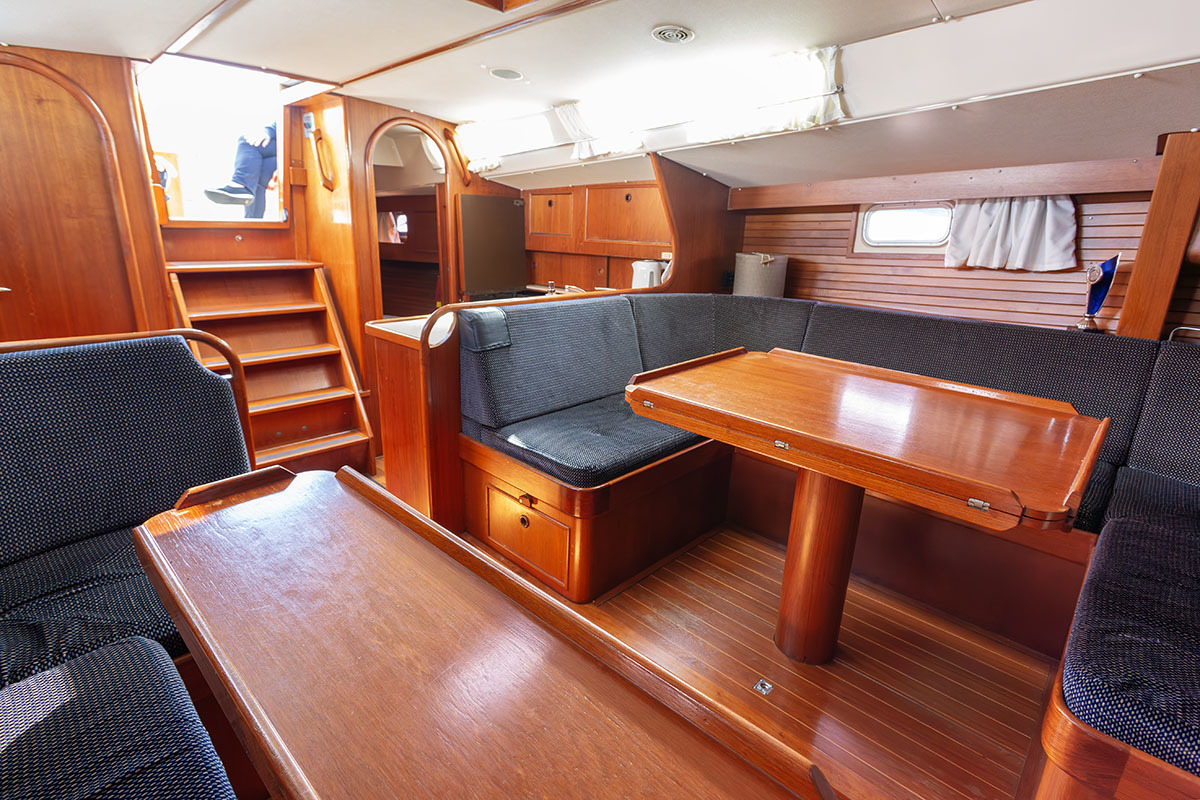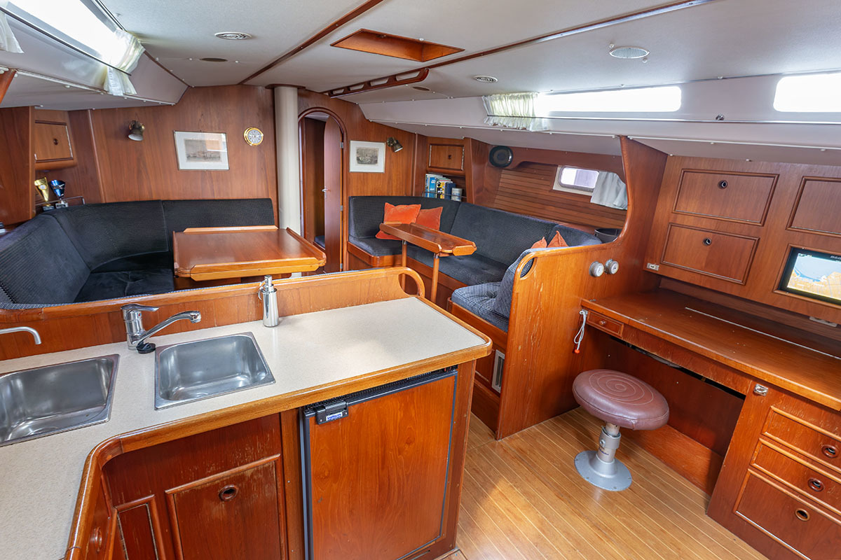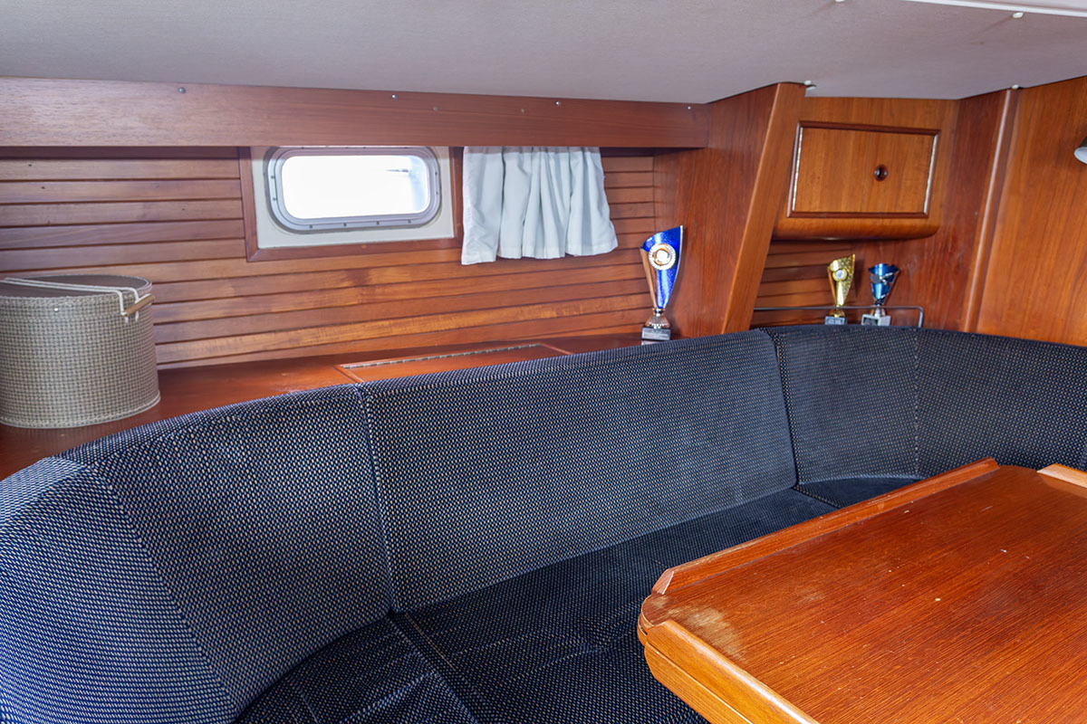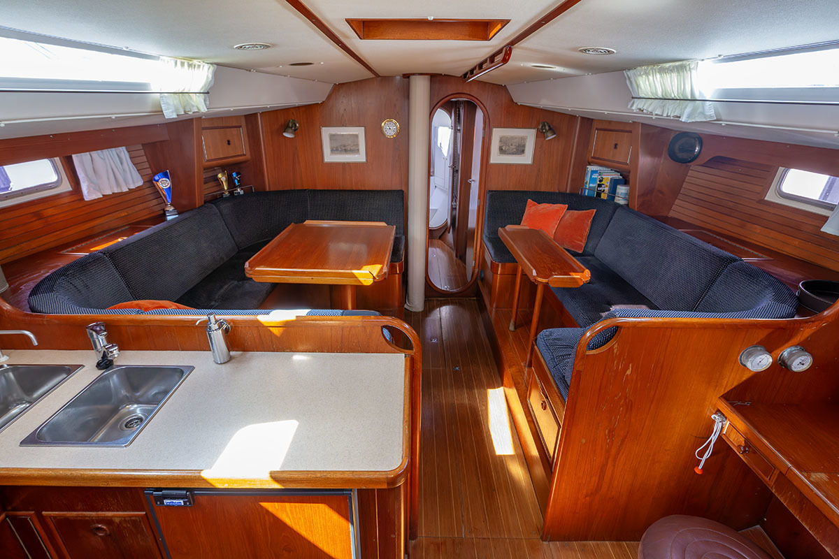 Het interieur is ruim en praktisch van opzet. Bij binnenkomst is aan bakboord de kombuis, en aan stuurboord de navigatiehoek. Midscheeps is een ruime salon. De tafel kan in een handomdraai worden vergroot. In de boeg is de eigenaarshut, en in het vooronder en-suite badkamer met toilet. Bakboord achter is een tweede hut, en aan stuurboord een natte cel.