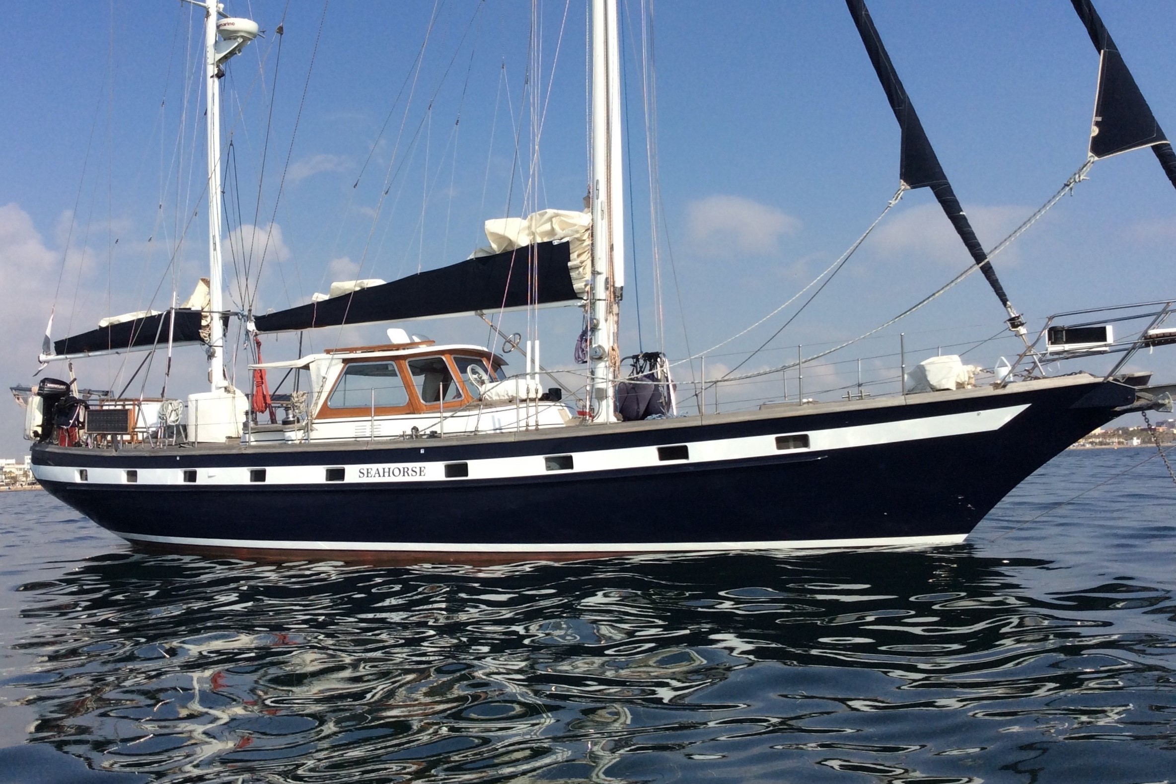 Also the quality of the very strong hull in Stainless steel 316L sets her apart from the majority of steel sailing vessels.That gives a peace of mind. The decks are spacious and the cockpit is a well protected area with a great ambiance.