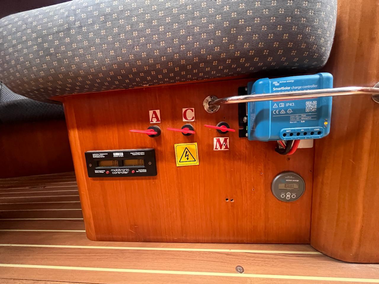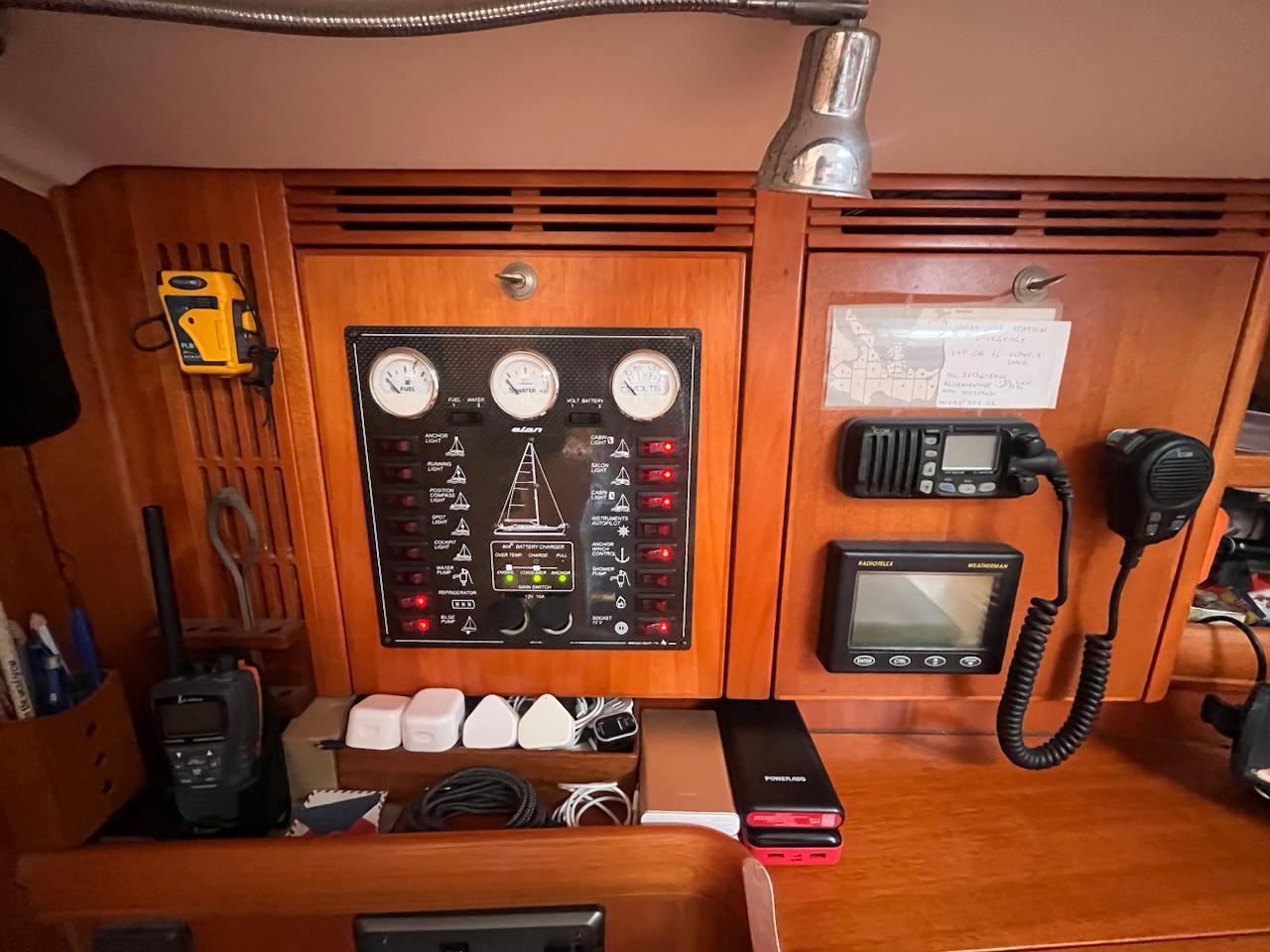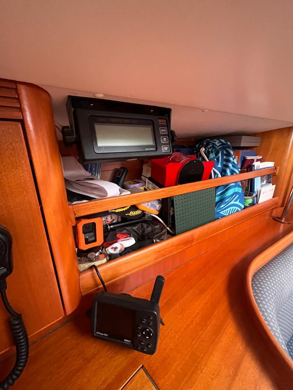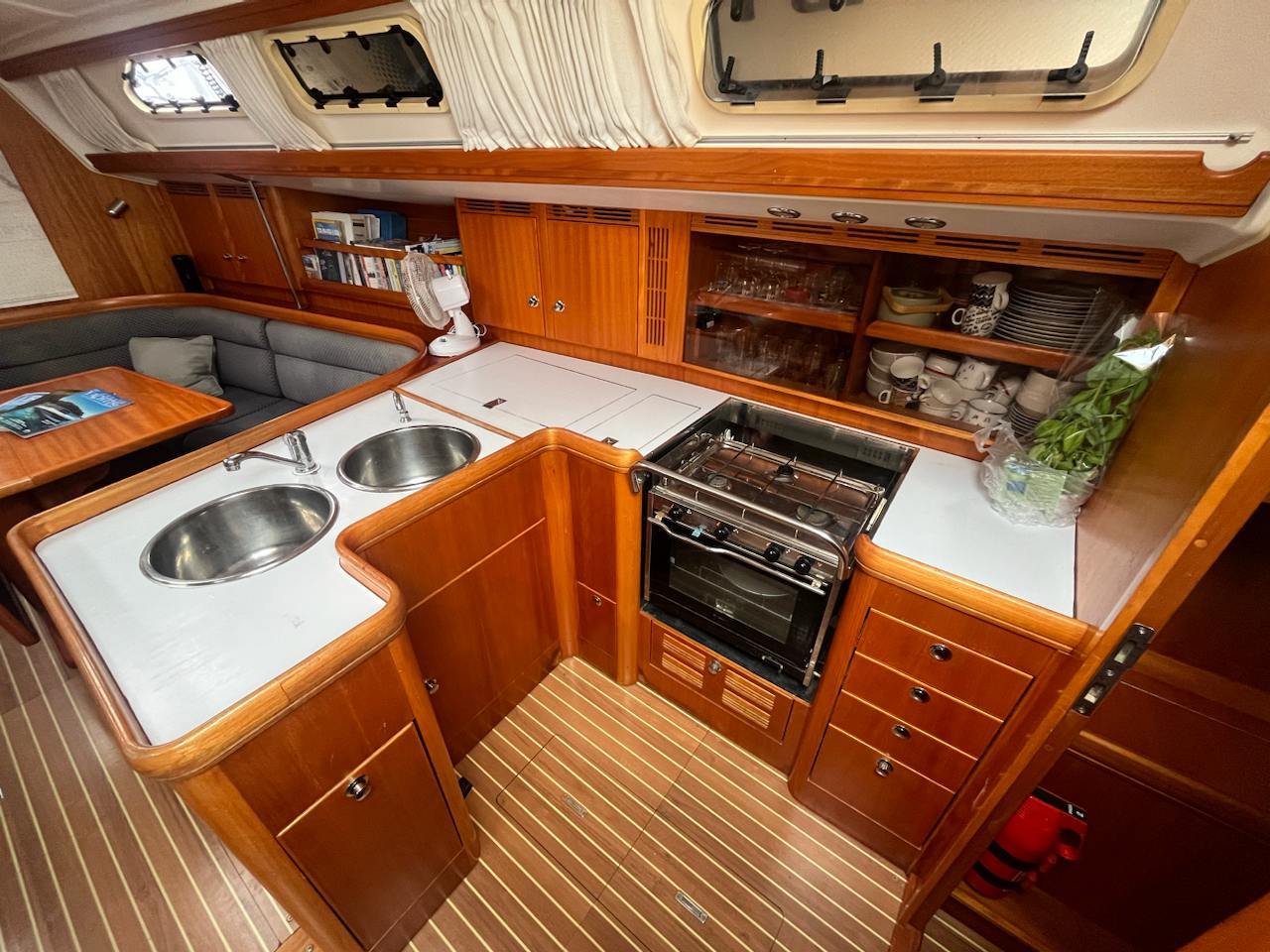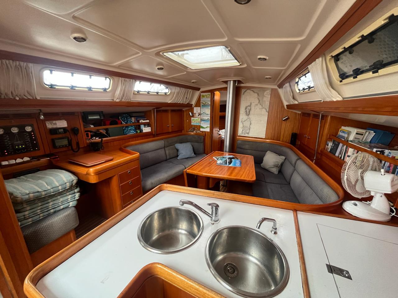 She is powered by a Volvo Penta MD 2040 40hp engine and a folding propeller. She features a Selden Performance Rig, with mainsail replaced in 2021. and a full rigging check performed in 2022., and an extensive range of navigational equipment to support navigation in any sea.