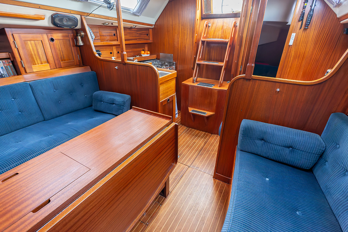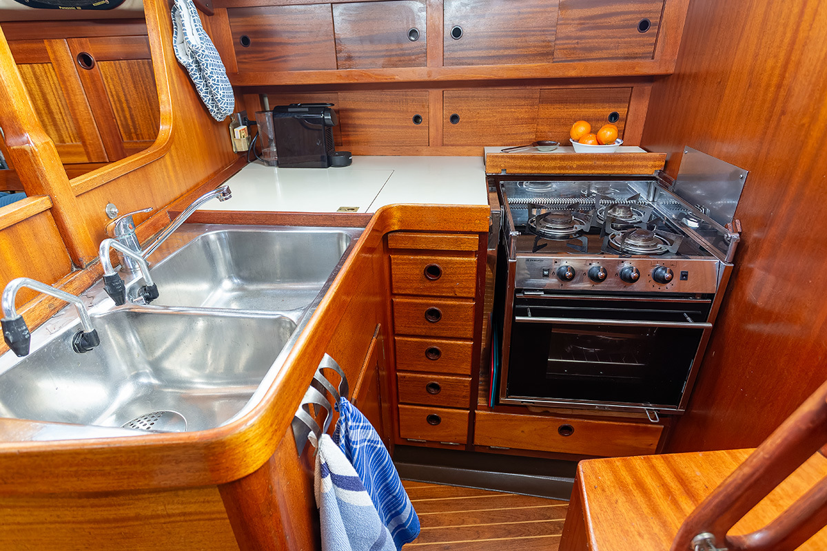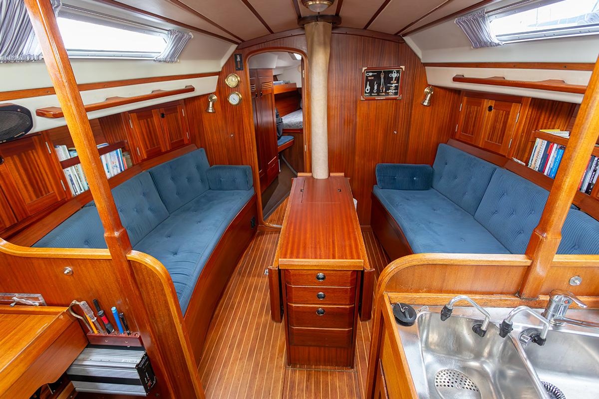 Salon met kombuis en navigatiehoek, 2 hutten en natte cel