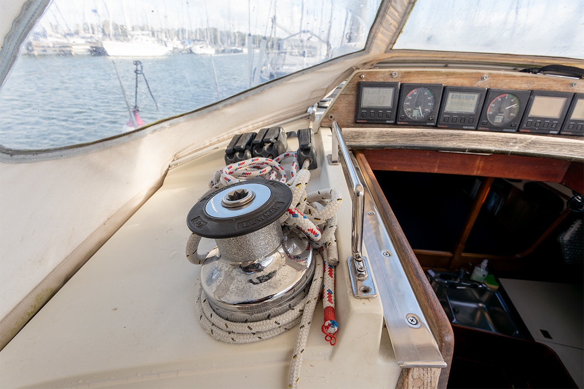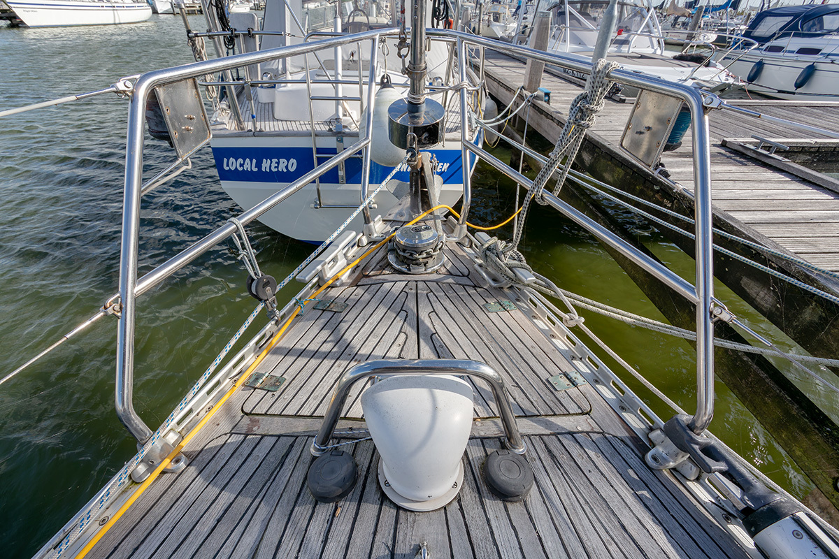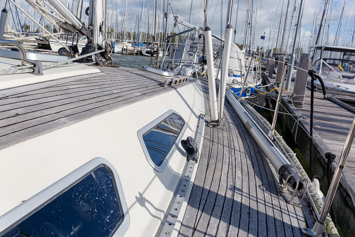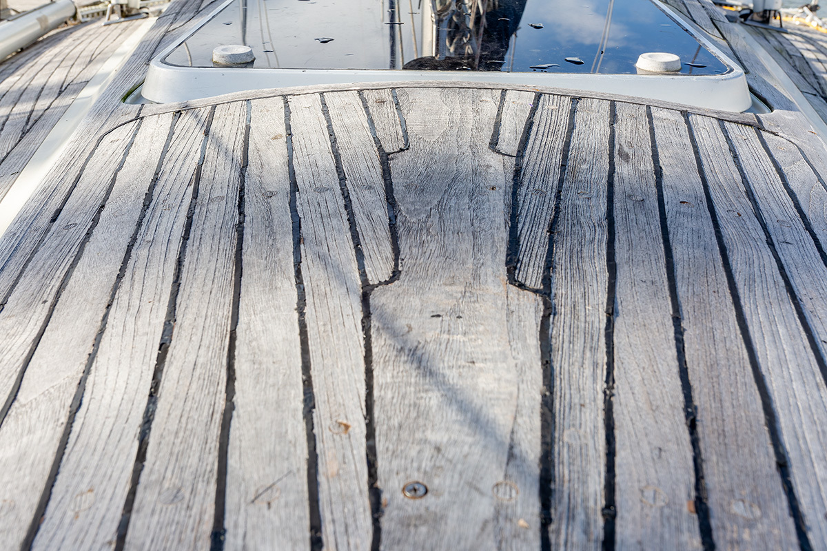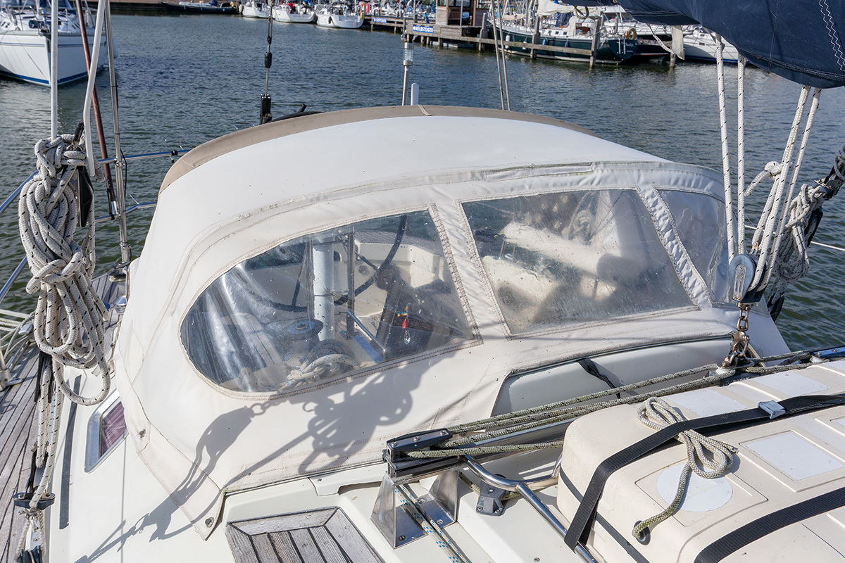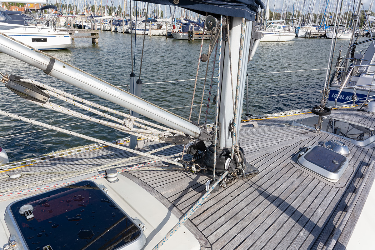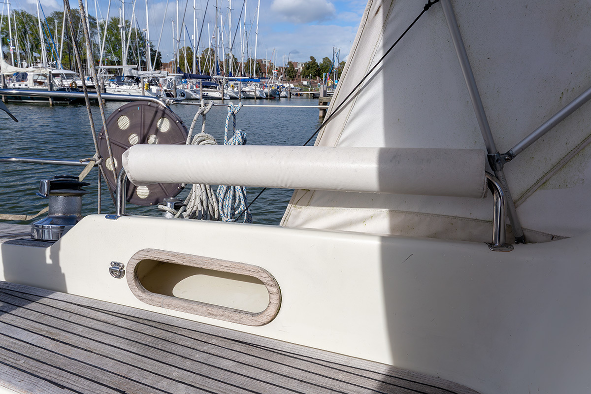 De Sweden Yachts werf heeft vele jaren kwalitatief hoogwaardige jachten gebouwd en zijn bij kenners vermaard om hun prestaties en zeewaardigheid. De Sweden 340 van het ontwerpduo Norlin-Ostman heeft fraaie klassieke lijnen en een stoere uitstraling. In de kuip zit men goed beschermd achter de buiskap, en is de boot goed te bedienen. Er zijn weervaste kussens voor de bemanning en de kuiprand voor een aangename zit op lange rakken. Het teak dek is nog origineel en behoeft wat werk zoals afdoppen van parkers en repareren van kitnaden. De eigenaar onderhoudt het dek regelmatig en het ligt deugdelijk vast en is lekvrij.