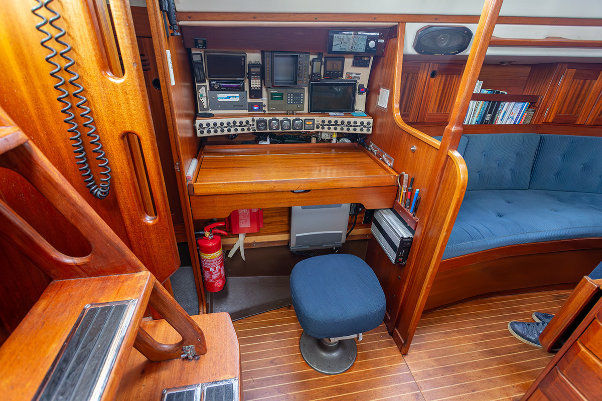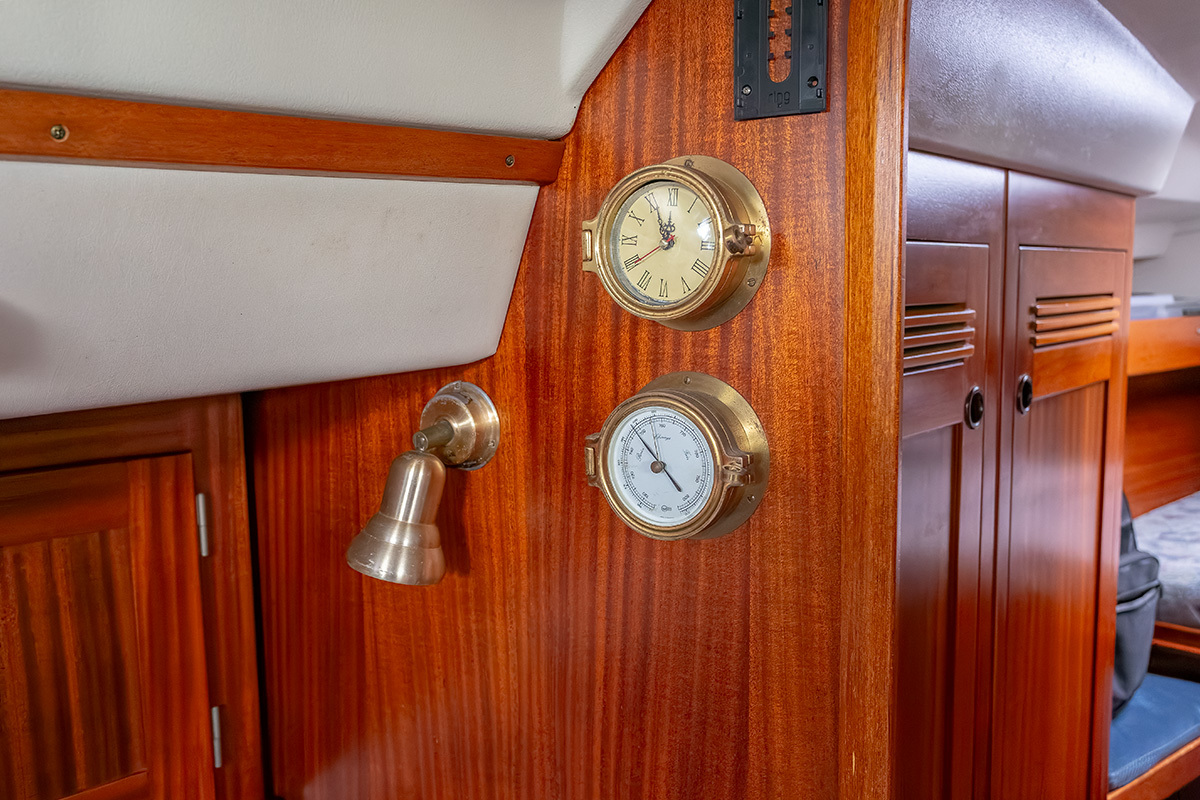 Het interieur is netjes en opvallend ruim voor een jacht van 34 voet. Bij binnenkomst is meteen links de navigatie hoek met de nodige navigatie en communicatie apparatuur. Rechts van de ingang is de kombuis met fraaie oven en grote koeling. In de midscheeps is de salon met twee langsbanken. In het voorschip is de natte cel met toilet en handdouche, en helemaal in de boeg een hut met V-bed. In het achterschip in een ruime hut met Neptune matrassen. Wanneer u een goed varend en zeewaardig jacht zoekt, dan is deze Sweden 340 zeker een geschikte keuze. Wij nodigen u van harte uit voor een bezichtiging aan boord in Enkhuizen (NL). Heeft u nog vragen, of wilt u een afspraak maken, neemt u dan contact op via enkhuizen@wwy.nl. Uw jachtmakelaar is Robert de Vries, tel. +31(0)228855380. Bezichtigingen zijn mogelijk van maandag t/m zaterdag, alleen op afspraak.