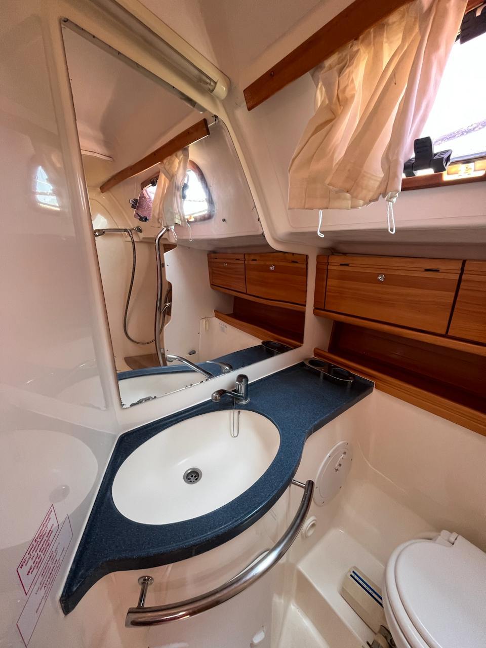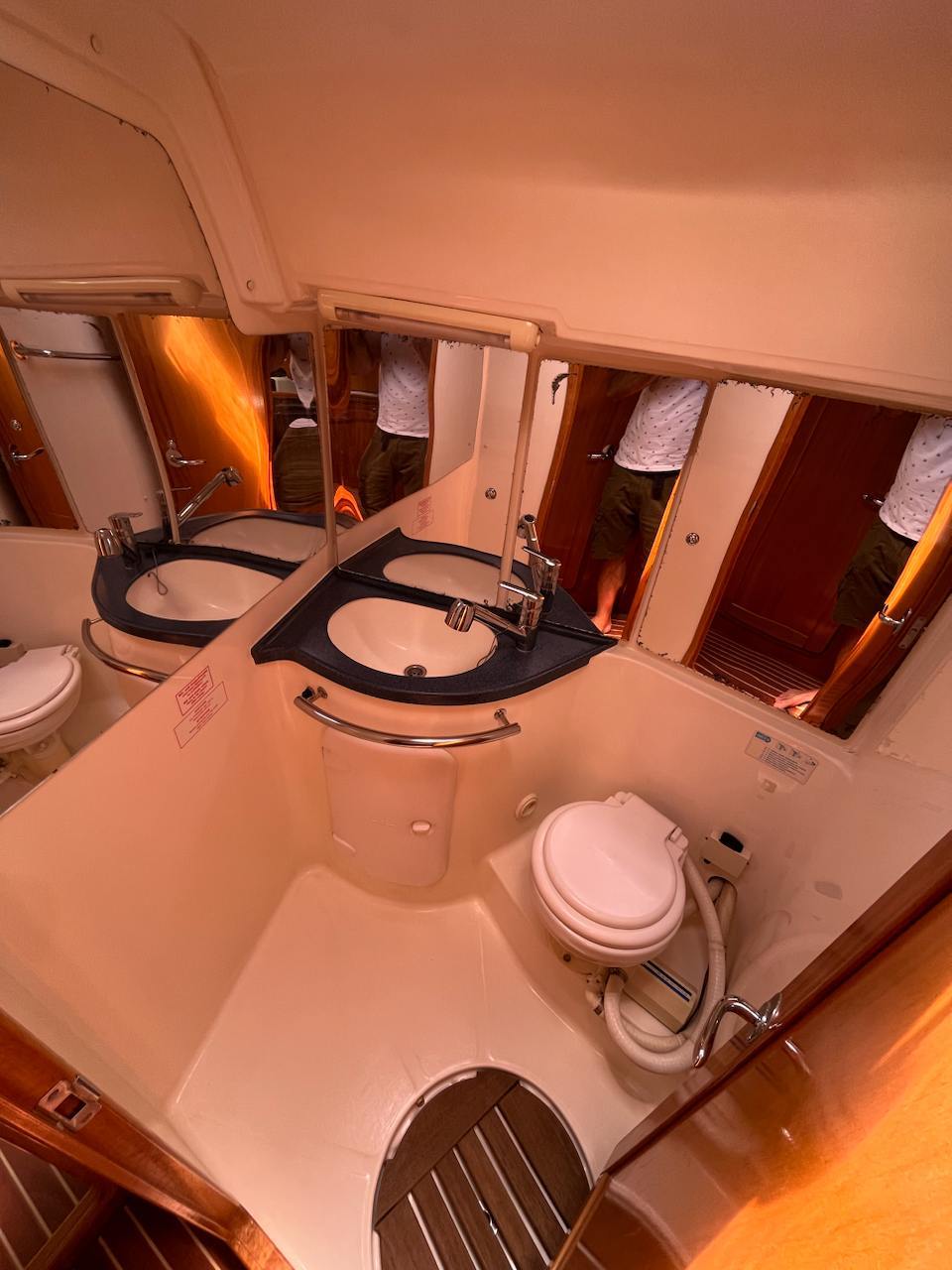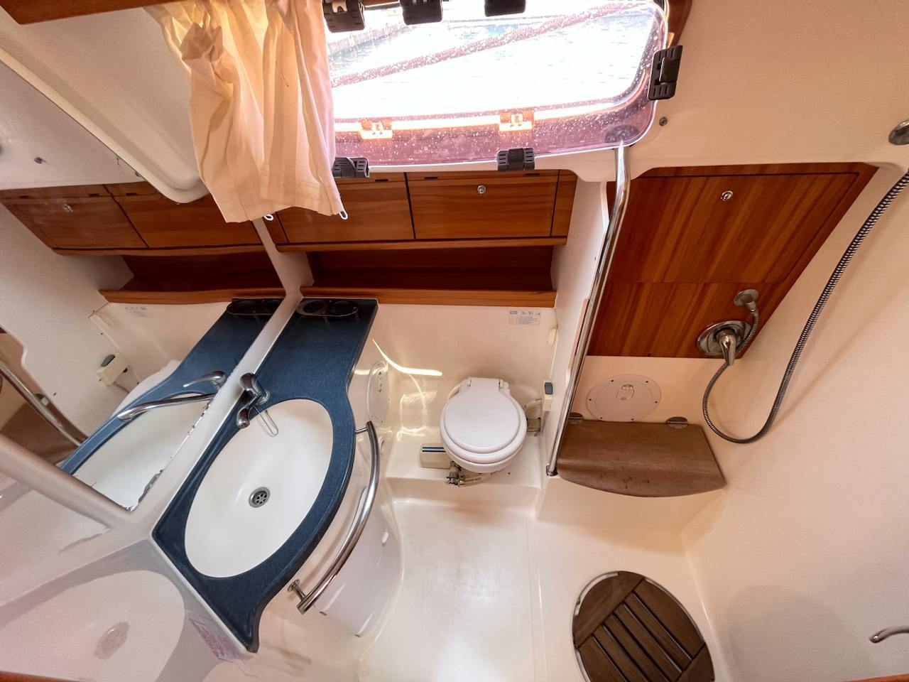 2x electric winch in cockpit for genoa or geenaker, electric toilet, Webasto heating and more.