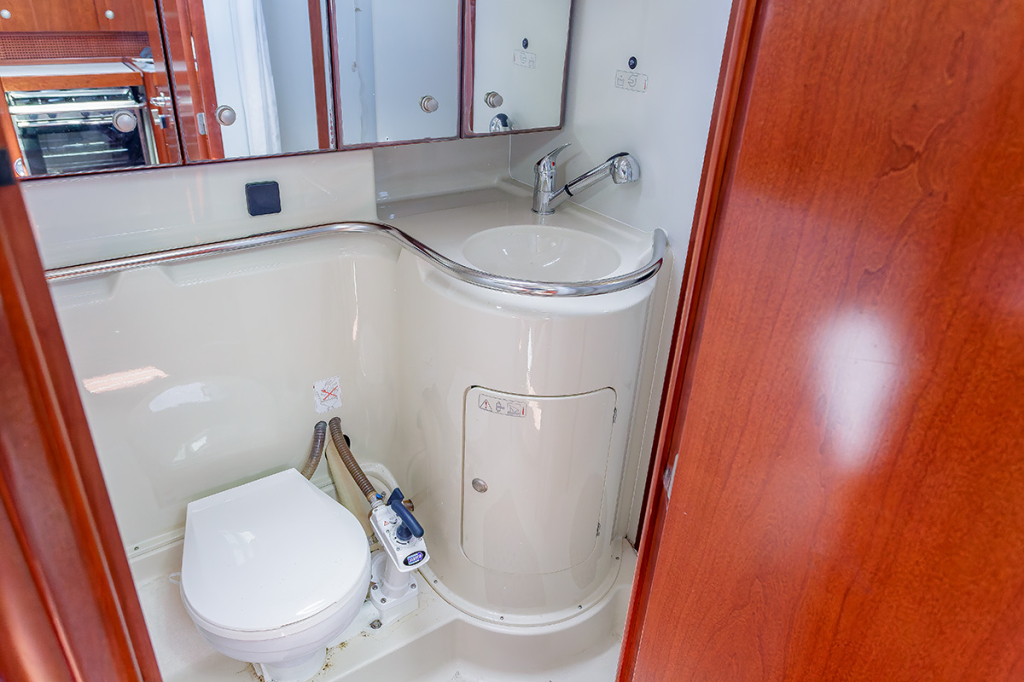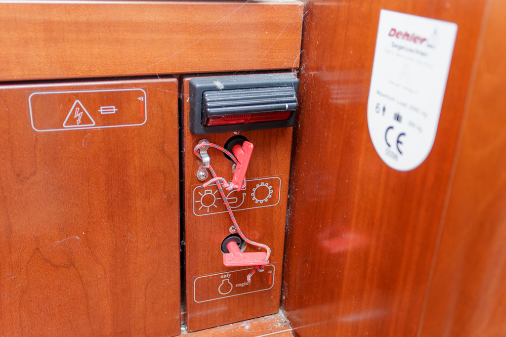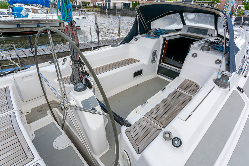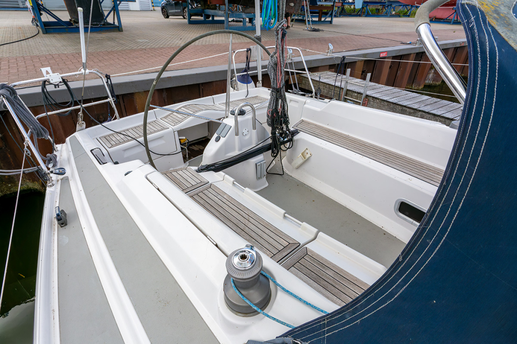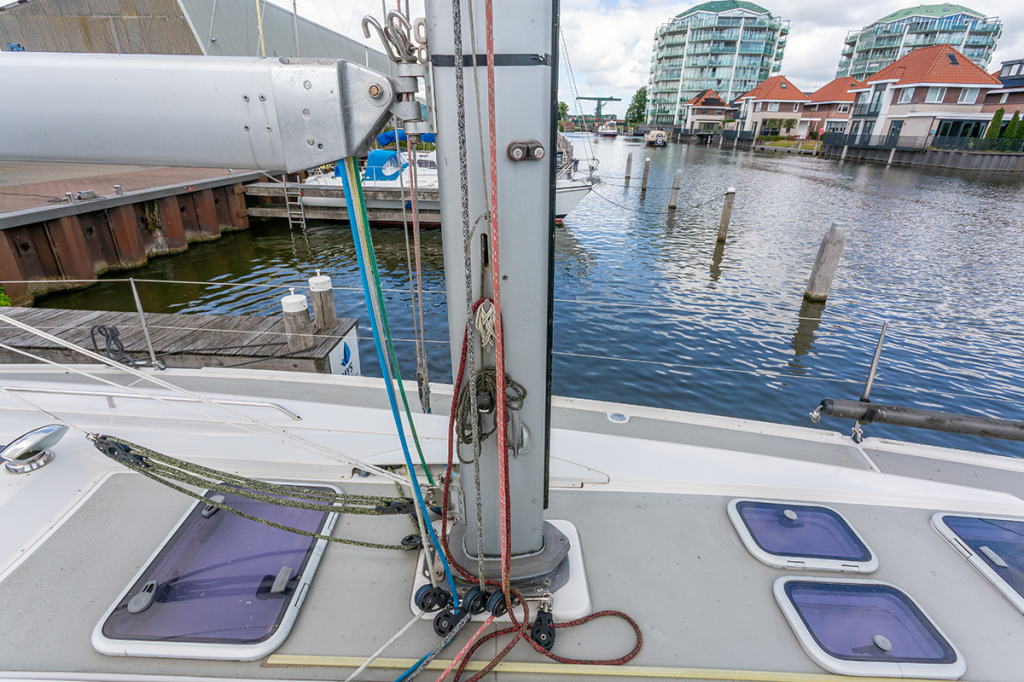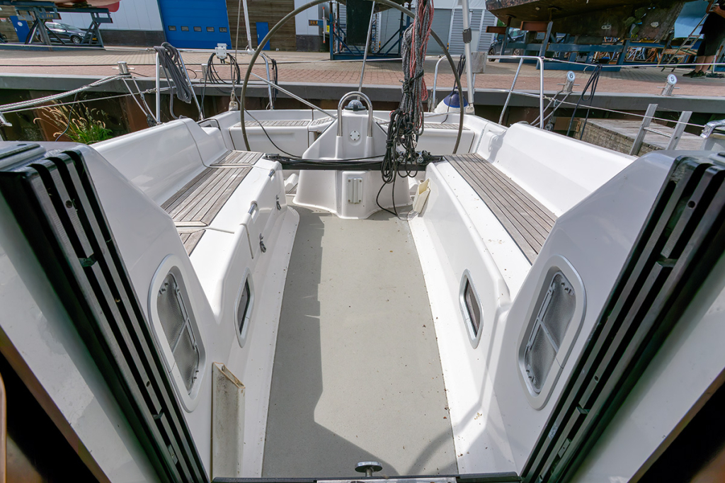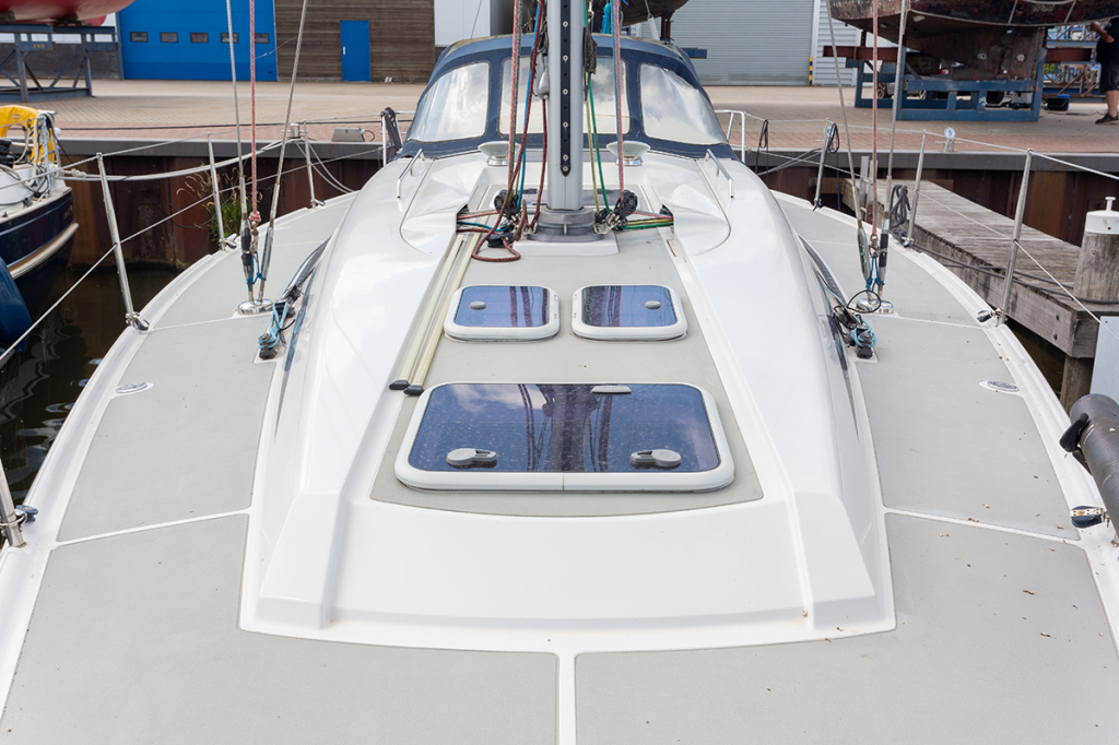 De dekuitrusting met 4 Lewmar selftailing lieren waarvan er drie elektrisch zijn, is goed geplaatst en zorgt voor optimaal gebruiksgemak. De fractionele Sparcraft mast heeft 3-zalingen. Kuip en zijdekken zijn ruim en ergonomische. Het jacht reageert zeer goed op het roer, het is een groot plezier om haar te besturen. De 40 pk Yanmar heeft meer dan voldoende vermogen om tegenwind of sterke stroming te trotseren.