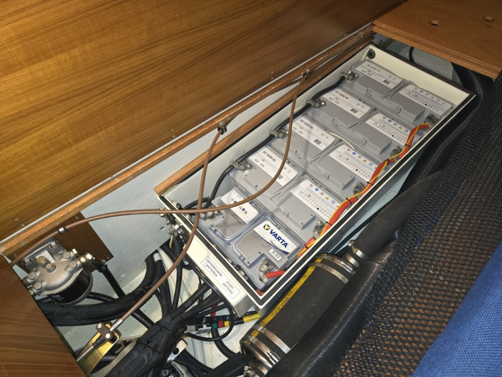 4 x AGM 95Ah (2022) service + 1 x AGM (2022) start + 1 x AGM voor boegschroef en ankerlier
