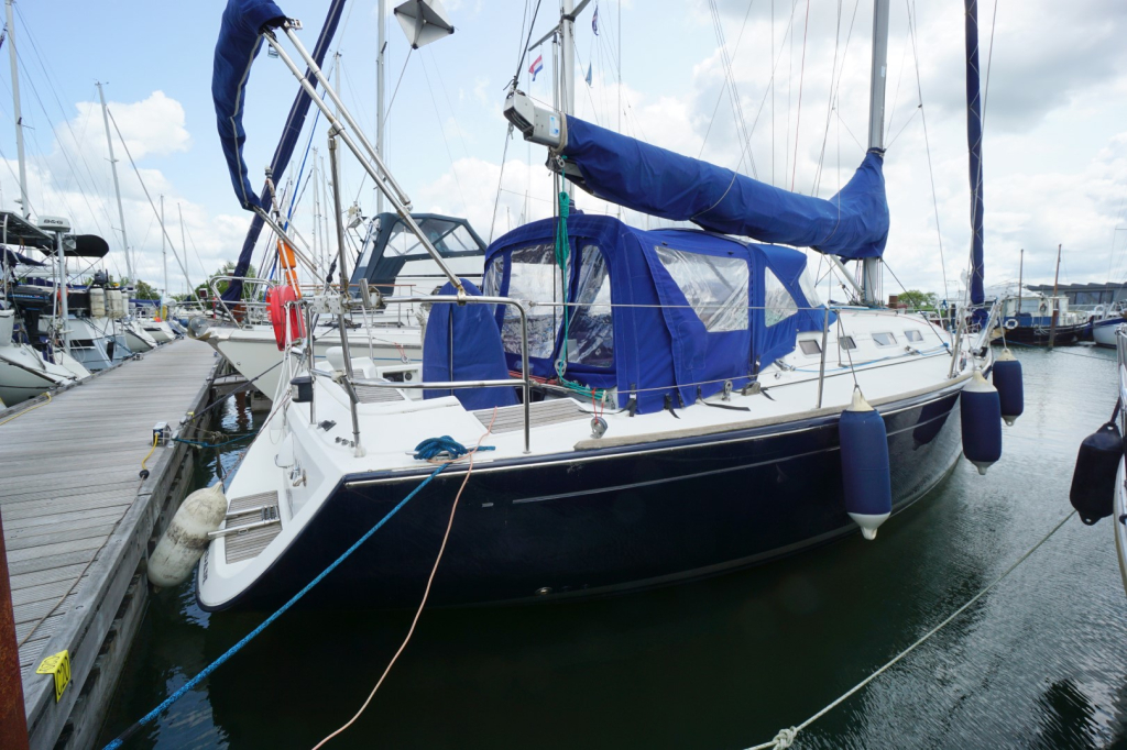 De 40.7 die wij u mogen aanbieden is lekker compleet uitgerust met een uitgebreide serie aan navigatie instrumenten, elektrisch ankerlier, handige kuiptent en een mooie in 2017 nieuw aangemeten North 3Di grootzeil en genua inclusief nieuwe verstaging. Verder zijn er nog diverse andere zeilen aanwezig zoals een vrijwel nieuwe spinnaker en een gennaker met boegspriet. Tel daar de strakke donkerblauwe romp bij op die in 2017 professioneel opnieuw in de lak is gezet en u heeft niet alleen een comfortabel schip met fantastische zeileigenschappen maar ook gewoon een erg fraai plaatje om naar te kijken. En dat is natuurlijk altijd leuk!
