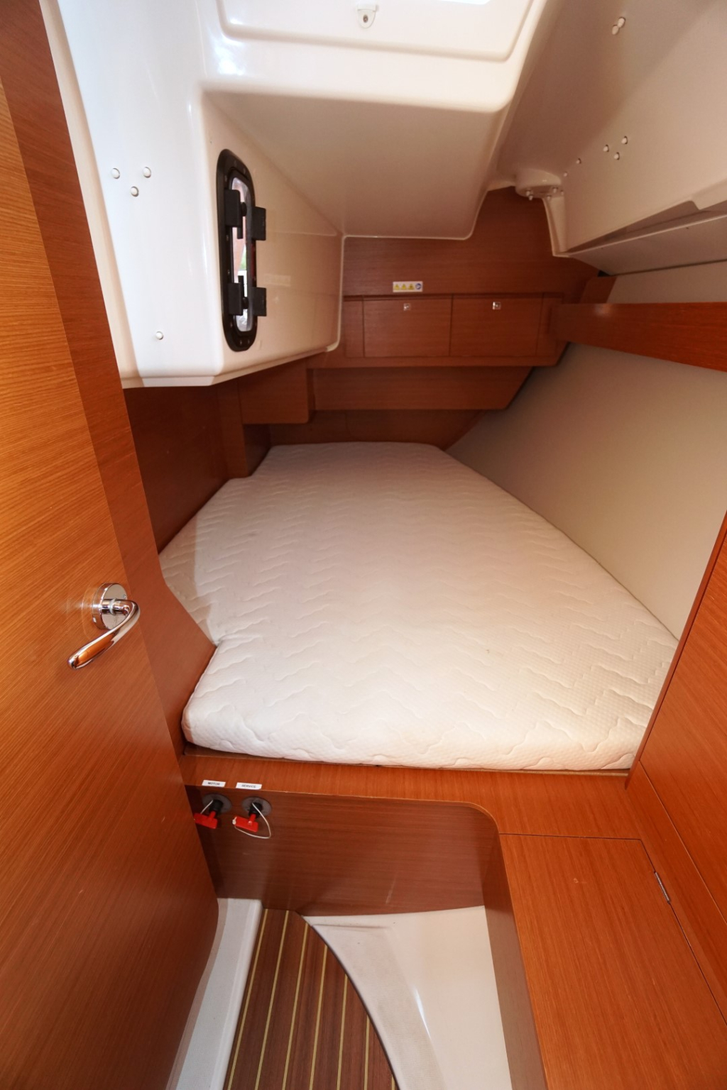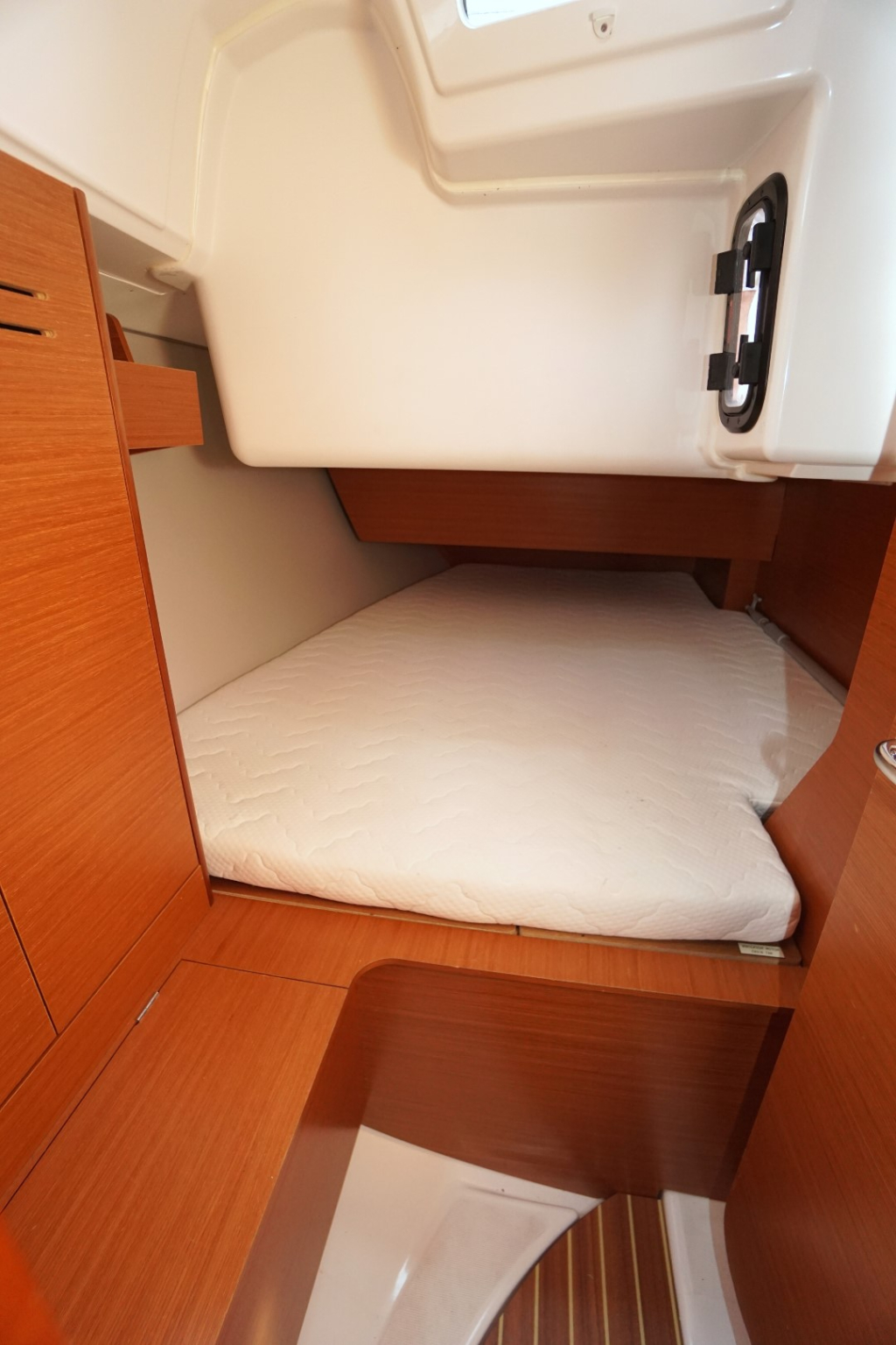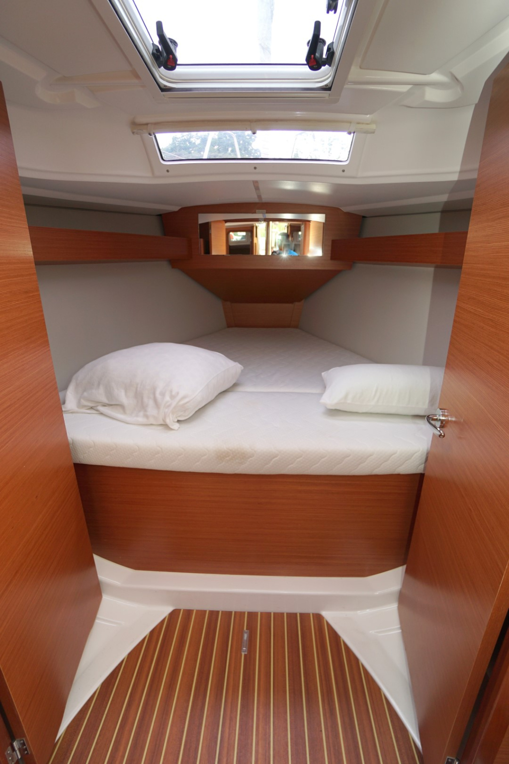 Met drie ruime hutten biedt deze Dufour voldoende slaapruimte voor zes personen. Elke hut is uitgerust met comfortabele matrassen, slimme opbergmogelijkheden en ventilatie die zorgt voor een aangenaam verblijf, zelfs tijdens warmere dagen. De salon voelt licht en ruim aan dankzij het moderne ontwerp, de hoogwaardige afwerking en het natuurlijke licht dat royaal naar binnen valt via de panoramische vensters.
