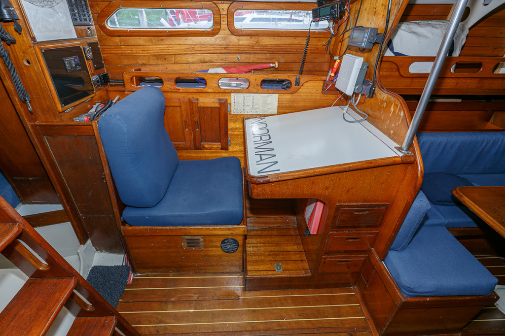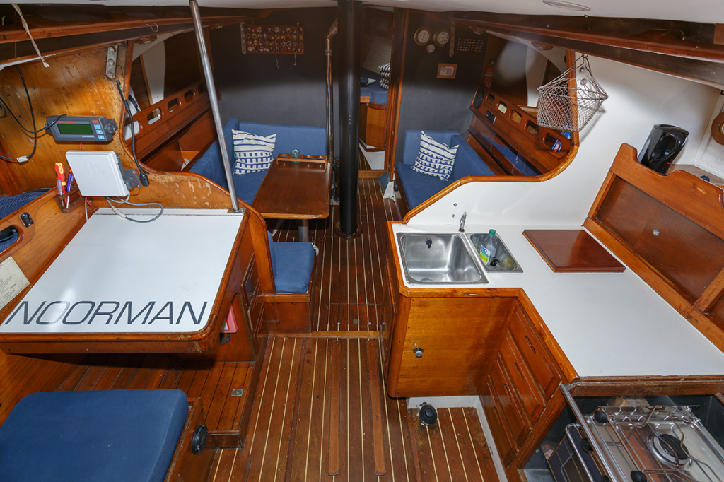 Bij binnenkomst is aan bakboord de navigatie tafel en aan stuurboord de kombuis. Midscheeps is de salon met L-vormige bank en langs bank aan stuurboord. Verder naar voren is aan bakboord de natte cel en er tegenover een opbergkast. In het voorschip is een dubbele kooi. In het achterschip is zowel een een dubbel als een enkel bed. De "Noorman" staat 's winters op de wal gestald. Voor wie een fraai jacht met klassieke lijnen zoekt, dan is de Ericson 39 een geschikte keuze. De boot is vaarklaar voor de nieuwe eigenaar.