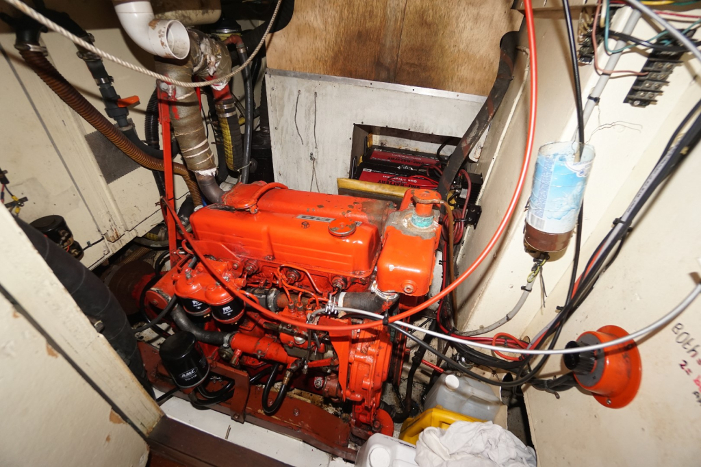 De motor is 80pk Ford Lehman diesel en de aanwezige boegschroef maakt manoeuvreren eenvoudig. Met een brandstofcapaciteit van circa 500 liter en watertanks van ongeveer 850 liter is ze uitstekend uitgerust voor langere oversteken zonder afhankelijk te zijn van frequente stops.