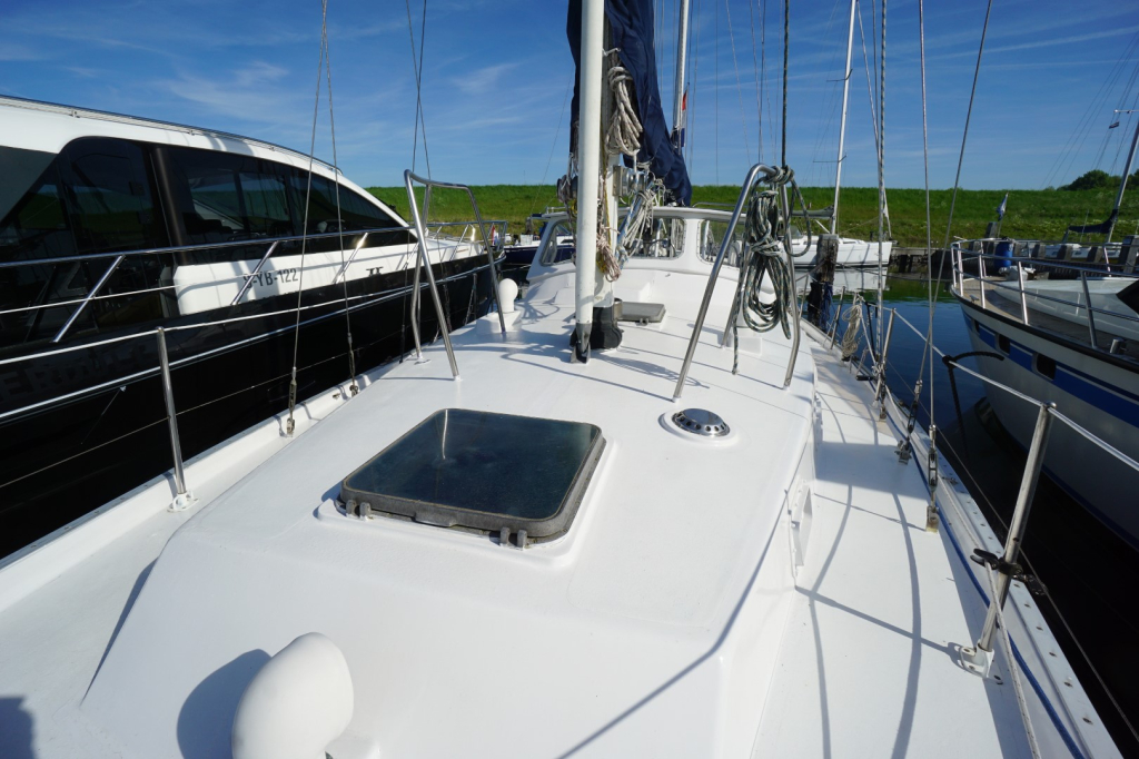 Stap aan boord van de iconische Whitby 42. Een zeewaardige ketch ontworpen door Edward Brewer. Dit jacht, geliefd bij wereldzeilers, combineert betrouwbaarheid, comfort en prestaties. Gebouwd met het oog op langeafstandscruisen en zelfstandig leven aan boord, is dit schip een zeldzame kans voor wie droomt van verre bestemmingen.