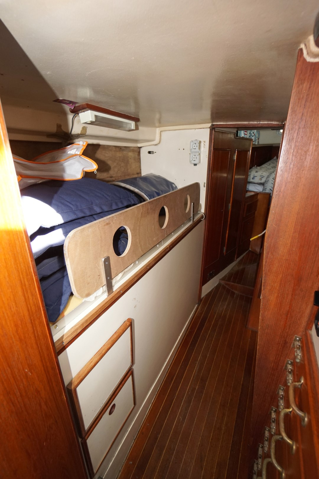 Bed in kajuit stuurboord met tafel omhoog: 1.95 x 0.60 m.