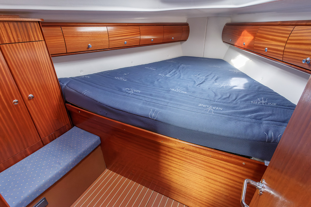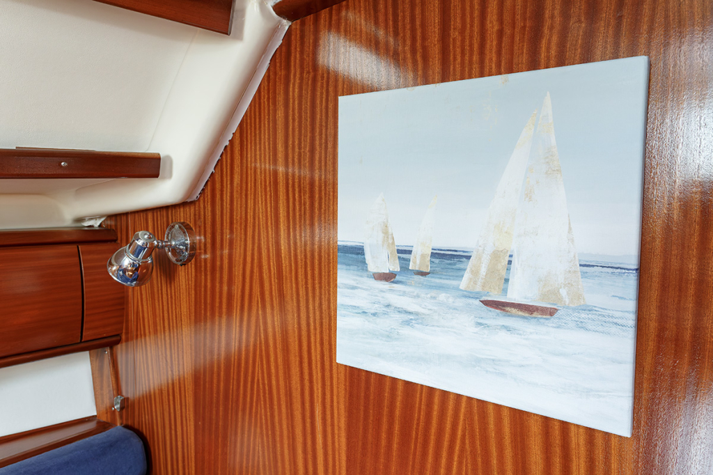 In het interieur valt meteen de praktische indeling en nautisch sfeer op. De salon heeft twee langsbanken met tafel midscheeps. Aan bakboord is een ruime kombuis, voorzien van vernieuwd Eno kooktoestel met oven, koelkast, warm en koud water en de nodige opbergruimte. Aan stuurboord vind u de kaartentafel met het schakelpaneel voor de elektrische systemen. Bij de kaartentafel is ook de de toegang tot de natte cel met toilet en douche. Zowel in de voorpiek als in het achterschip zijn tweepersoons hutten met goede matrassen. Bekijk de volledige advertentie voor uitgebreide informatie.