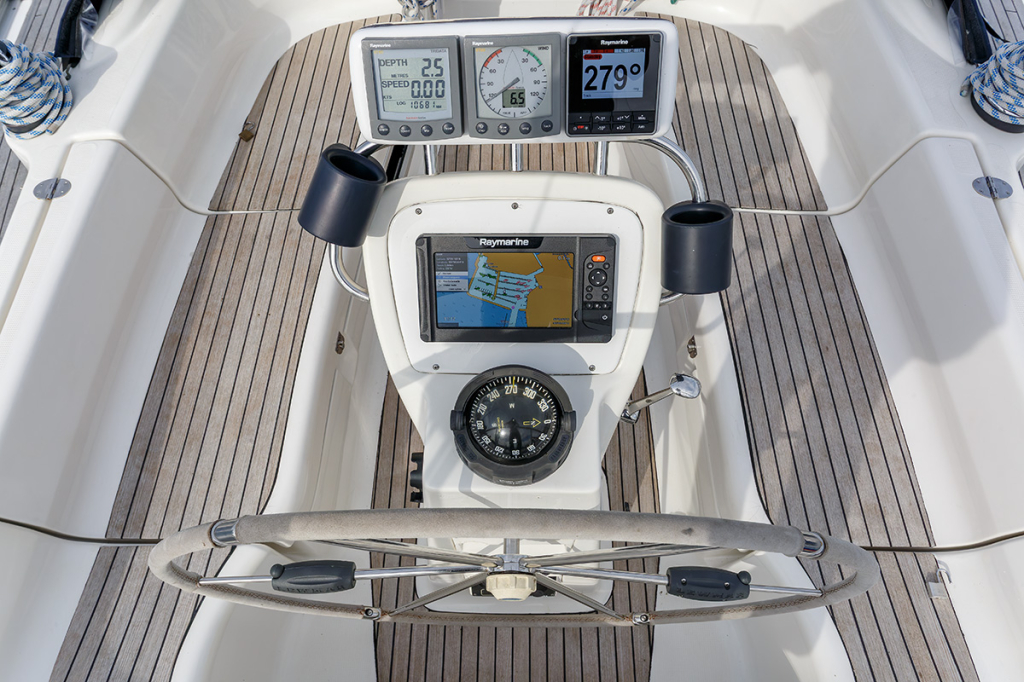 Wij bieden u deze goed onderhouden Bavaria 36 in de twee hutten uitvoering aan namens de derde prive eigenaar. De boot heeft opvallend weinig motoruren, slechts ca 1.100, en maar 10681 mijlen op het log. Ze is geheel vaarklaar voor de nieuwe eigenaar. Vanaf de stuurstand heeft u goed overzicht over de boot, de omgeving en de navigatie instrumenten. Recent heeft de eigenaar de nodige investeringen gedaan in apparatuur, veiligheid en het onderwaterschip.
