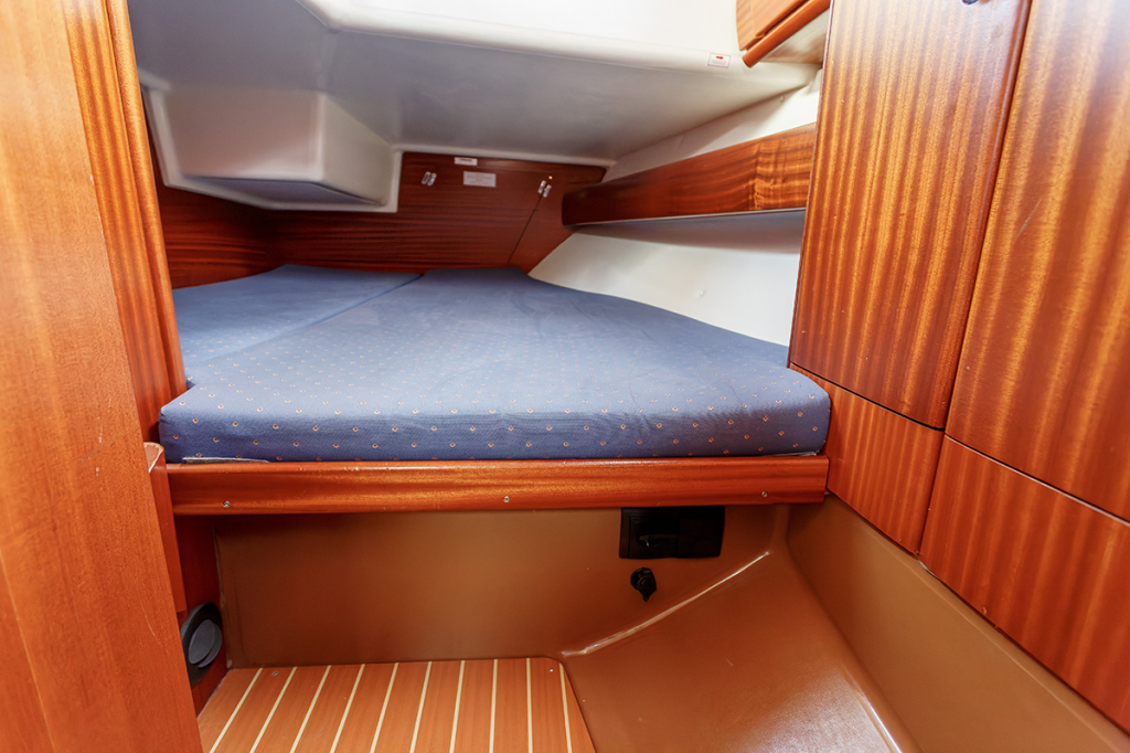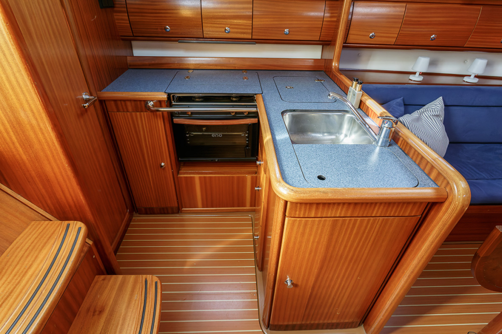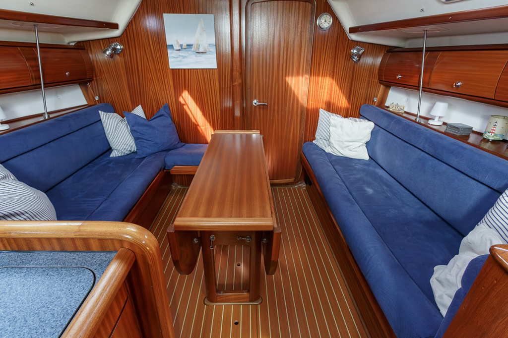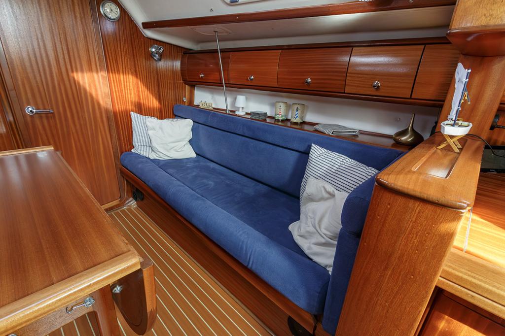 In het interieur valt meteen de praktische indeling en nautisch sfeer op. De salon heeft twee langsbanken met tafel midscheeps. Aan bakboord is een ruime kombuis, voorzien van vernieuwd Eno kooktoestel met oven, koelkast, warm en koud water en de nodige opbergruimte. Aan stuurboord vind u de kaartentafel met het schakelpaneel voor de elektrische systemen. Bij de kaartentafel is ook de de toegang tot de natte cel met toilet en douche. Zowel in de voorpiek als in het achterschip zijn tweepersoons hutten met goede matrassen. Bekijk de volledige advertentie voor uitgebreide informatie.