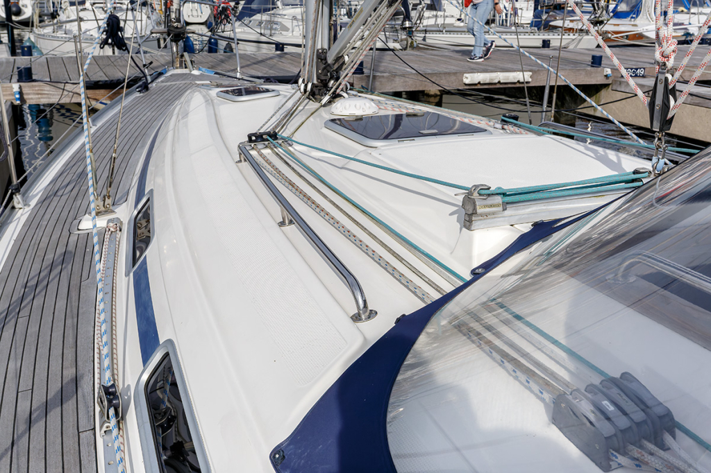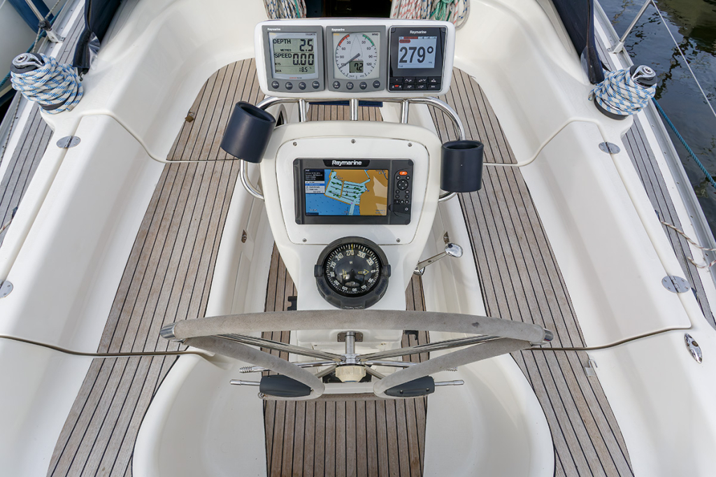 Wij bieden u deze goed onderhouden Bavaria 36 in de twee hutten uitvoering aan namens de derde prive eigenaar. De boot heeft opvallend weinig motoruren, slechts ca 1.100, en maar 10681 mijlen op het log. Ze is geheel vaarklaar voor de nieuwe eigenaar. Vanaf de stuurstand heeft u goed overzicht over de boot, de omgeving en de navigatie instrumenten. Recent heeft de eigenaar de nodige investeringen gedaan in apparatuur, veiligheid en het onderwaterschip.