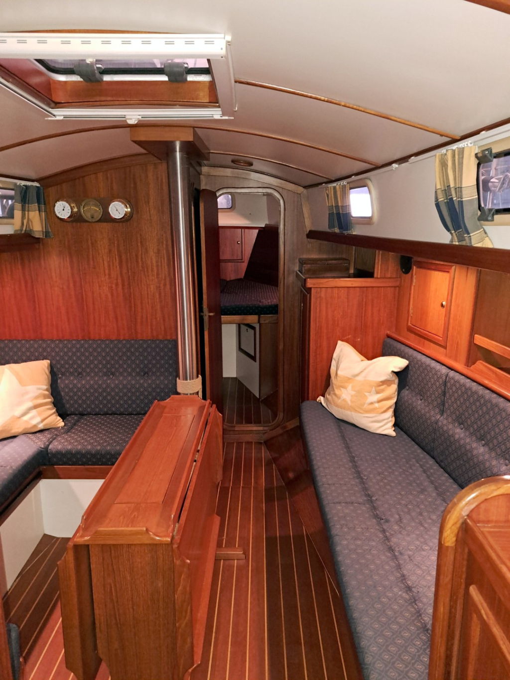 De Victoria 34 biedt een goed ontworpen interieur dat ruimte en comfort maximaliseert, waardoor hij geschikt is voor zowel korte tochten als langdurig cruisen op blauw water.