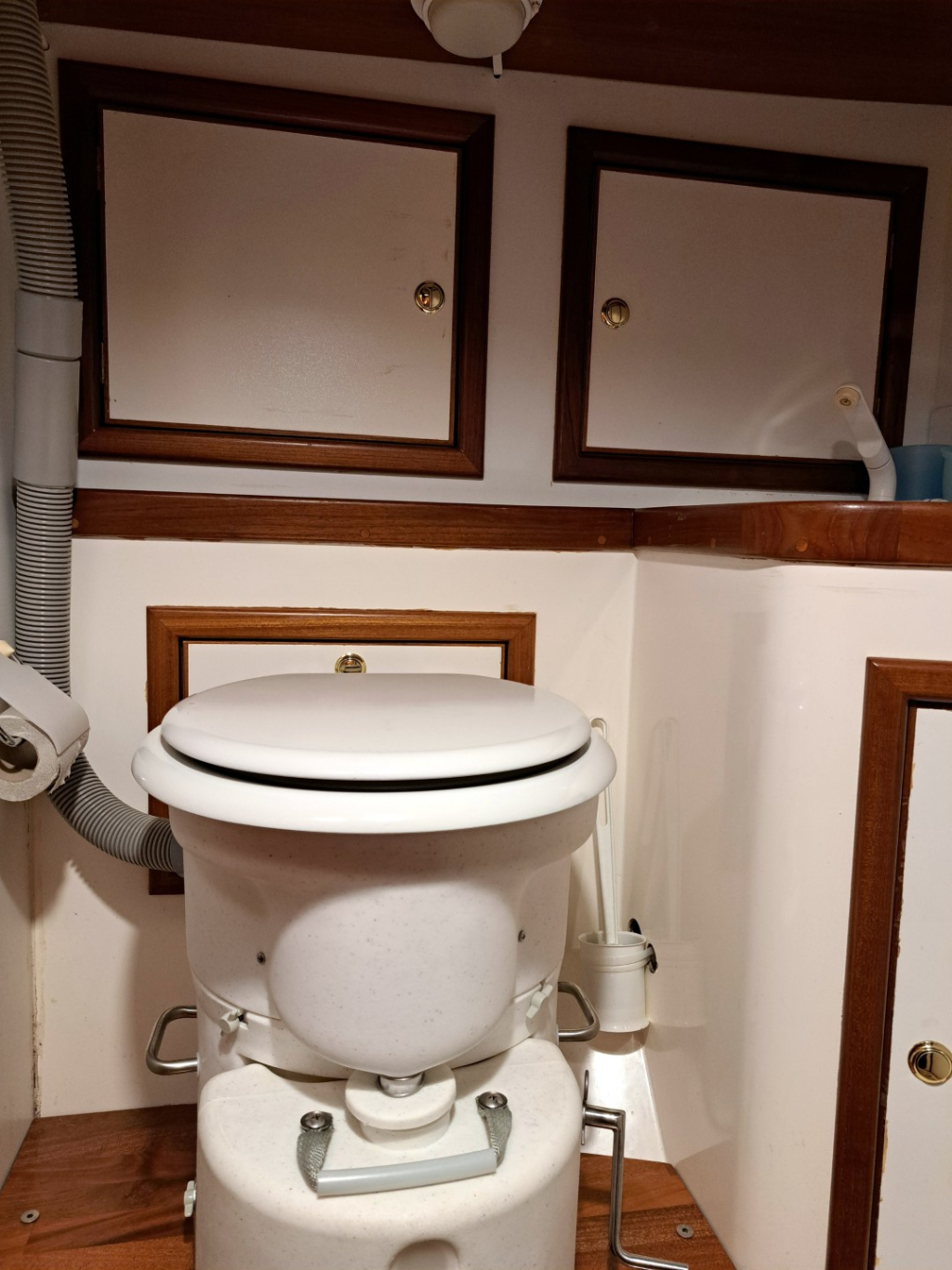 De kop, gelegen nabij de voet van de opvolggang, beschikt over een maritieme toilet, wastafel en een douche met warm- en koudwateropties. Deze opstelling zorgt voor comfort en gemak voor langere periodes op het water.