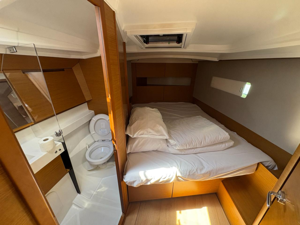 It is a new design that offers a lot of comfort and great sailing.It has 3 double cabins and 2 showers with heads.