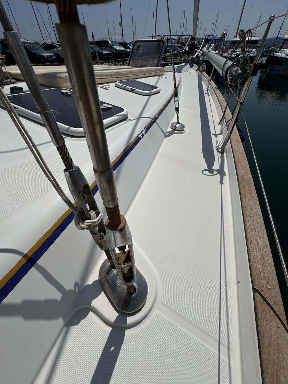 the boat is in general good condition, still owned by its first owner. The boat has many extras such as webasto heating, electric winch for the main sail, navigation instruments in cockpit, cockpit coushions, coushions for bow sunbathing, solar panels, electric outboard and much more.