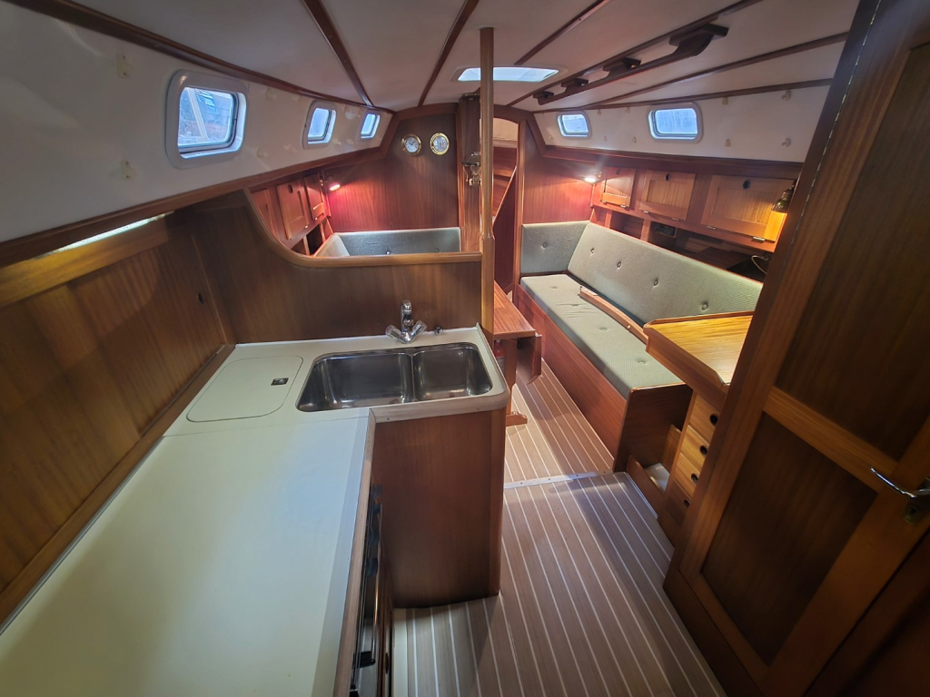 Los van wat de eigenaar er allemaal aan heeft gedaan is het natuurlijk ook nog een Najad met alle mooie details die de Najad schepen zo aantrekkelijk maken. De kuip is lekker ruim en het interieur is praktisch ingedeeld en fraai afgewerkt. Een typisch voorbeeld waar Scandinavische schepen om bekend staan; degelijk, mooie afgewerkt, goed gebouwd en lekker zeilend. Ze staat netjes hoog en droog binnen in een loods en is daar op afspraak te bezichtigen.