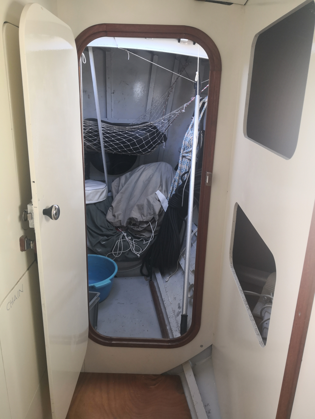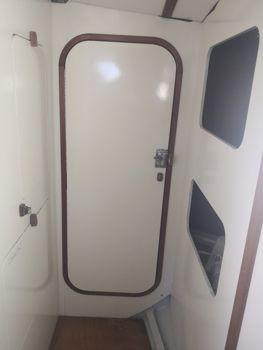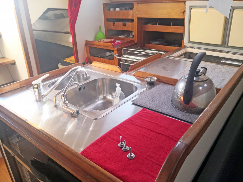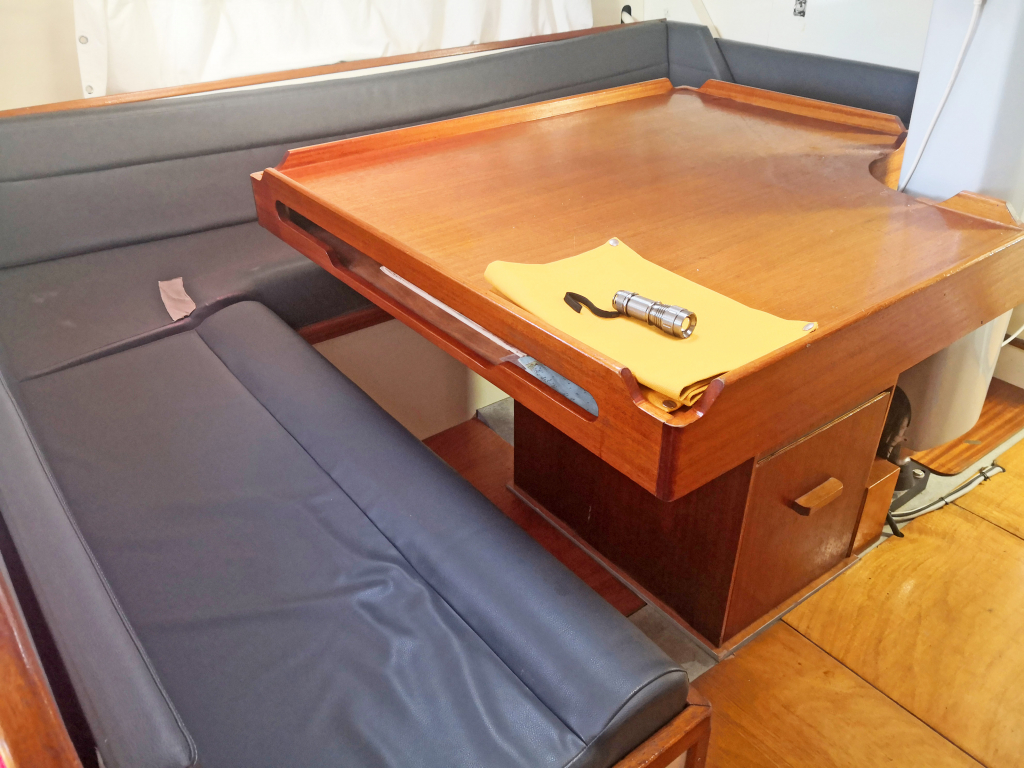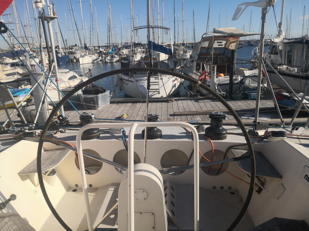 ACCOMODATION: Sleeps 6 in 2 cabins and saloon. Interior balsa-mahagoni wood. Partial insulation. Saloon with U shaped seating for 6 to starboard, additional sofa seating to port. Nav station to port aft and galley to starboard aft. Galley with U shaped stainless steel worktops with built in single stainless steel sink with mixer tap. 2 Burner stove with oven. 80L Top loading refrigerator (convertible into freezer). Full kitchen inventory. Aft cabins: double bed with hanging locker and cupboard storage. Head: Jabsco toilet, washbasin with mixer tap. Shower with shower pump. Lots of storage. Water 2x175L. Holding tank 60L. Electric and manual bilge pump. Additional moveable electric bilge pump.