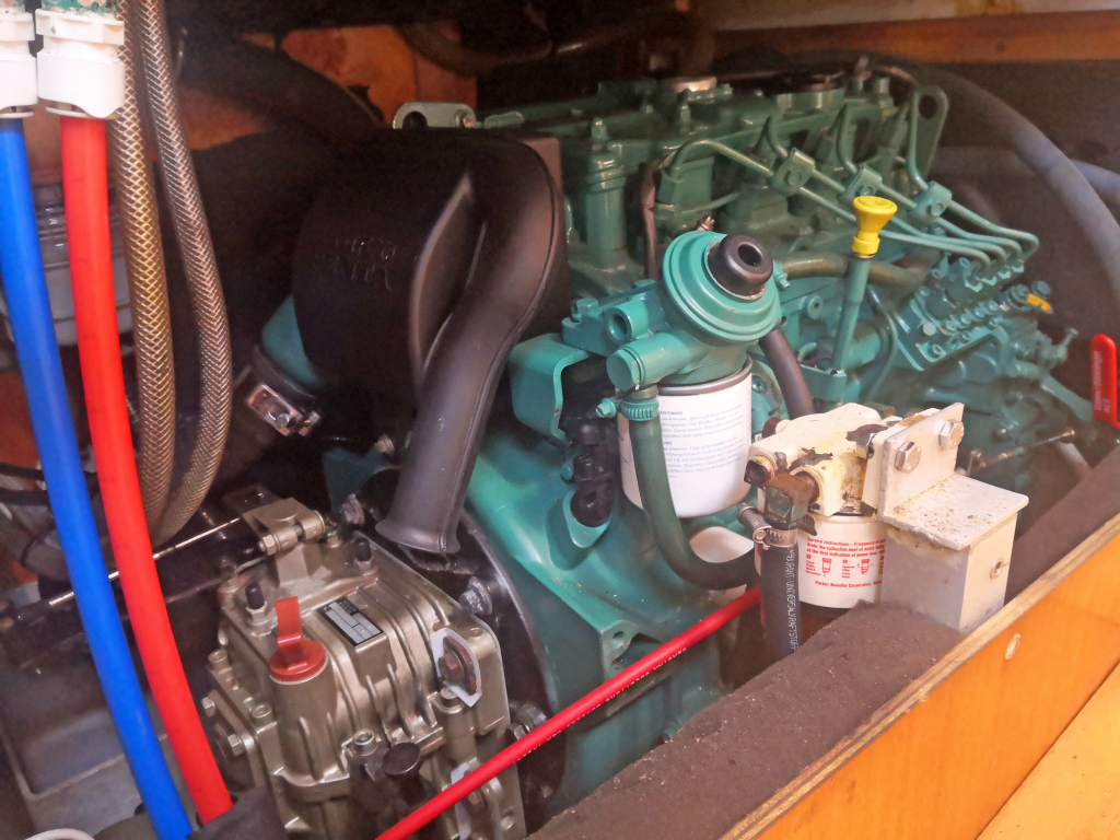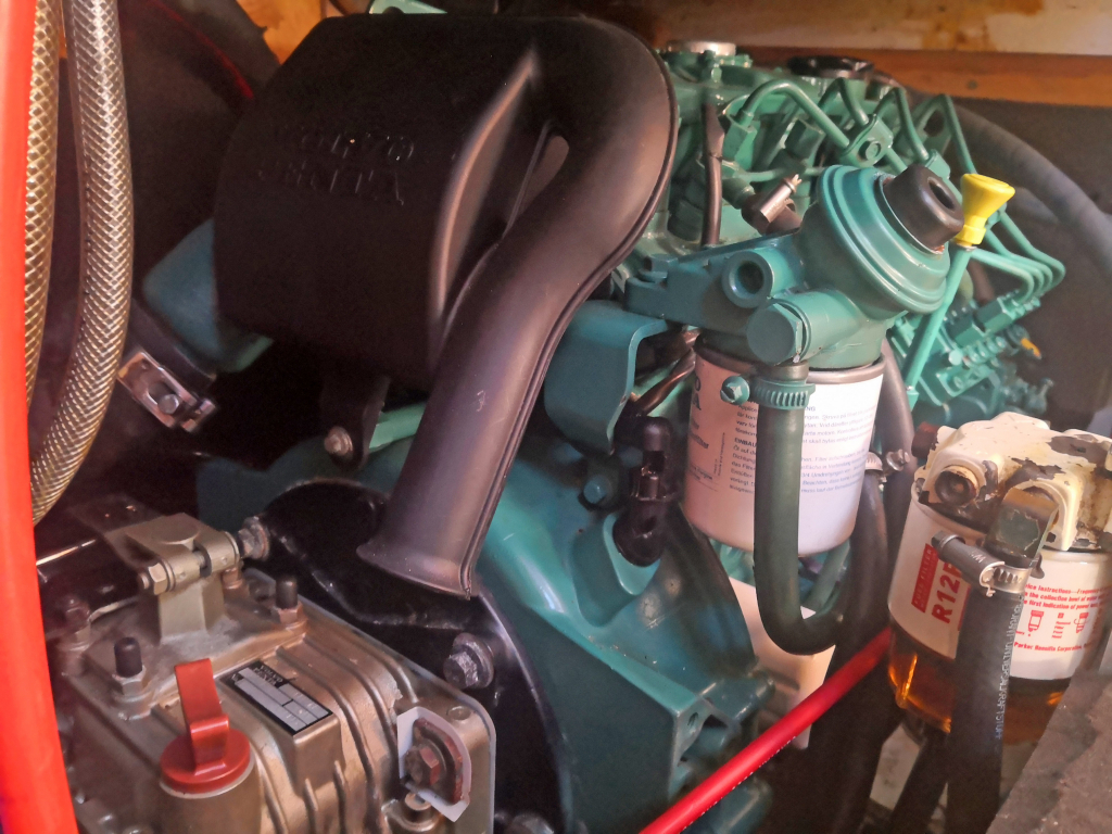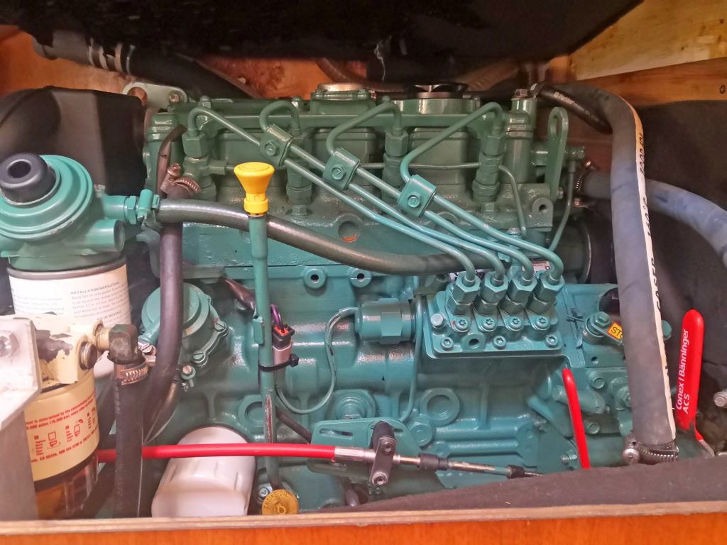 ENGINE: Volvo Penta S40508 Diesel 40Hp. 1.500 Engine hours registered January 2025. Saildrive with seal renewed 2023. Foldable Gori 3-blades prop with overdrive (7Kn at 2000 rpm on flat water, consumption 3L/H. Fuel diesel tanks 125L.
