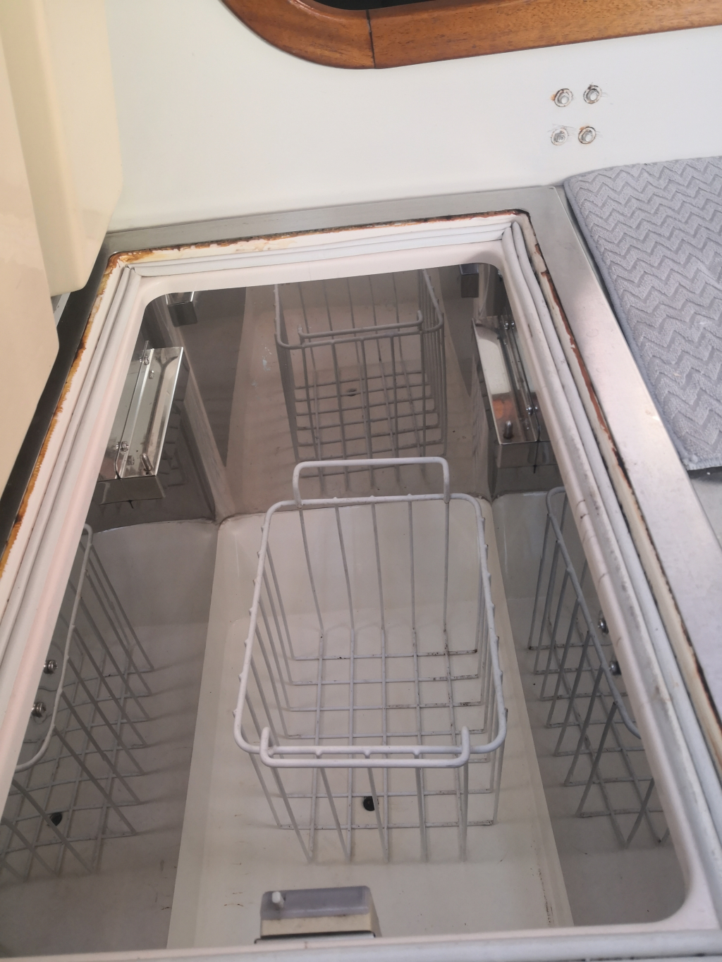 ELECTRICS: Batteries 4x Lithium 100Ah (total 400 Ah), bought new 2022, engine battery 80Ah, bought 2017, Battery charger/inverter Mastervolt 12/220V 1.500W. Shore power 220V including galvanic protection. Removable anodes and electrolisys protection for aluminium hull. 2 Solar panels and wind turbine for power generation.
