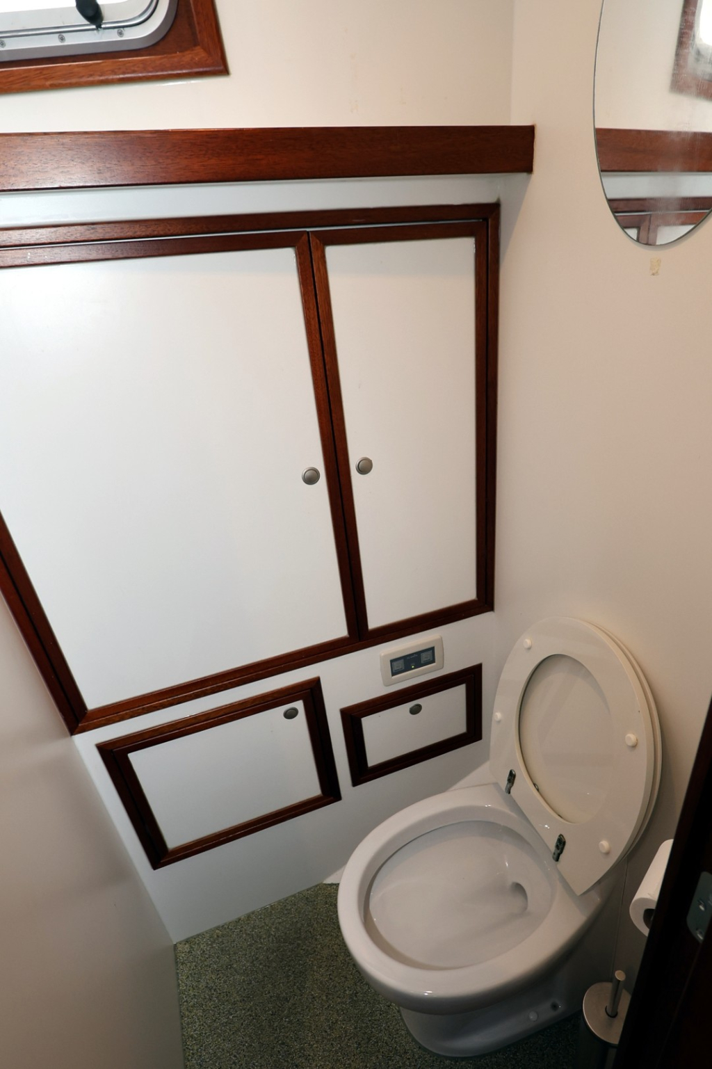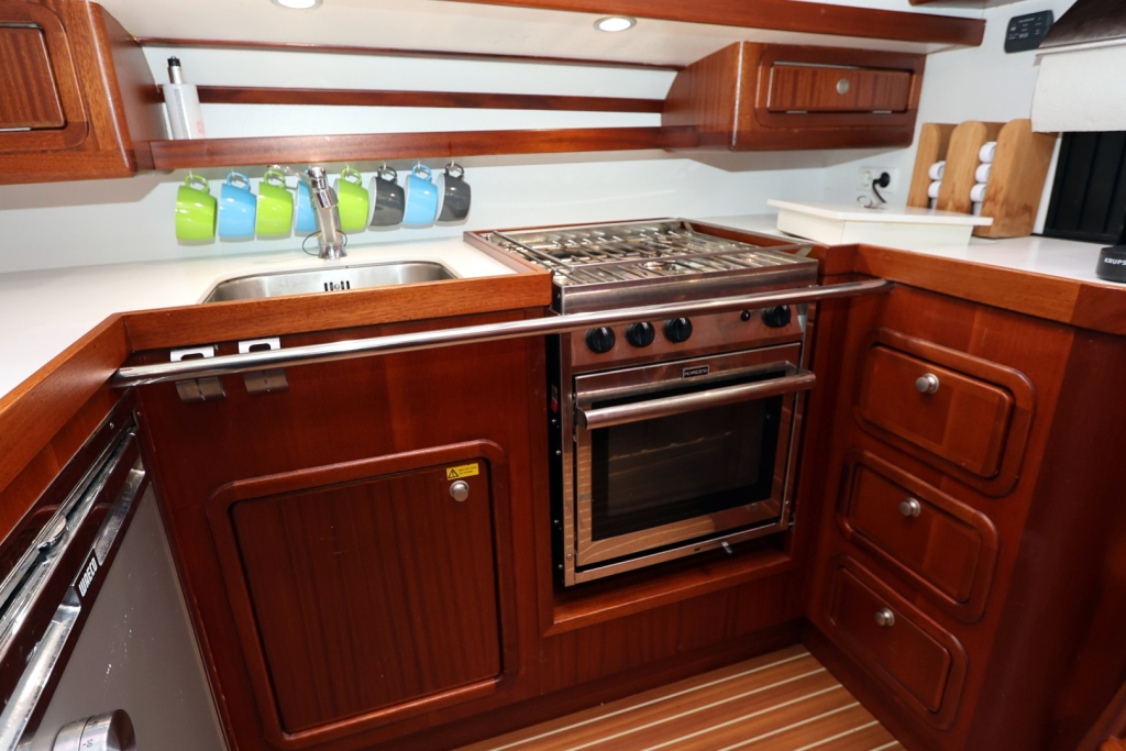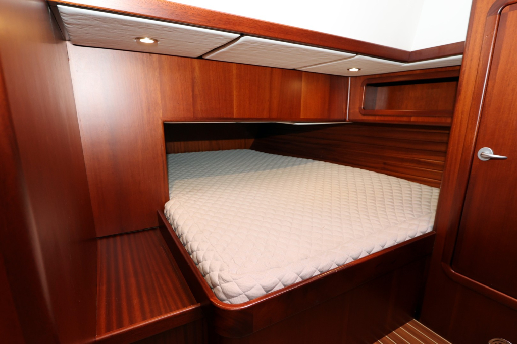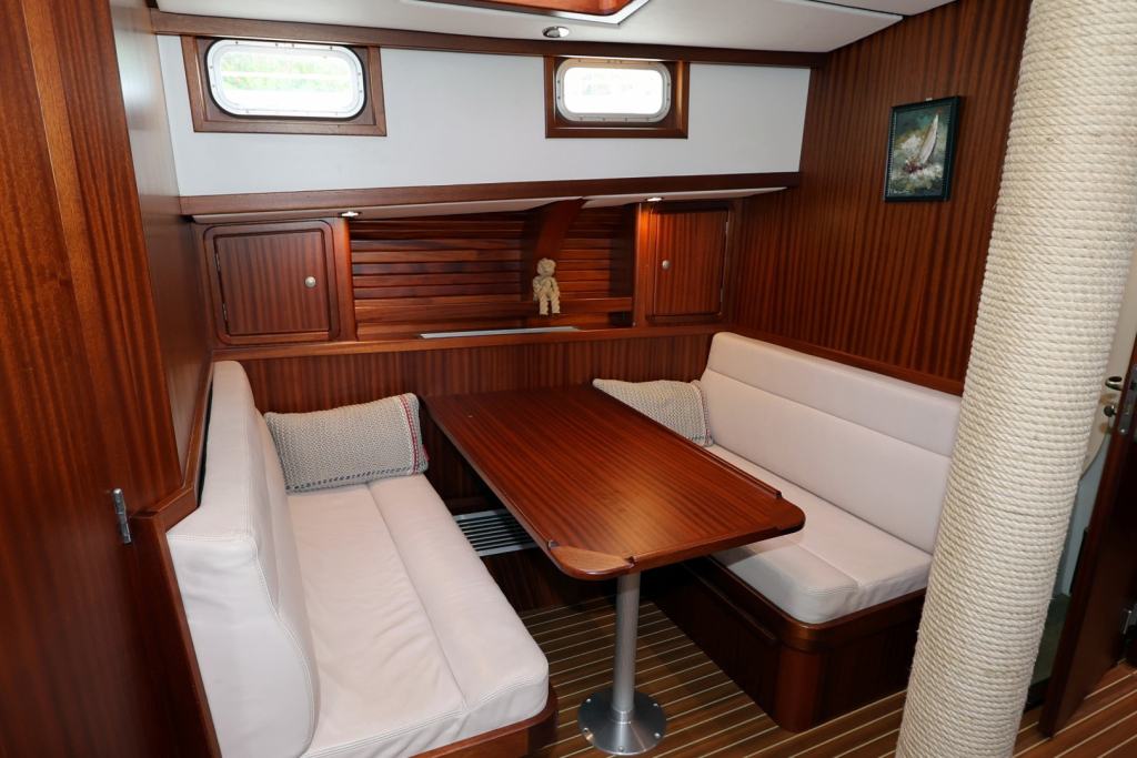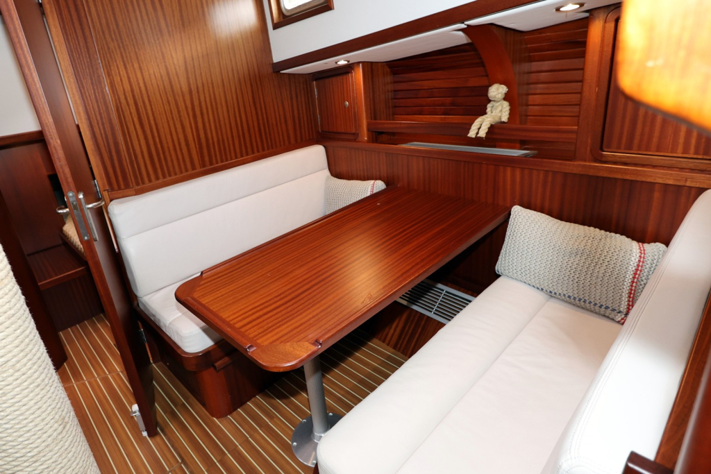 Het ruime stuurhuis is een kenmerkend element; met 360° zicht en voldoende zitruimte is het comfortabel varen in alle weersomstandigheden. Binnen biedt het jacht een warm houten interieur, een volledig uitgeruste kombuis, een ruime eigenaars hut met natte cel, en een gastenhut. De stahoogte bedraagt circa 1,95 meter. Dankzij de goede isolatie en verwarming is dit schip geschikt voor zowel poolgebieden als tropische bestemmingen.