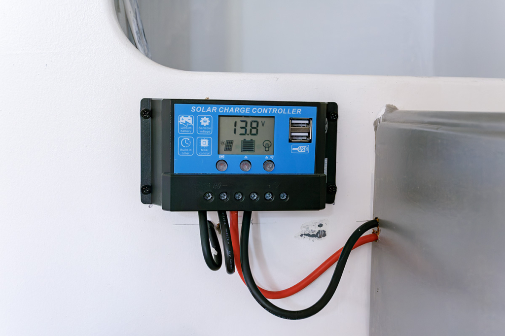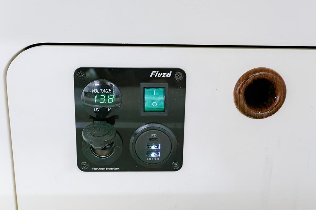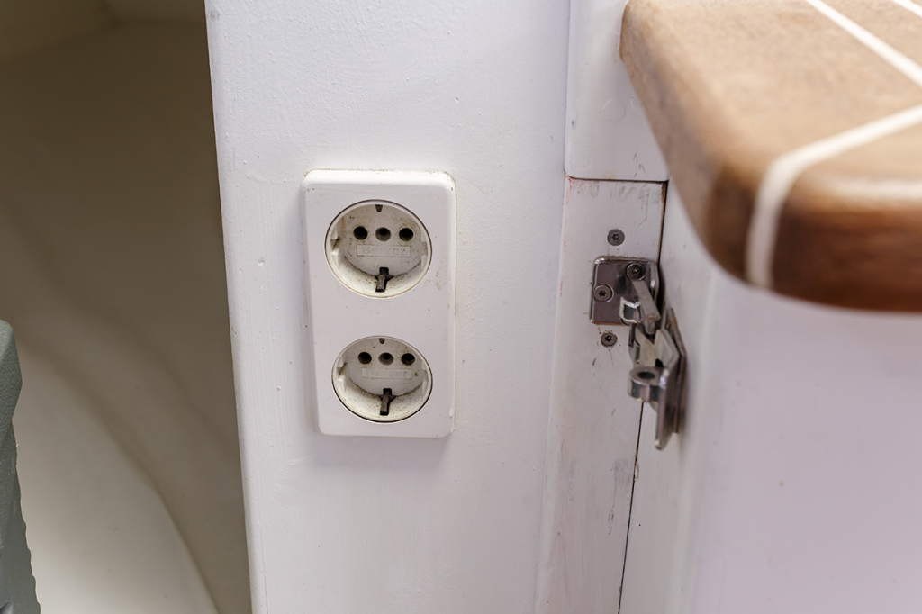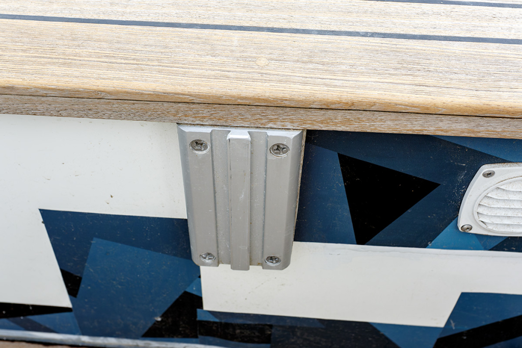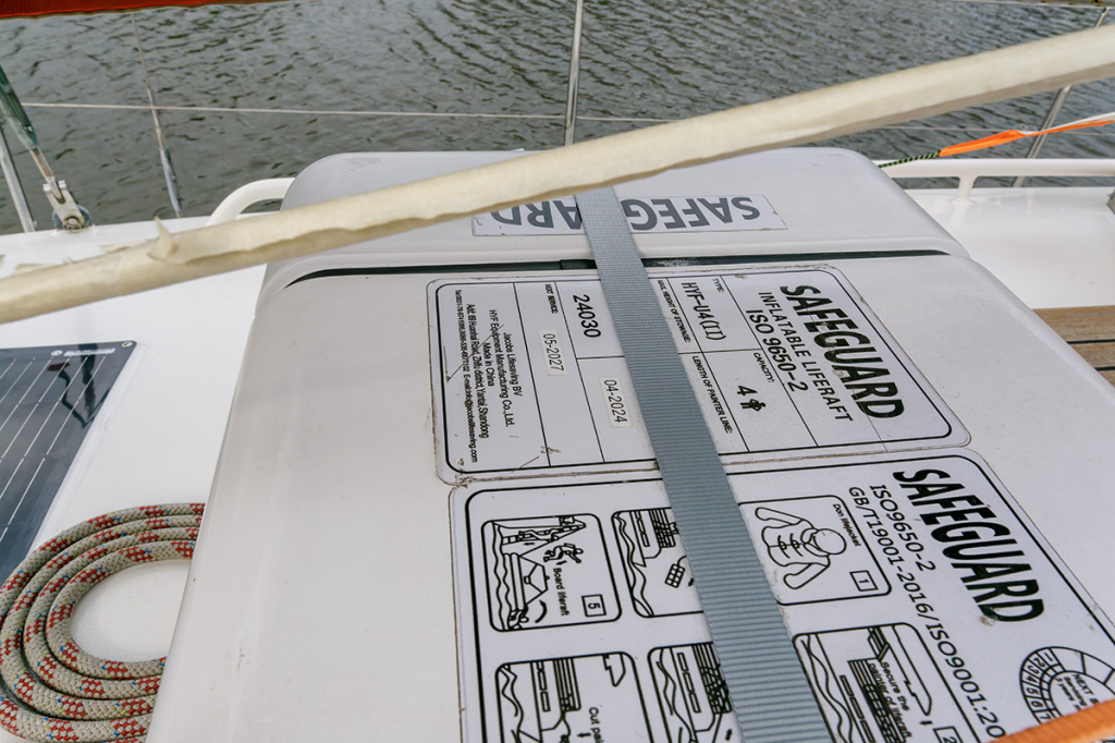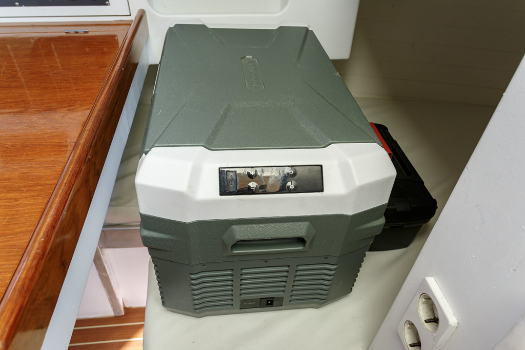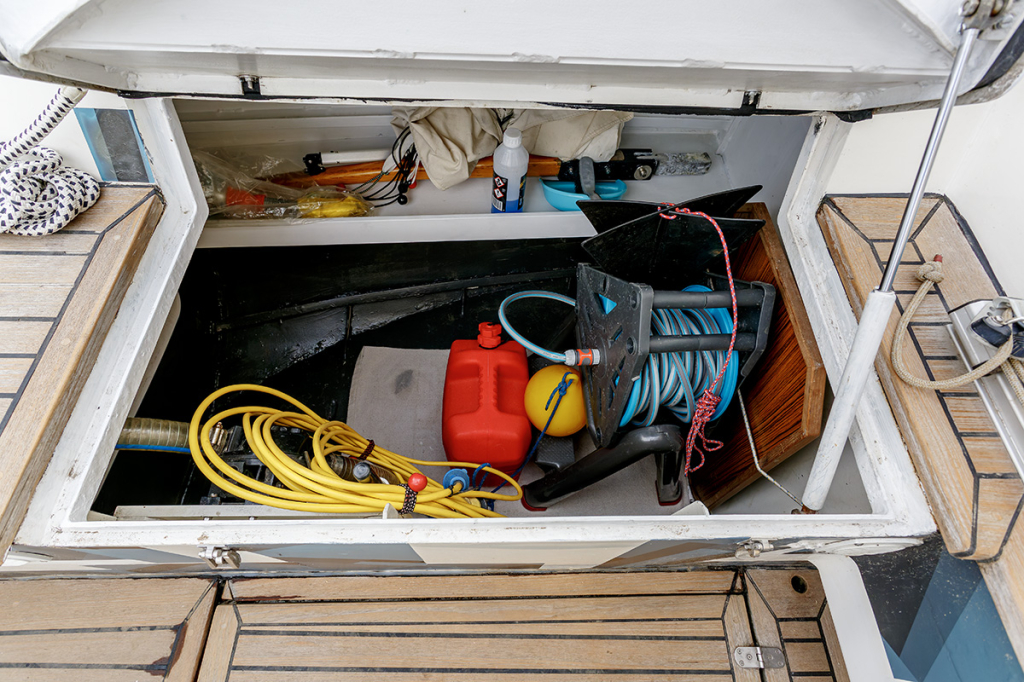 Het interieur is no-nonsense solide timmerwerk en goede stoffering. De lichte kleurstelling werkt mee aan de ruimtelijke beleving en heerst er een gezellige nautische sfeer in de salon. Bij binnenkomst is direct aan bakboord de kombuis met 2-pits kookstel en spoelbak. Aan stuurboord is de navigatiehoek. In de punt is een hut met een dubbel bed en de benodigde opbergruimte. Er is bakboord een toiletruimte met onderwater toilet met vuilwatertank.