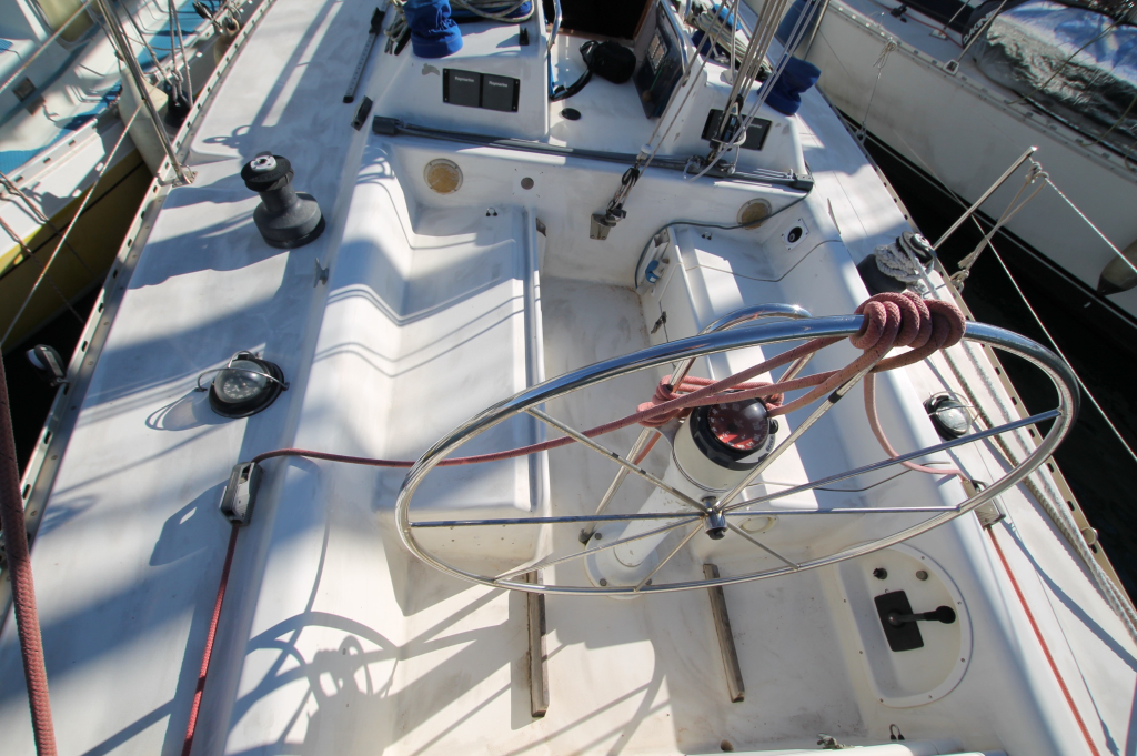 This Oyster Lightwave 395 “Zebedee” is in acceptable condition but in need of general refurbishment and maintainance. Hull made of GRP with 3/4” balsa core. “Zebedee” sailed in 2001-2002 from UK to New Zealand. Complete navigation equipment Raymarine updated 2018. Pending refit jobs: Yanmar engine in need of complete service. Mast hole on deck to be revised (some water coming in). Batteries, fridge, boiler and some sails probably to be renewed. Minor restauration jobs out- and inside regarding woodwork and GRP deck and hull. Oyster Marine is a prestigious british yacht builder, producing high quality yachts since over 50 years. Now specialized in luxury superyachts, this Oyster Lightwave 395 was produced between 1988 and 1990 and 33 examples were sold and most of them are still sailing. Designed by Carl Schumacher here we have a typical cruiser/racer concept of the late eighties with excellent sailing performance and lots of comfort inside. Zebedee is now waiting for a new technically skilled owner, prepared to undertake a serious refit and face restauration costs. Only for sale “AS IS”, this means that a survey is only possible inside mooring. No possibility for engine starting (batteries has to be renewed) lift-out or sea-trial.