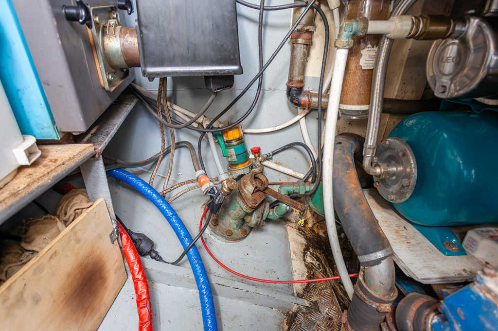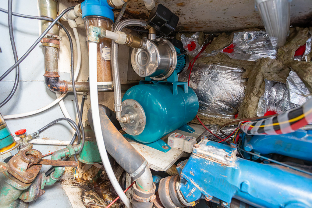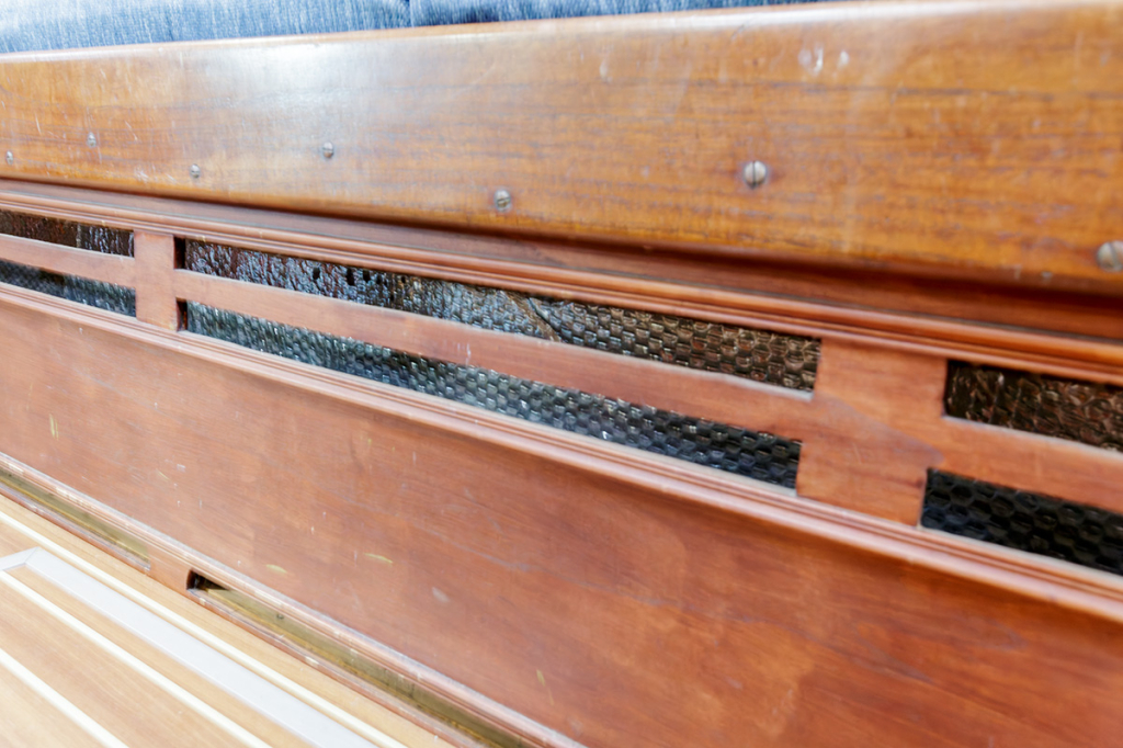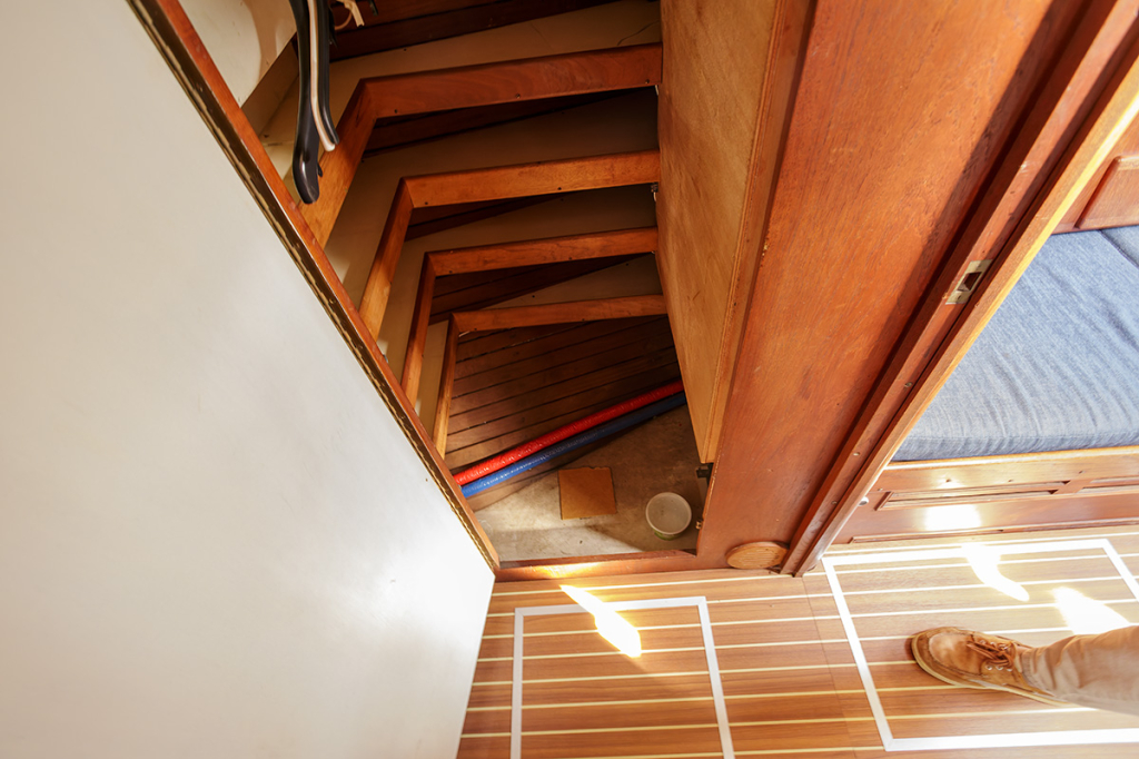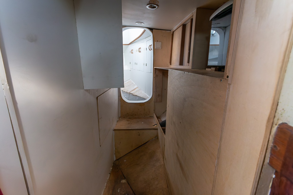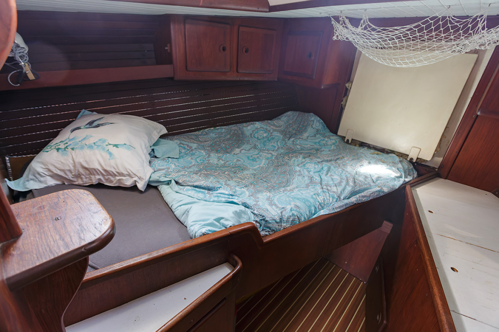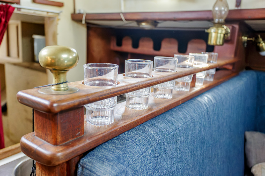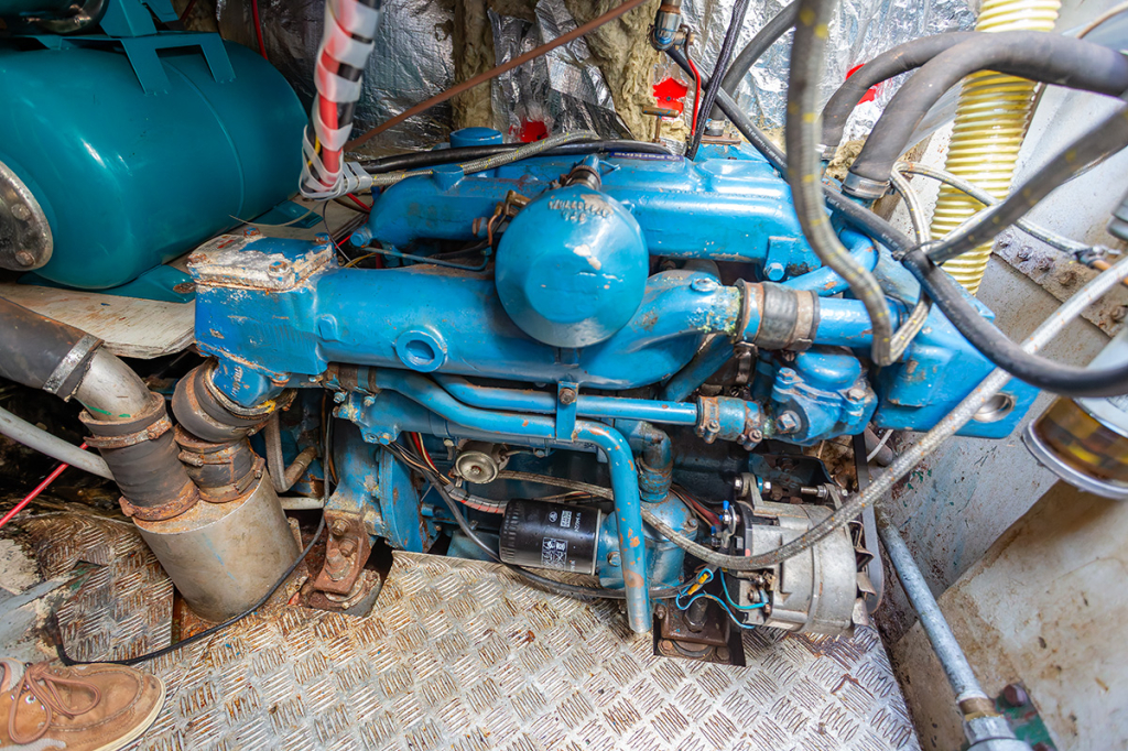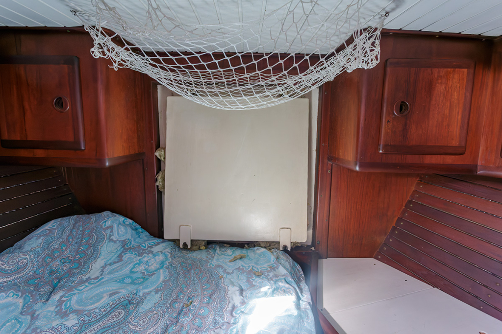 Het intérieur is in tweeën opgedeeld en is door de huidige eigenaar aangepast. De salon heeft een echte scheepse atmosfeer door het gebruik van donker teak en de vernieuwde vloer. Bij binnenkomst is links de L-vormige keuken, en rechts de navigatie hoek. Midscheeps is een ruime zithoek met banken rondom. Er is een diesel kachel met convectoren, zwaar genoeg om de hele boot te verwarmen. De voorhut met dubbel bed biedt plaats aan 2 personen. Bakboord voor is de badkamer met wastafel en elektrisch toilet op 12V. De achterhut, bereikbaar via een nieuw door de huidige eigenaar gemaakte doorgang is geschikt voor gasten/kinderen die daar een goede privé plek hebben.