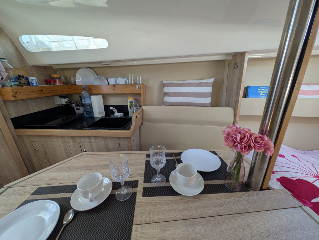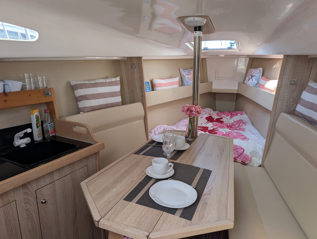 Currently located in ACI Marina Cres, Croatia, with a berth available for takeover until May 2026, this yacht is perfectly suited for relaxed coastal cruising or longer trips of up to several weeks. Her smart interior layout includes a bright saloon, practical galley, two comfortable cabins, and a marine toilet — offering impressive comfort for a boat of this size.
