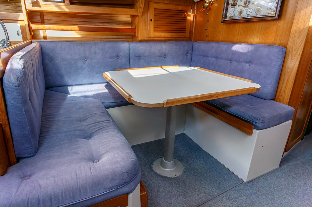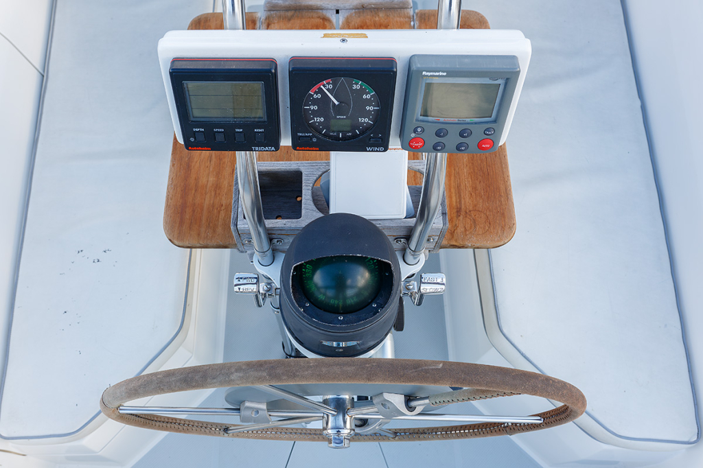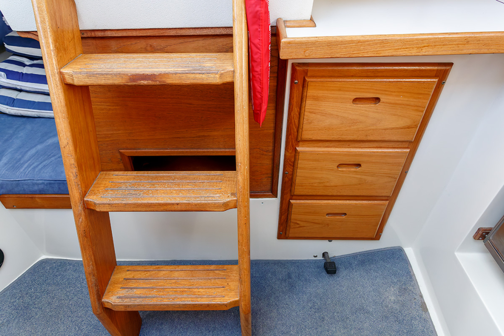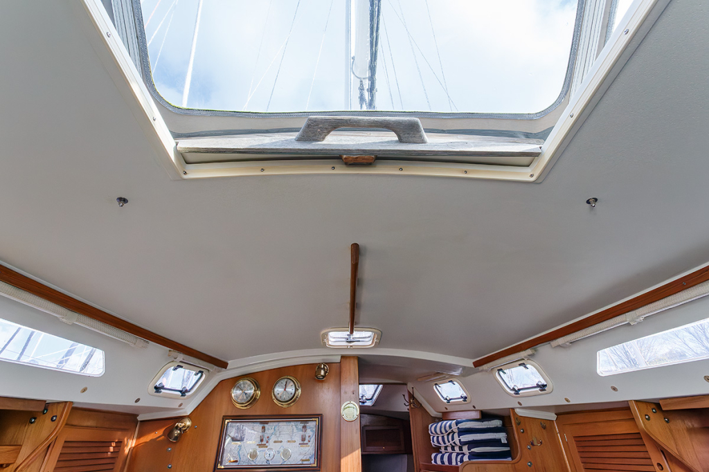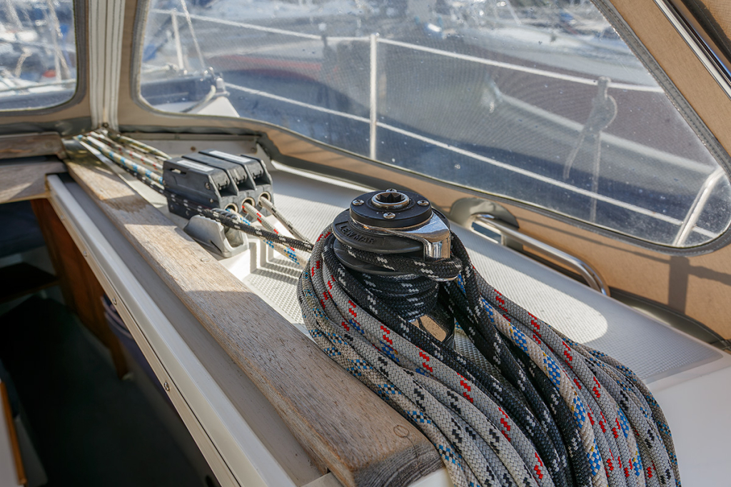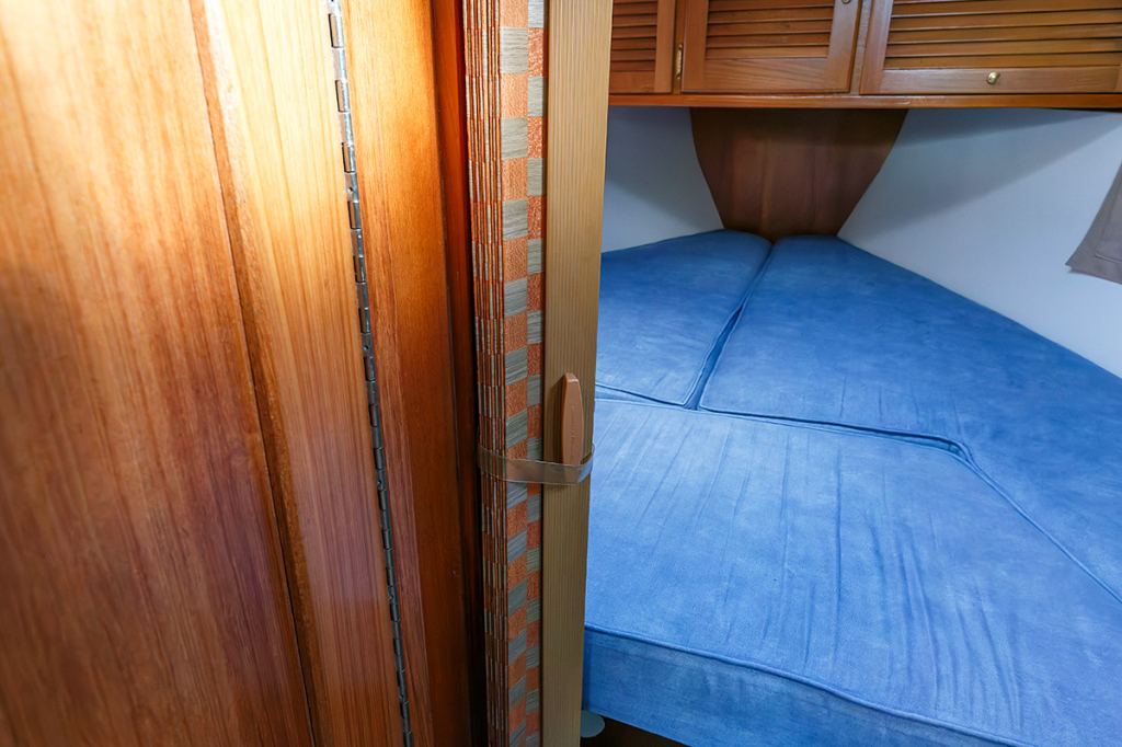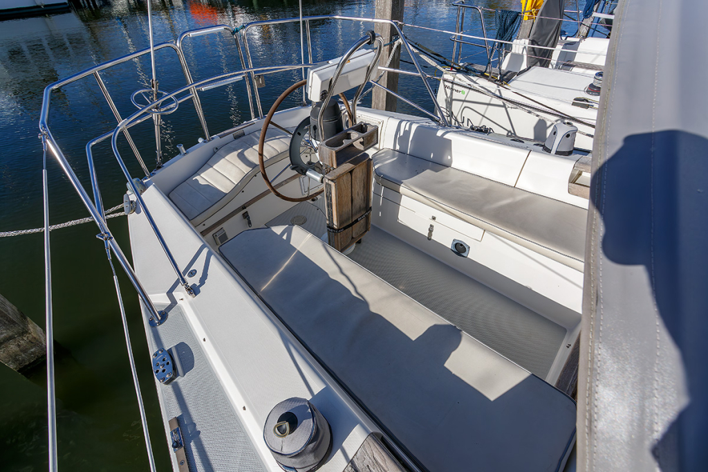 In het interieur valt meteen de praktische indeling en nautisch sfeer op met fraai teak houten aftimmering. De salon heeft een U-zit aan bakboord, een langsbank aan stuurboord met tafel midscheeps. De tafel is overigens te verlagen om zo een extra bed te creëren. Aan bakboord is een ruime kombuis, voorzien van rvs 2 pits kooktoestel met oven, koelkast, warm en koud water en de nodige opbergruimte. Aan stuurboord vind u de kaartentafel met het schakelpaneel voor de elektrische systemen. Bij de kaartentafel is ook de de toegang tot de kooi in het achterschip. Midscheeps aan bakboord is de natte cel met toilet en douche. In de voorpiek is een tweepersoons hut. Bekijk de volledige advertentie voor uitgebreide informatie.