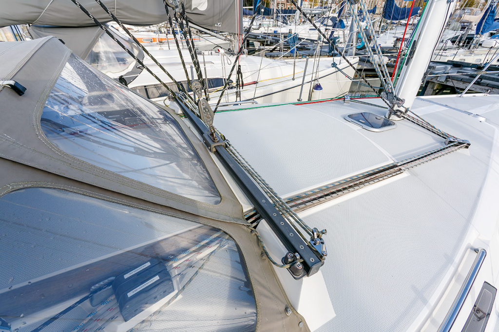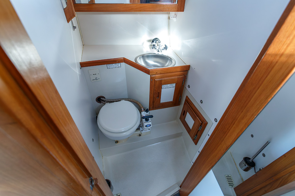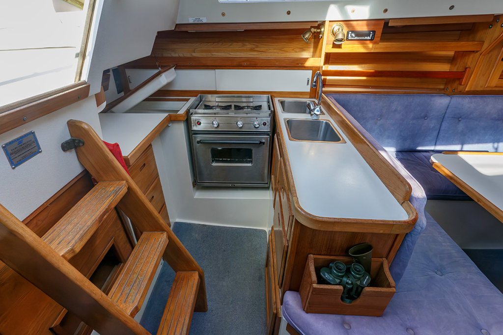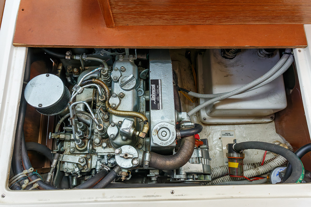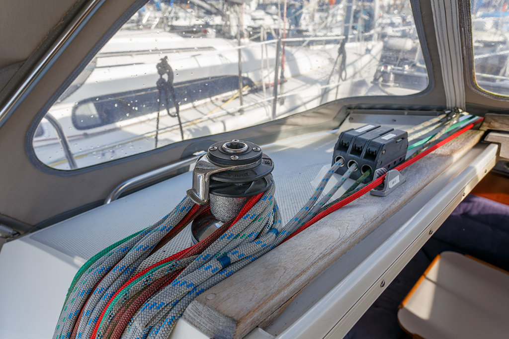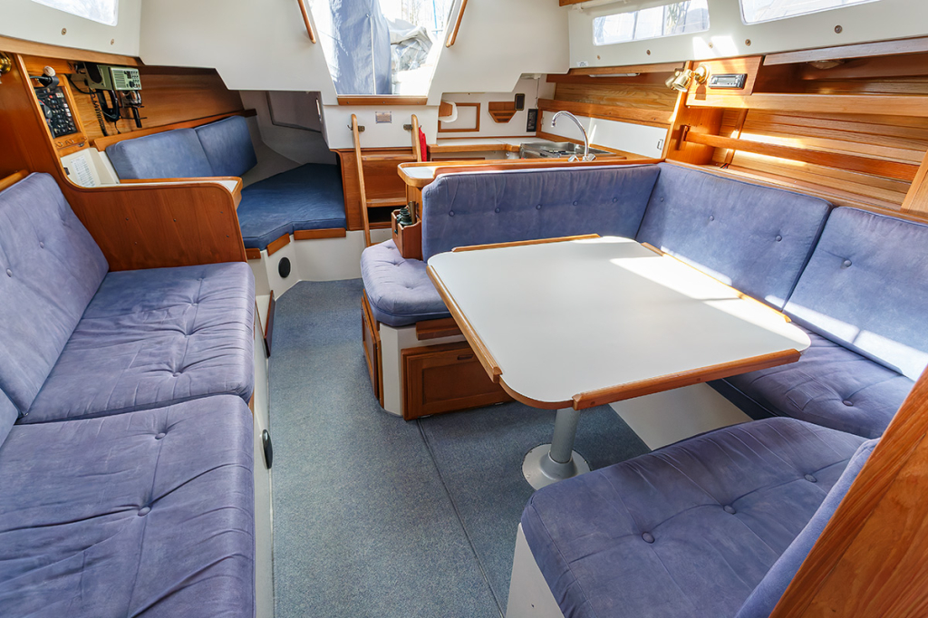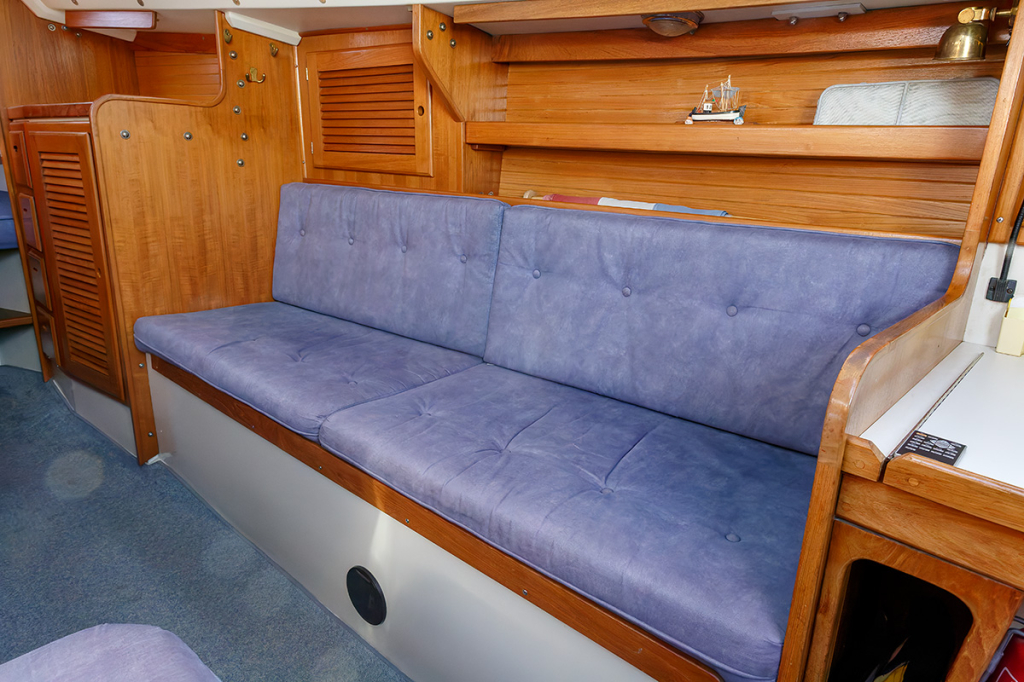 In het interieur valt meteen de praktische indeling en nautisch sfeer op met fraai teak houten aftimmering. De salon heeft een U-zit aan bakboord, een langsbank aan stuurboord met tafel midscheeps. De tafel is overigens te verlagen om zo een extra bed te creëren. Aan bakboord is een ruime kombuis, voorzien van rvs 2 pits kooktoestel met oven, koelkast, warm en koud water en de nodige opbergruimte. Aan stuurboord vind u de kaartentafel met het schakelpaneel voor de elektrische systemen. Bij de kaartentafel is ook de de toegang tot de kooi in het achterschip. Midscheeps aan bakboord is de natte cel met toilet en douche. In de voorpiek is een tweepersoons hut. Bekijk de volledige advertentie voor uitgebreide informatie.