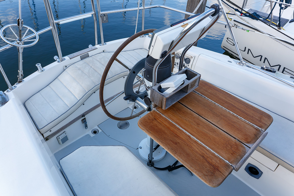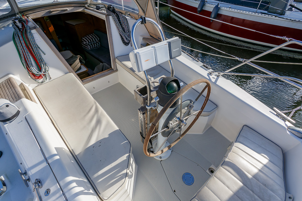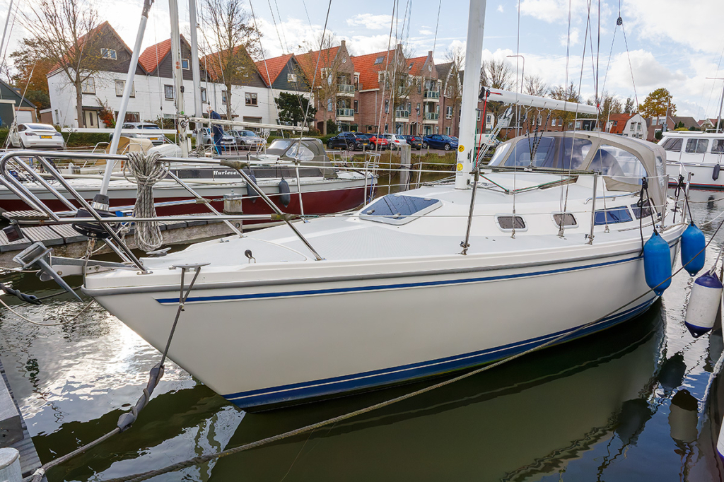 Wij bieden u deze goed onderhouden Catalina 30 MKII in de twee hutten uitvoering aan namens de derde privé eigenaar. Het ontwerp was zeer succesvol en is in een lange periode gebouwd, in totaal ruim 6500 exemplaren. Ze is ongelofelijk ruim voor een 30 voets jacht, en heeft een zeer geringe diepgang van slechts 1,17 meter. De boot heeft opvallend weinig motoruren, slechts ca 1.600. Vanaf de stuurstand heeft u goed overzicht over de boot, de omgeving en de navigatie instrumenten.