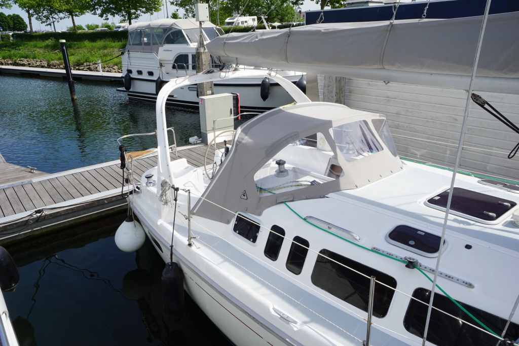 Leuke Hunter 340 aangeboden, een compleet comfortabel en zeer ruim schip. Deze Hunter is o.a. voorzien van een stuurautomaat, boiler, verwarming, vernieuwde set zeilen, zeilhoes, sprayhood en volledig kuiptent.