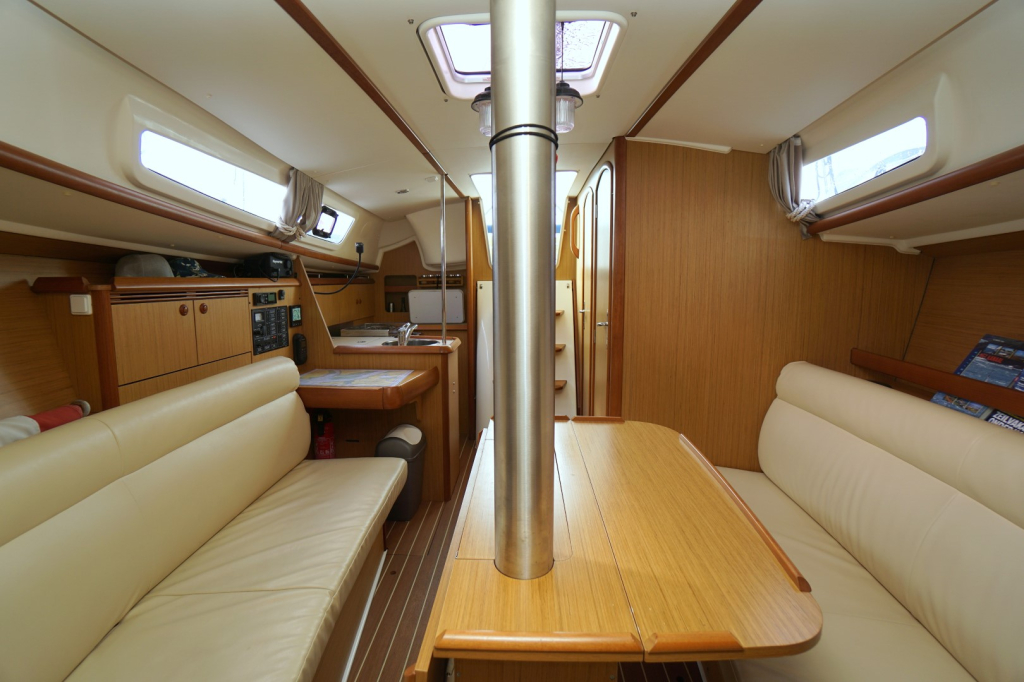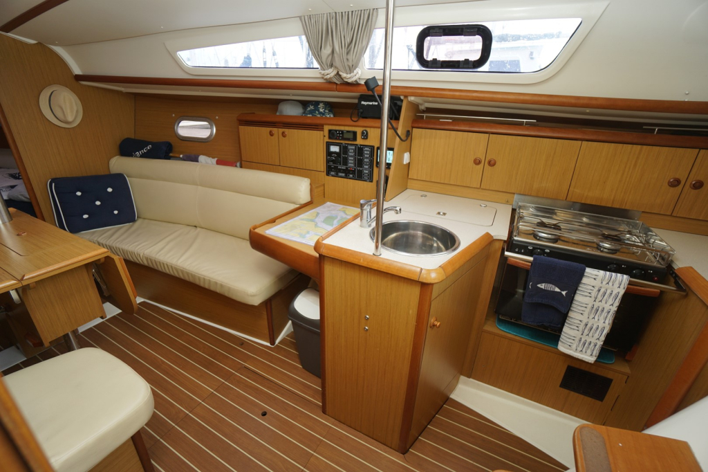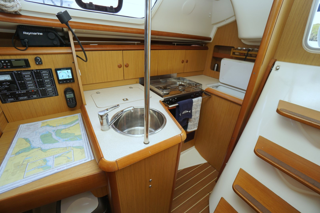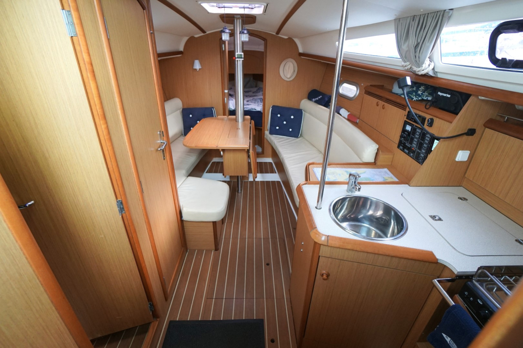 Met haar strakke lijnen, ruime kuip en lichte, uitnodigende interieur is deze 32-voeter perfect voor lange tochten of ontspannen weekenden op het water. Binnenin biedt het schip een warme en sfeervolle leefruimte met twee afgesloten hutten, een gezellige salon, natte cel en een goed uitgerust kombuis. De ruime stahoogte van 1.85 m en het slimme gebruik van ruimte zorgen voor een ruimtelijk gevoel. Dankzij de vele vensters en ventilatiemogelijkheden is het altijd aangenaam aan boord, of u nu in de haven ligt of voor anker.