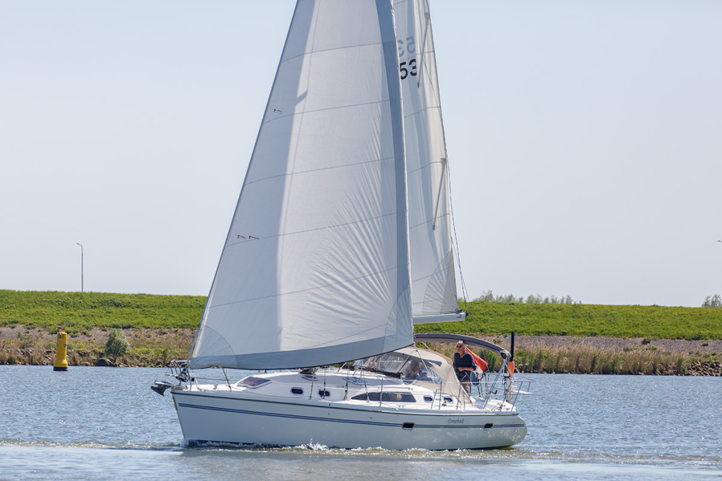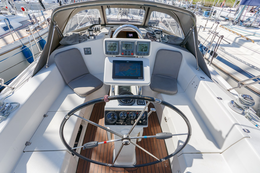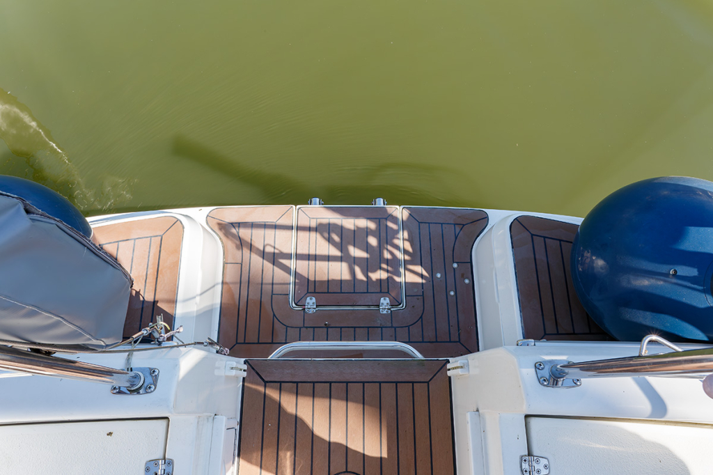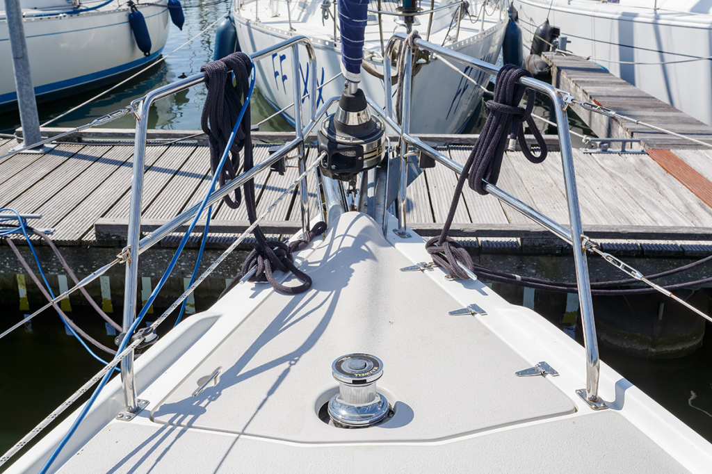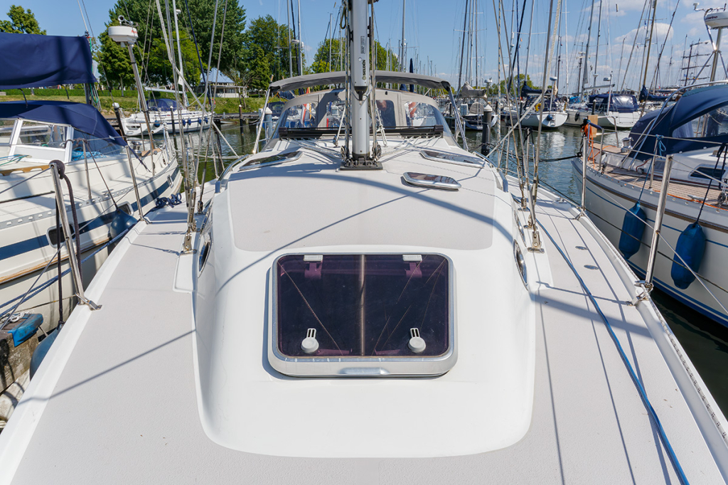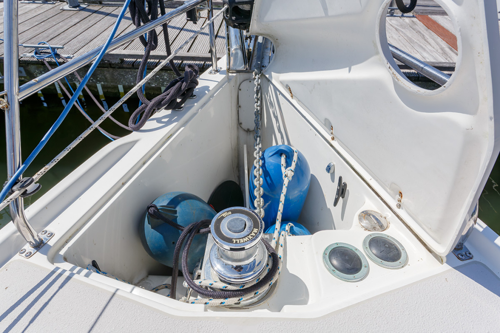 Door gebruik van gelakt teak in combinatie met roomwitte, leatherlook bekleding heeft het interieur een ruime en luxueuze uitstraling. Bij binnenkomst is aan bakboord de navigatiehoek met benodigde apparatuur en rechts de compleet uitgeruste L-vormige kombuis met dubbele spoelbak, koelkast, kooktoestel, oven en magnetron. De L-vormige bank aan bakboord en de 2 ruime stoelen aan stuurboord bieden voldoende ruimte voor de hele bemanning. In de salon zijn extra slaapplaatsen te maken door slimme vulstukken tussen de stoelen en de tafel te verlagen. De hutten zijn voorzien van goede matrassen, in de voorste hut ligt een Wellpure topdekmatras van 4,5 cm. De natte cel is voorzien van een electrisch toilet en douche. Deze boot wordt bemiddeld via kantoor White Whale Yachtbrokers Enkhuizen. Heeft u belangstelling neem dan contact op via enkhuizen@wwy.nl of +31(0)228 855 380 voor meer informatie of het maken van een afspraak voor bezichtiging aan boord. Bezichtigingen zijn mogelijk van maandag t/m zaterdag 09.00 - 17.00.