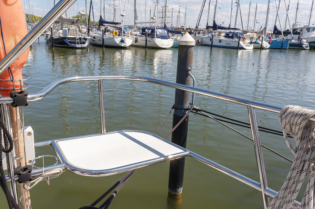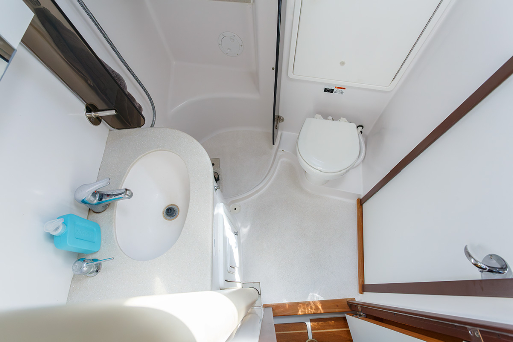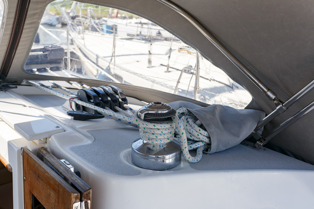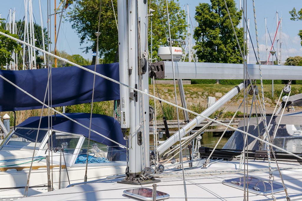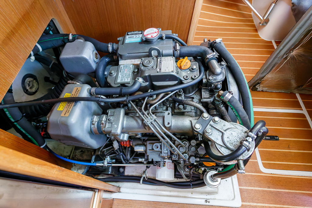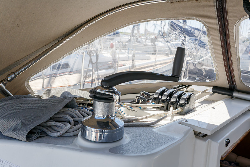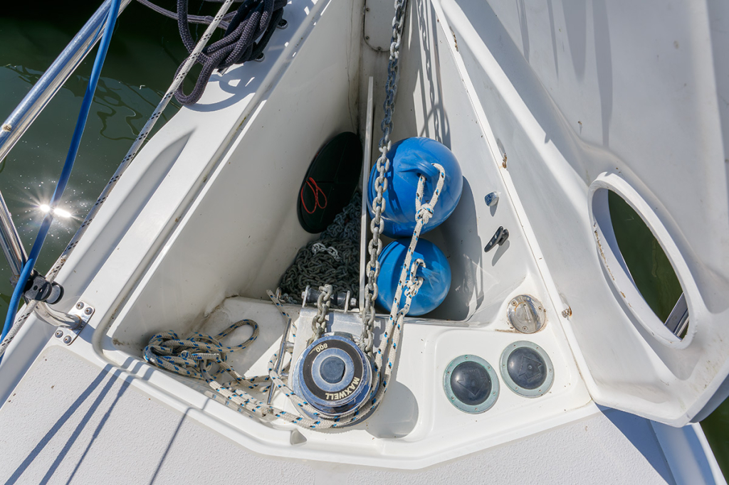 Door gebruik van gelakt teak in combinatie met roomwitte, leatherlook bekleding heeft het interieur een ruime en luxueuze uitstraling. Bij binnenkomst is aan bakboord de navigatiehoek met benodigde apparatuur en rechts de compleet uitgeruste L-vormige kombuis met dubbele spoelbak, koelkast, kooktoestel, oven en magnetron. De L-vormige bank aan bakboord en de 2 ruime stoelen aan stuurboord bieden voldoende ruimte voor de hele bemanning. In de salon zijn extra slaapplaatsen te maken door slimme vulstukken tussen de stoelen en de tafel te verlagen. De hutten zijn voorzien van goede matrassen, in de voorste hut ligt een Wellpure topdekmatras van 4,5 cm. De natte cel is voorzien van een electrisch toilet en douche. Deze boot wordt bemiddeld via kantoor White Whale Yachtbrokers Enkhuizen. Heeft u belangstelling neem dan contact op via enkhuizen@wwy.nl of +31(0)228 855 380 voor meer informatie of het maken van een afspraak voor bezichtiging aan boord. Bezichtigingen zijn mogelijk van maandag t/m zaterdag 09.00 - 17.00.