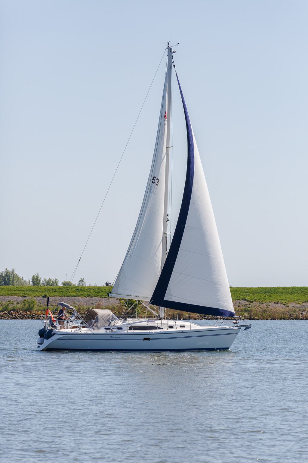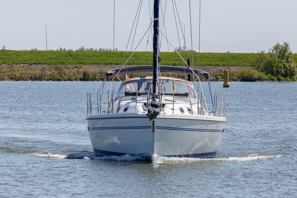 De Catalina 375 die wij u namens de tweede eigenaar aanbieden is een goed onderhouden solide gebouwd jacht. Met een diepgang van ca 1.42m is een groot vaargebied met ondieptes in Nederland, maar ook op de Duitse Wadden, de Deense kust goed te bevaren. De dek layout is overzichtelijk, de gangboorden zijn ruim en door gebruik van goede anti-slip, veilig te belopen. De afwerking is fraai en de gekozen materialen van degelijke kwaliteit. De indeling van de kuip en plaatsing van het beslag zijn goed gekozen en de boot laat zich eenvoudig bedienen. De kuip is ruim en en de kuipvloer, en kuiptafel zijn bekleed met kunst teak, het inklapbare stuurwiel zorgt voor meer bewegingsruimte wanneer men in de haven ligt.