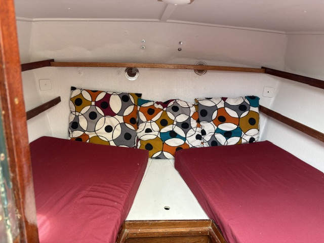 Slaapplaatsen: kajuit 2/3 slaapplaatsen 2.00 m lang, achterkajuit 2 slaapplaatsen, 2.20 m lang